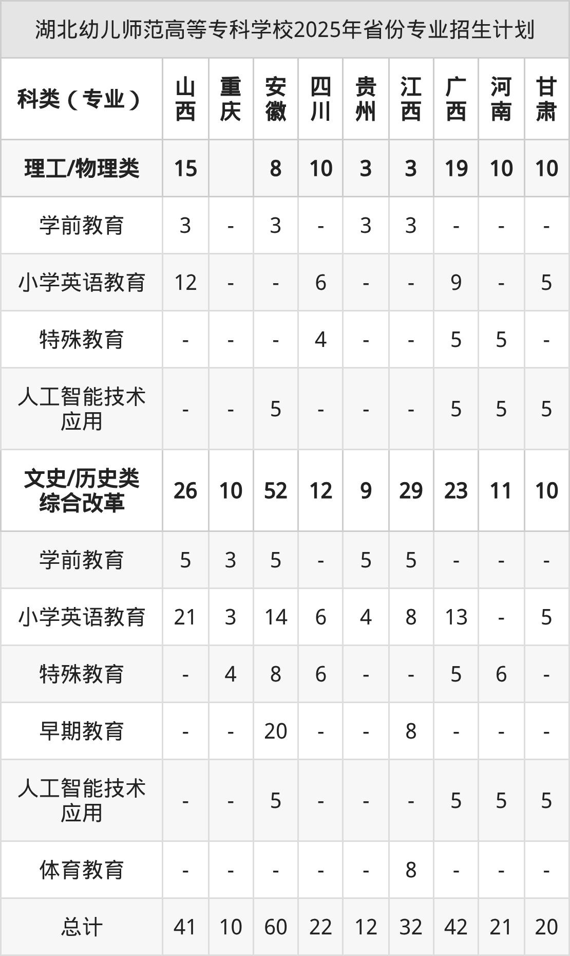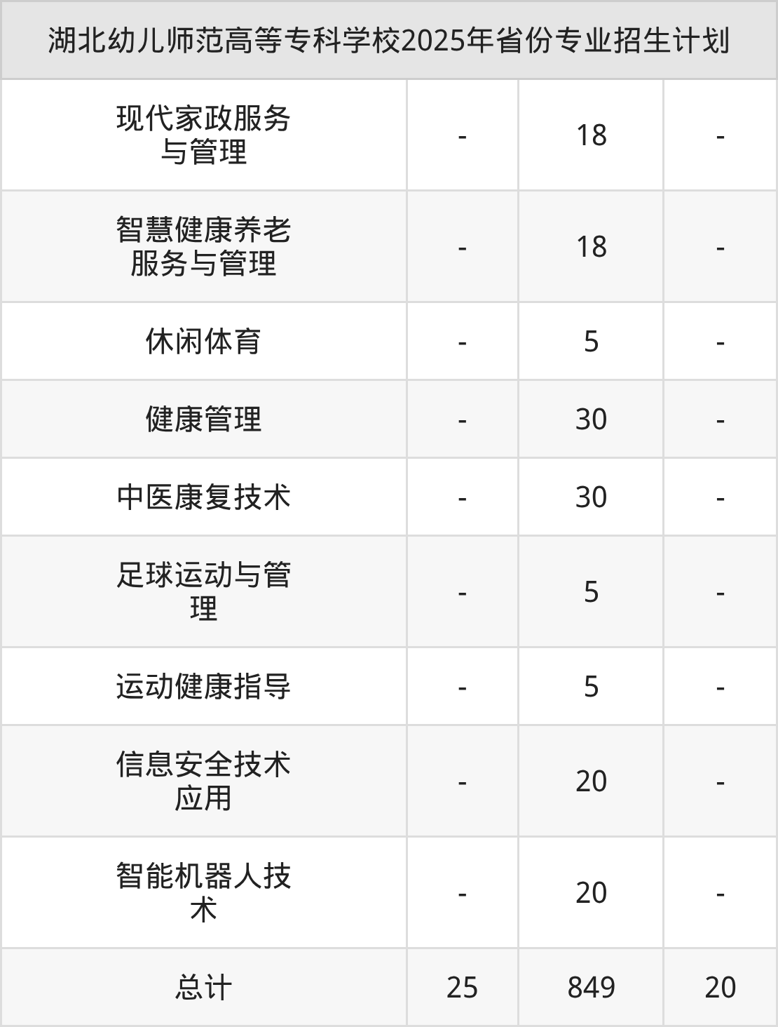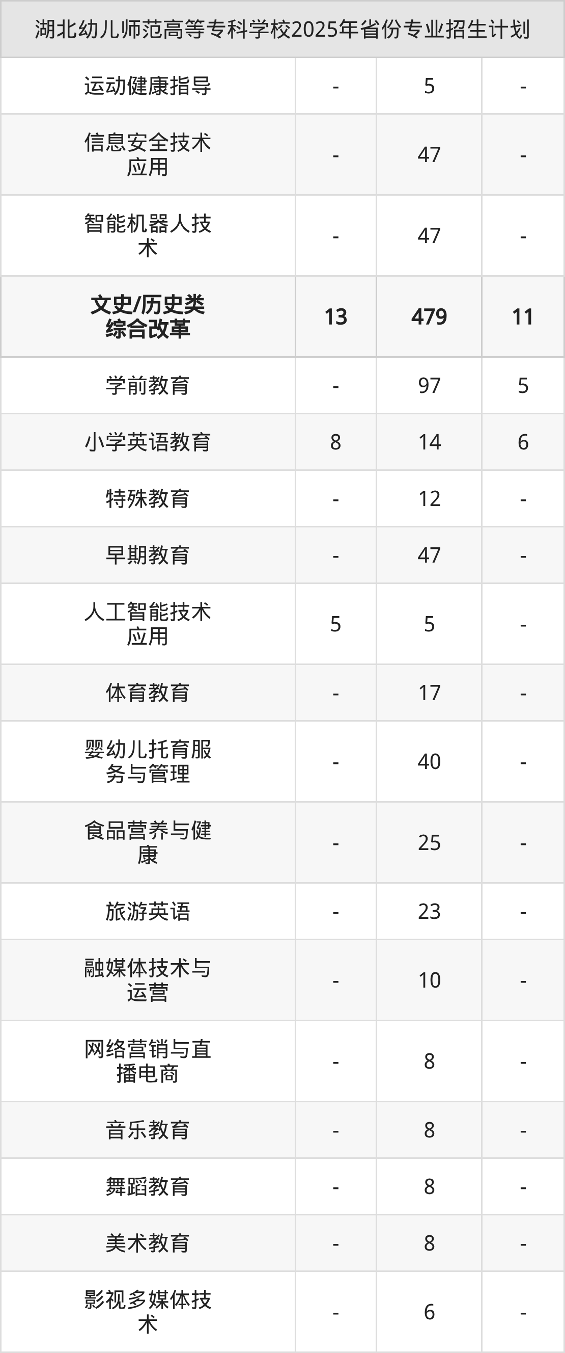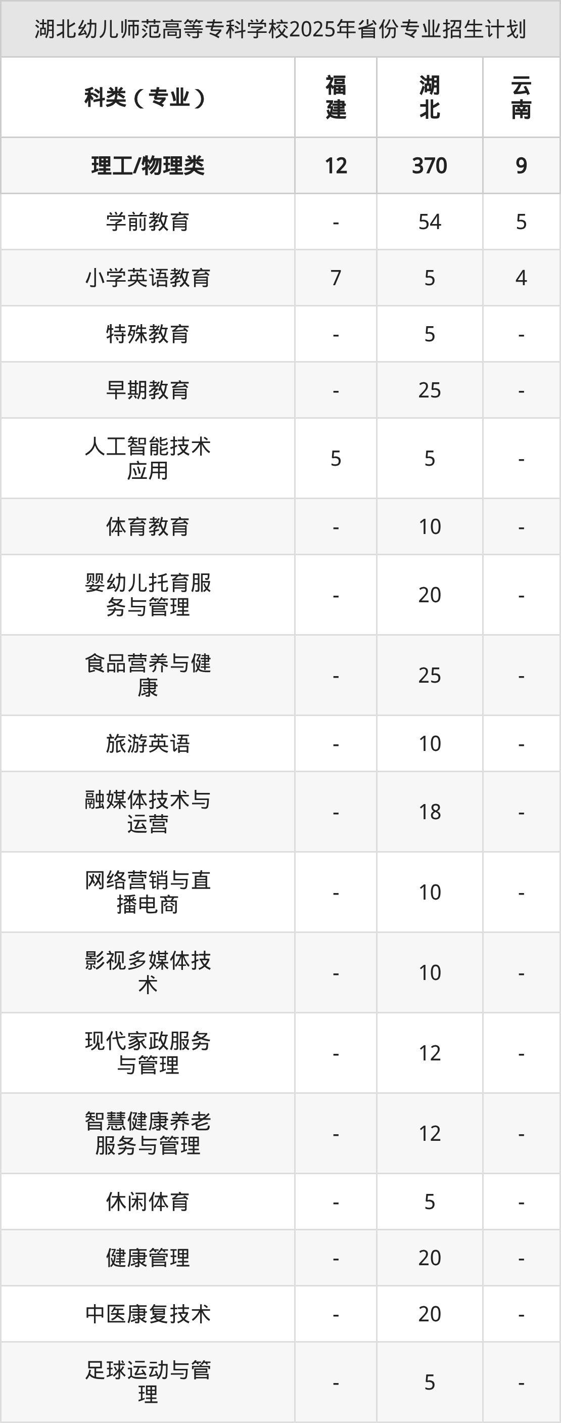 2026年湖北幼儿师范高等专科学校专科招生计划待公布,下面附上2025年数据,暂供参考: