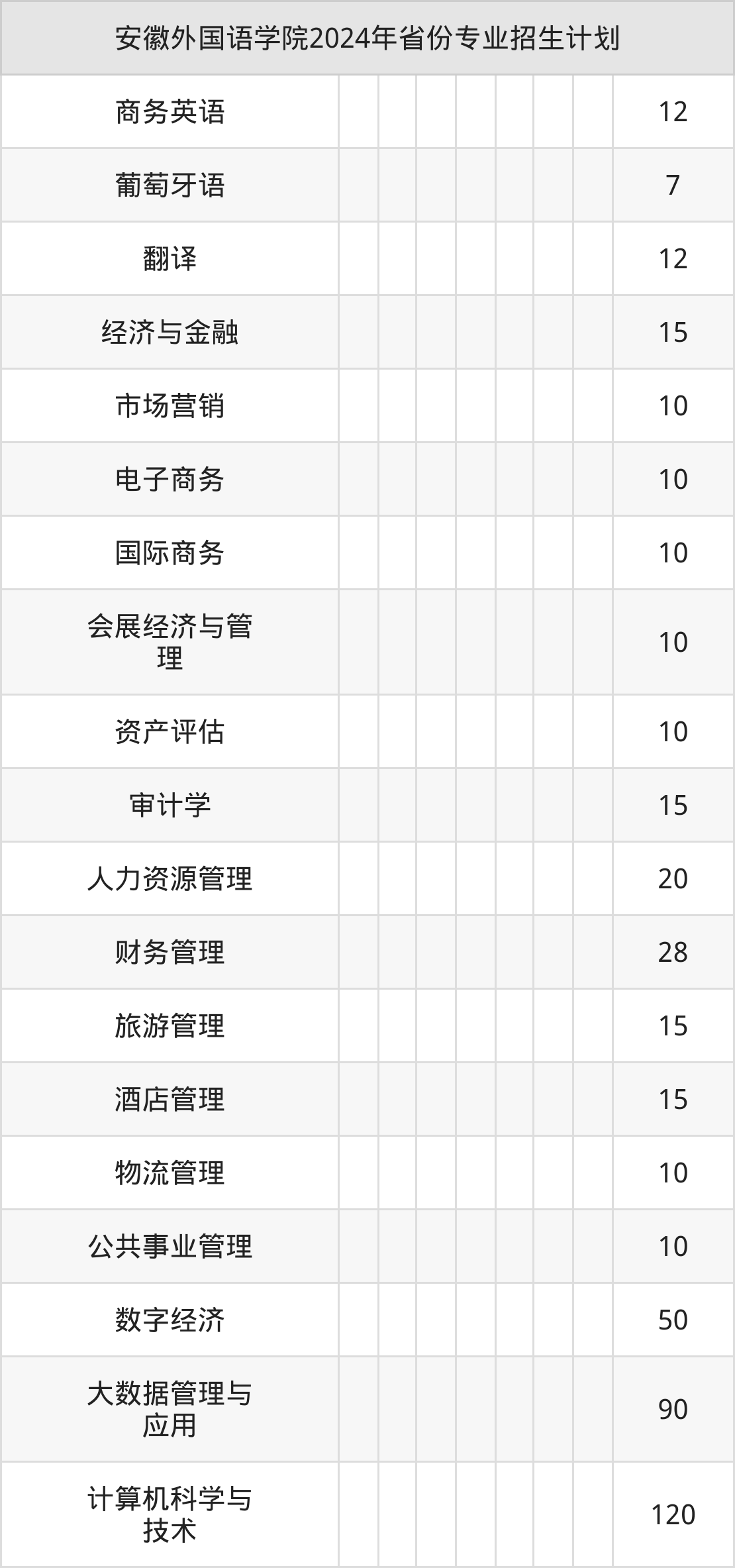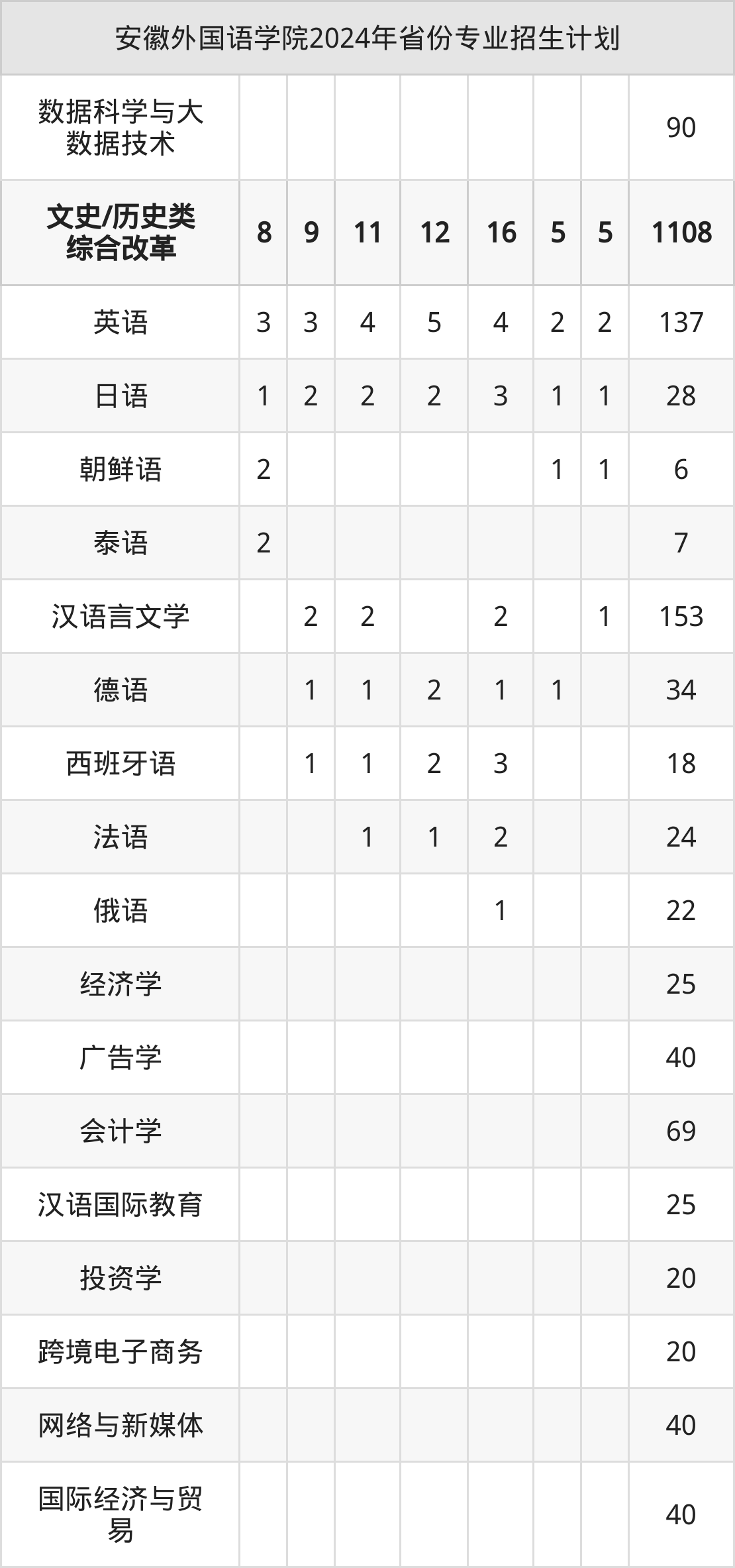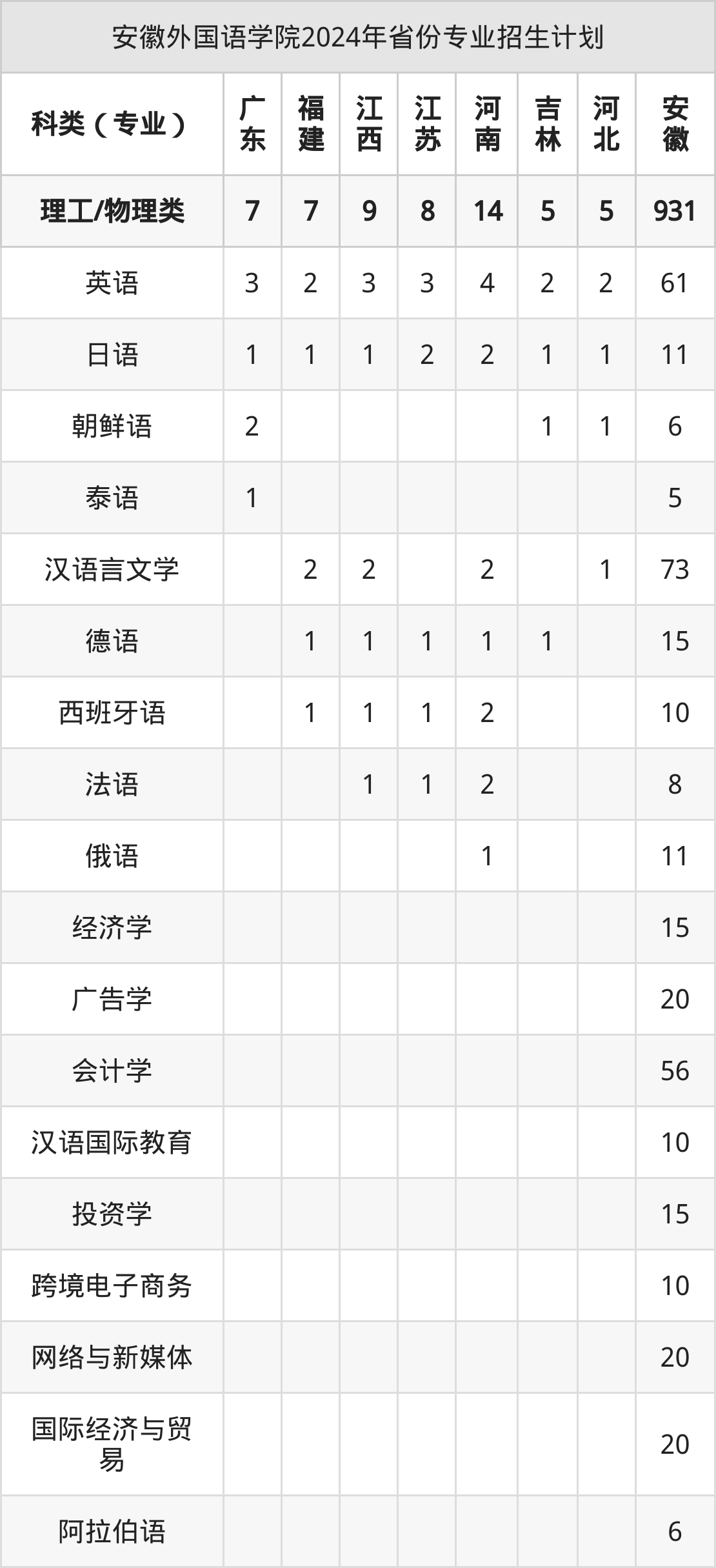 2025年安徽外国语学院本科招生计划待公布,下面附上2024年数据,暂供参考: