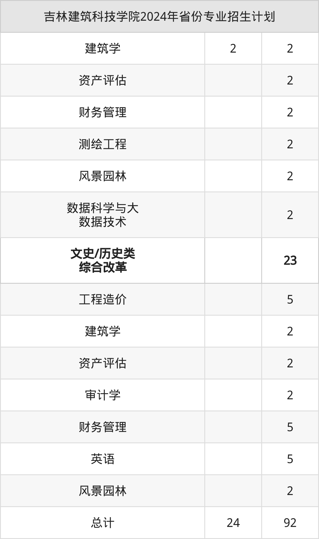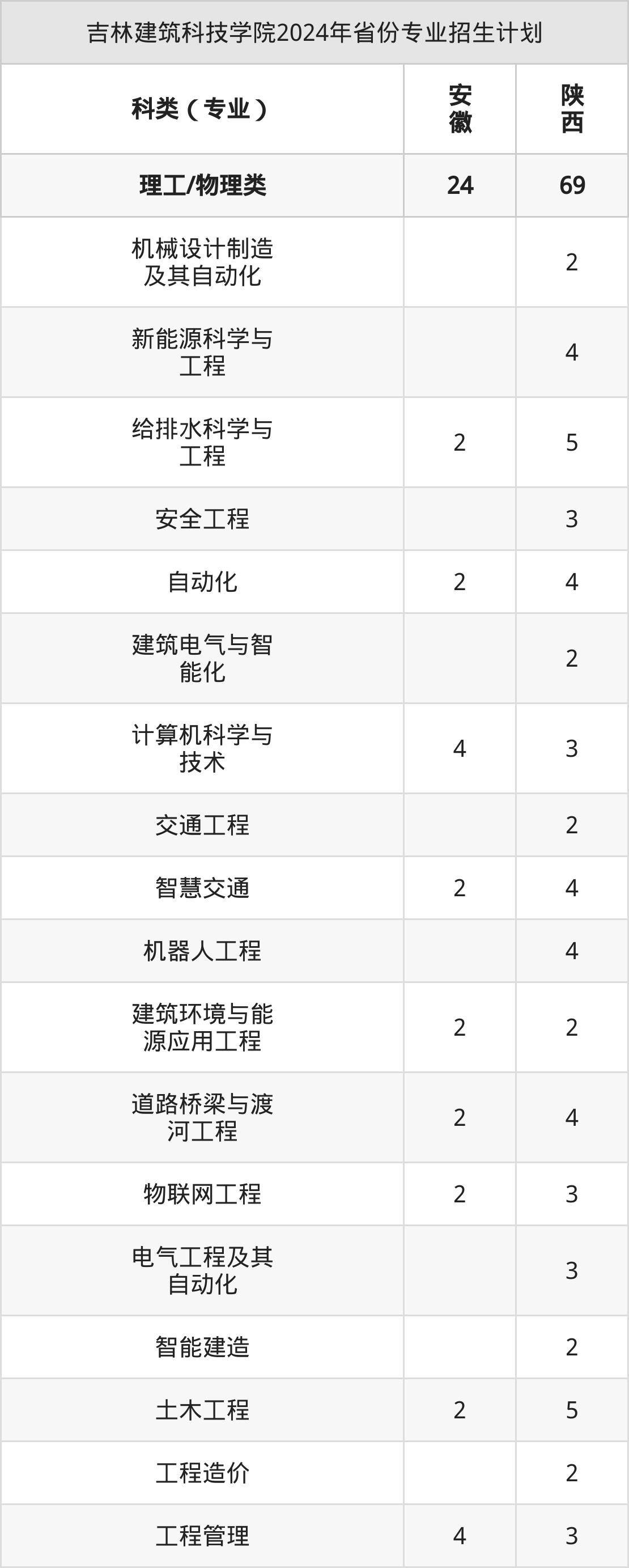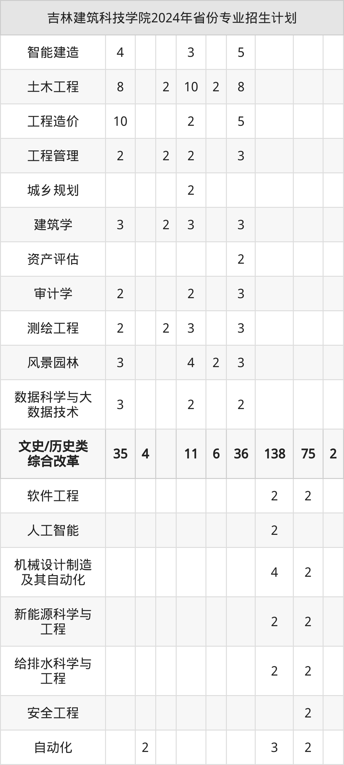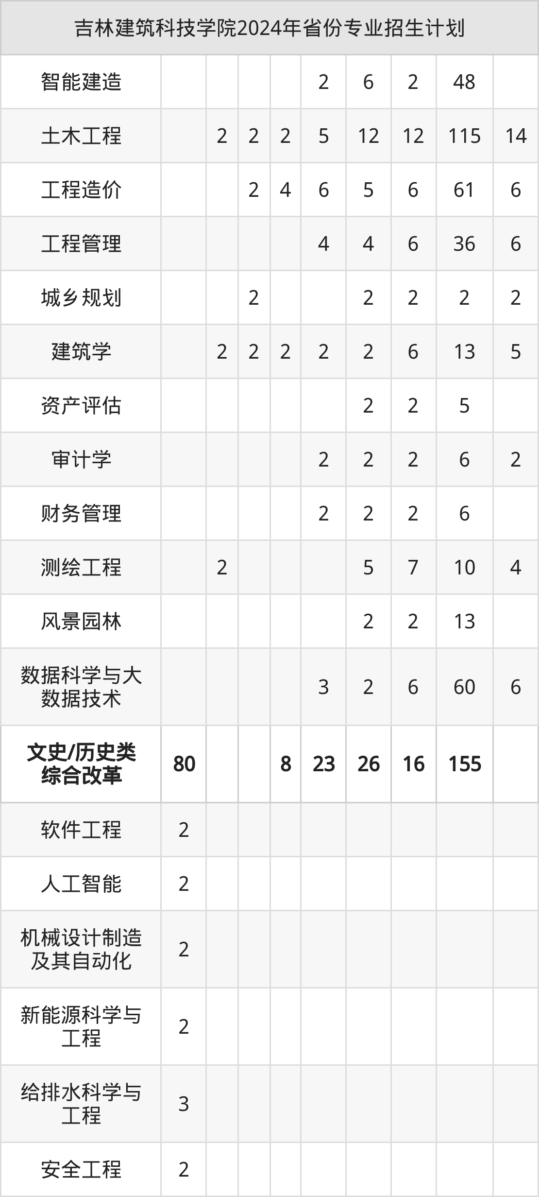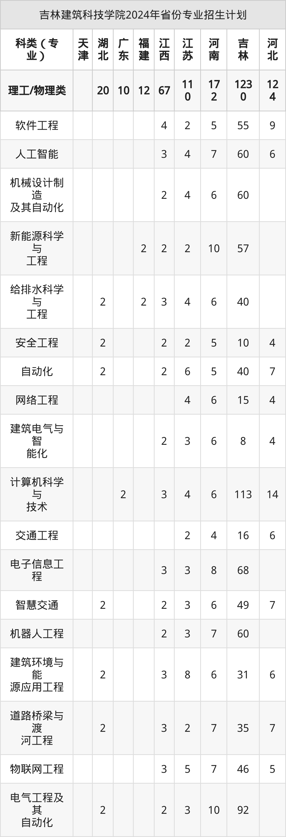2025年吉林建筑科技学院本科招生计划待公布,下面附上2024年数据,暂供参考: