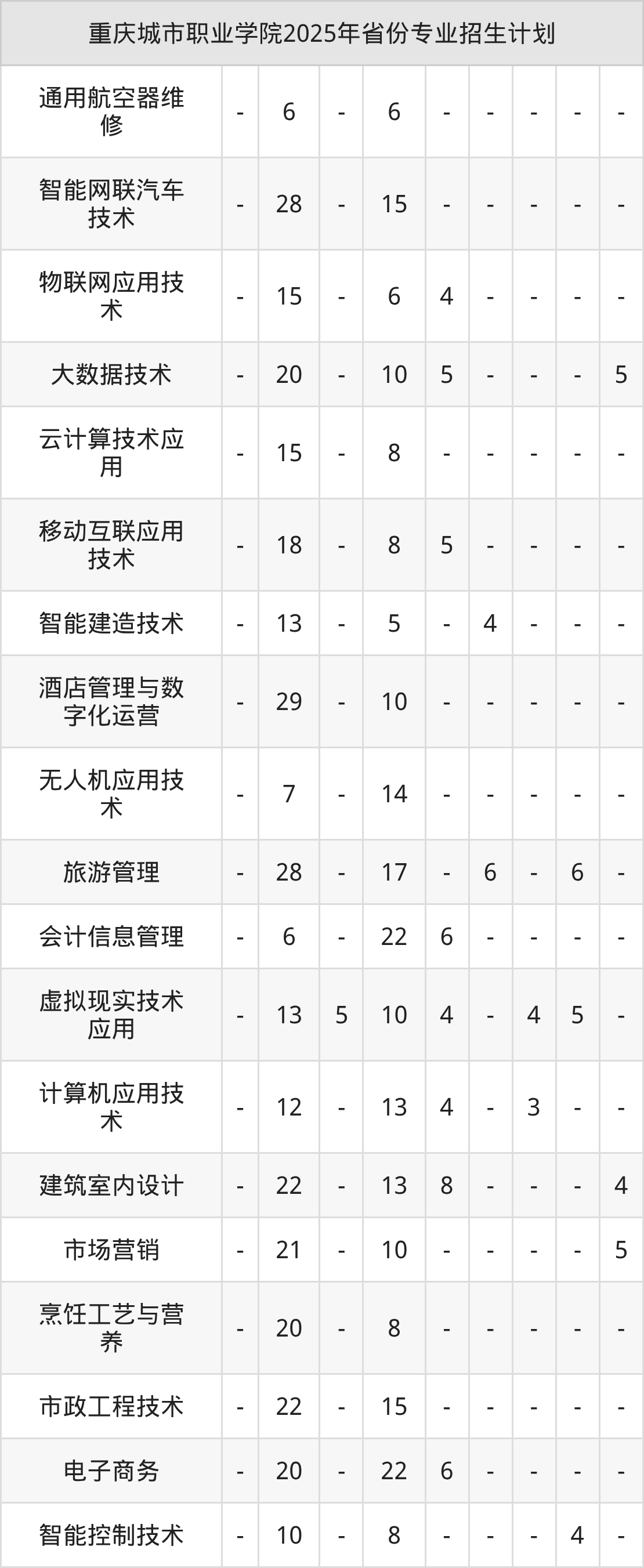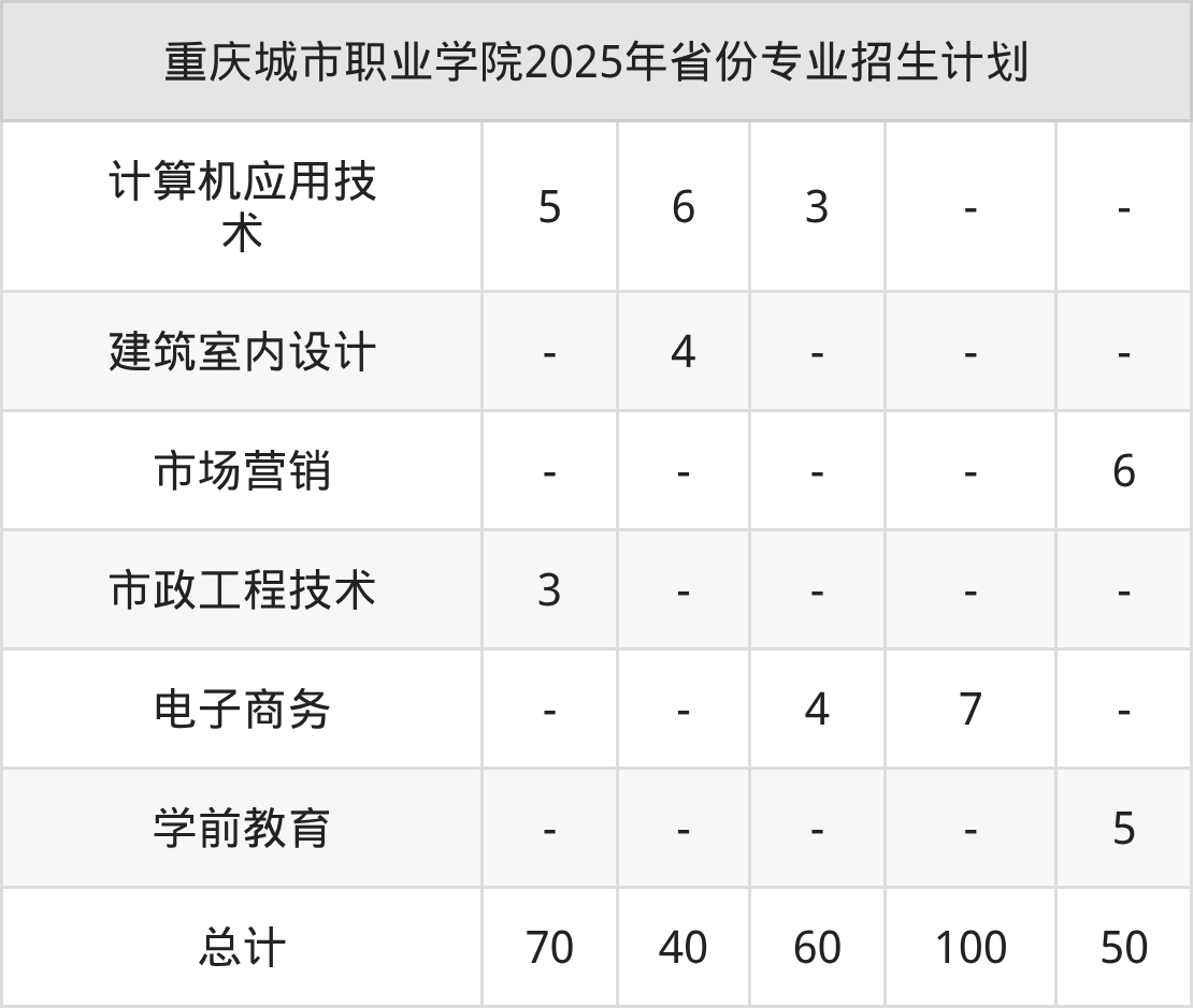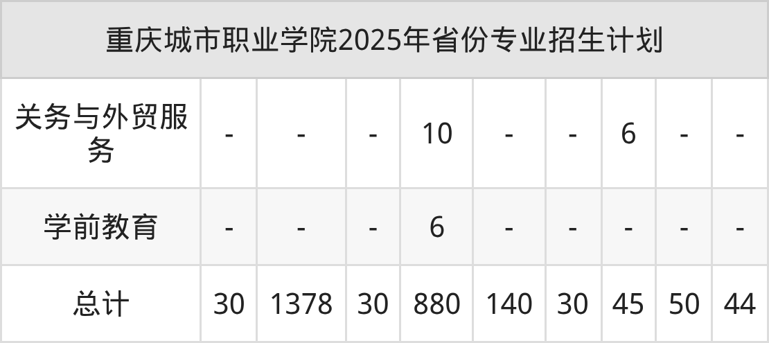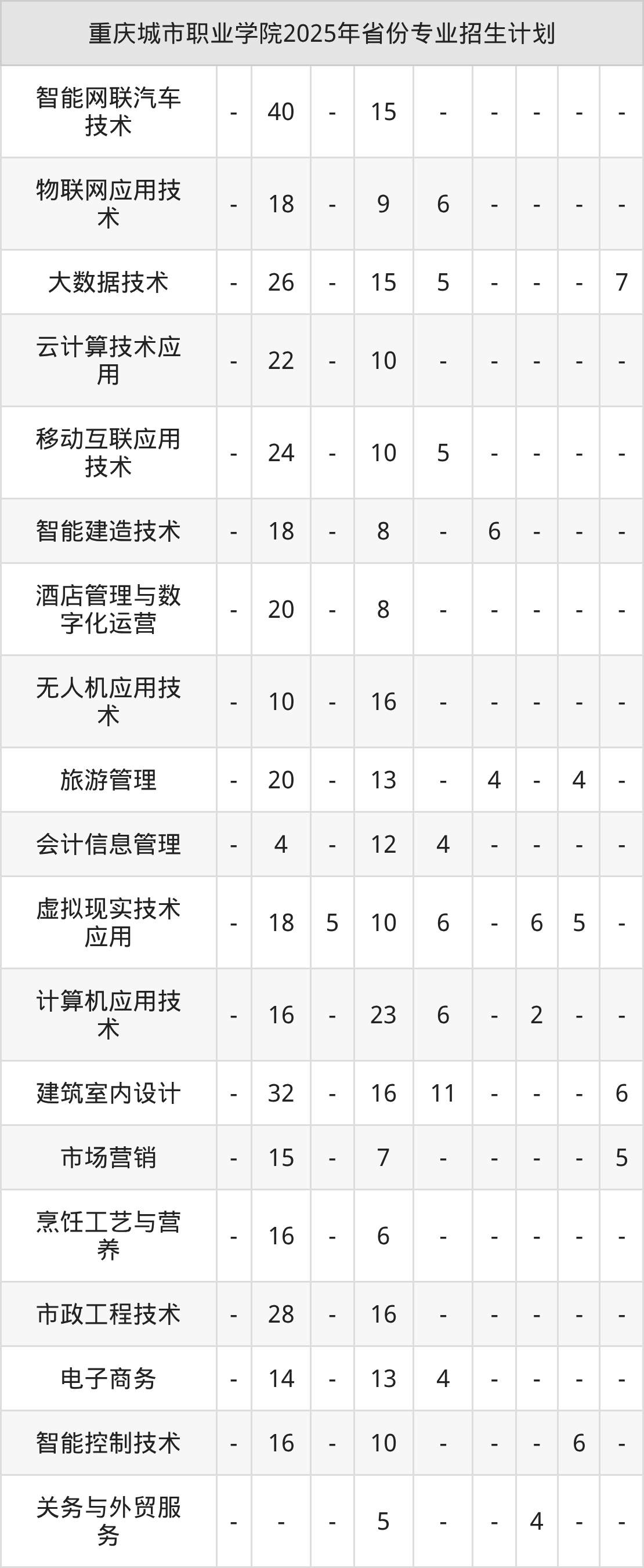 2026年重庆城市职业学院专科招生计划待公布,下面附上2025年数据,暂供参考: