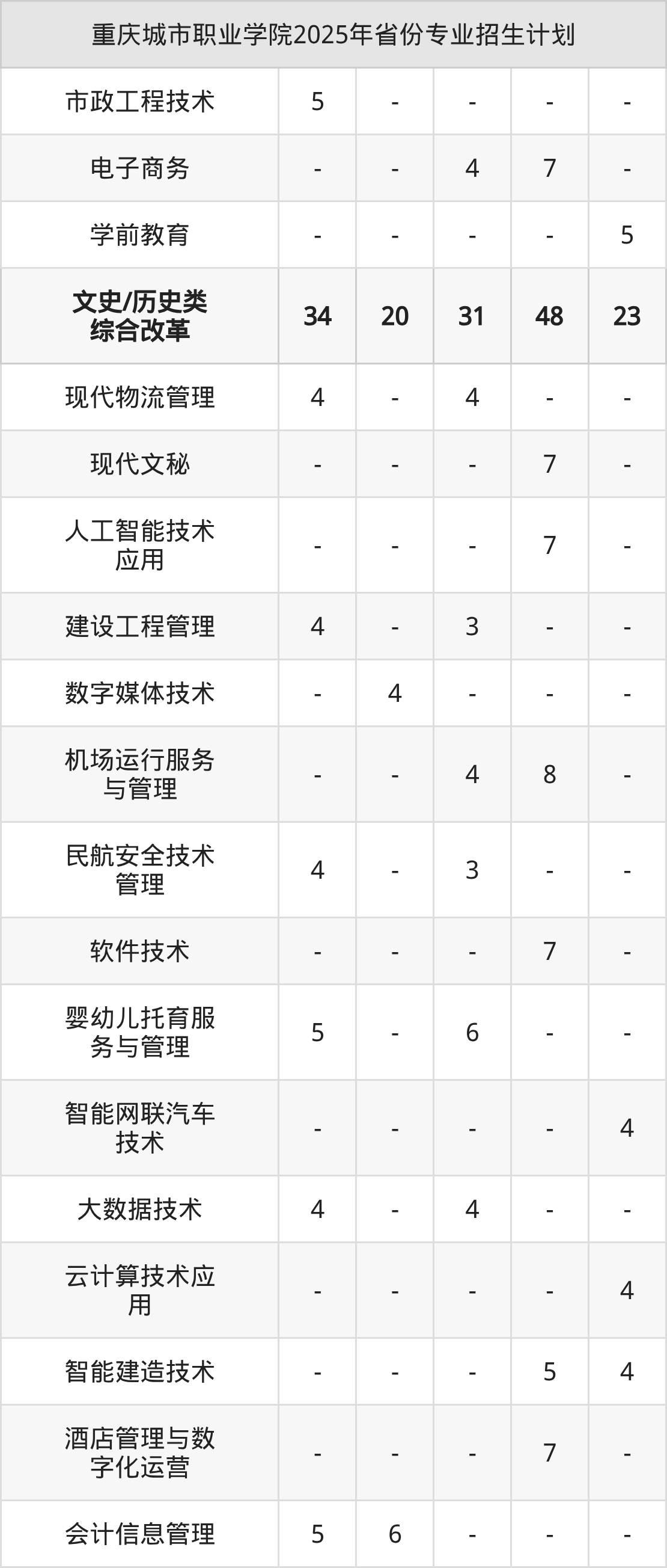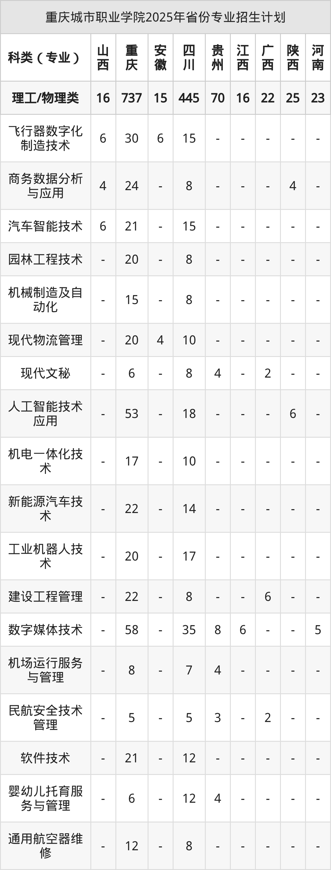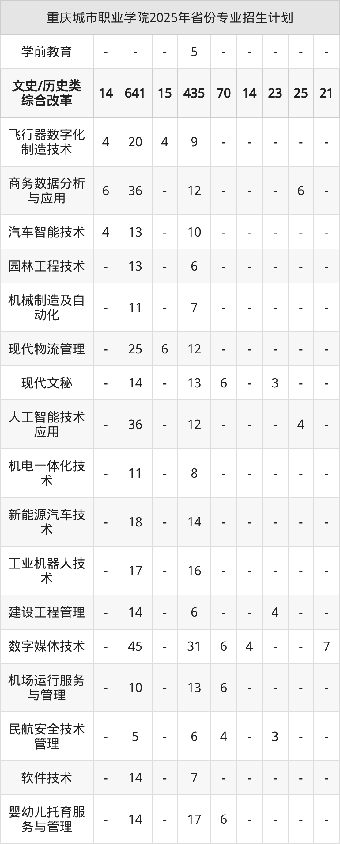 2026年重庆城市职业学院专科招生计划待公布,下面附上2025年数据,暂供参考: