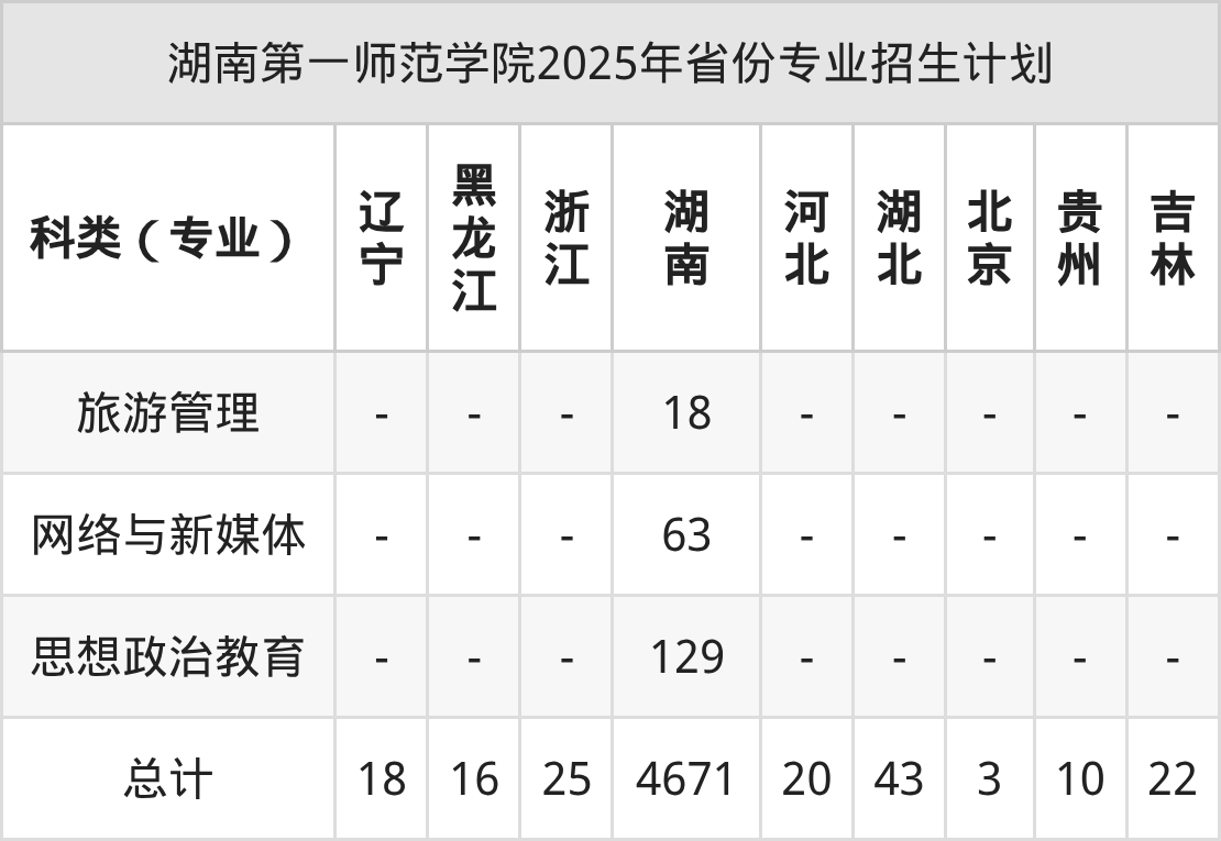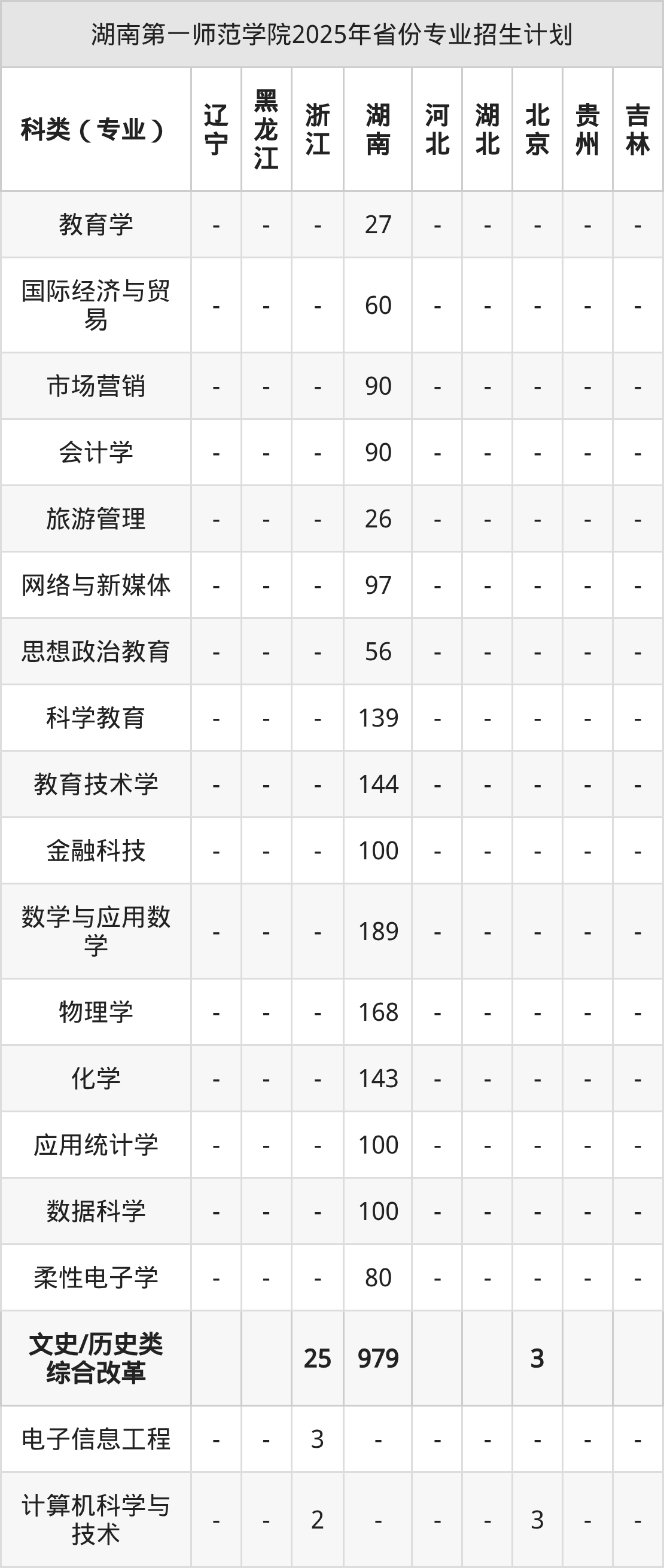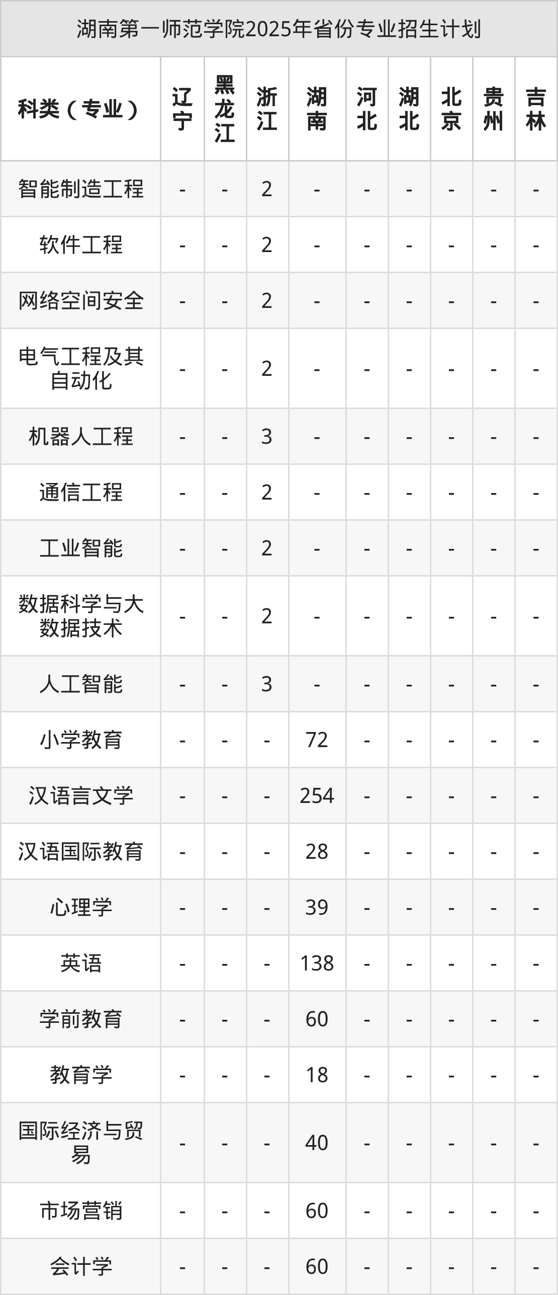 2026年湖南第一师范学院本科招生计划待公布,下面附上2025年数据,暂供参考: