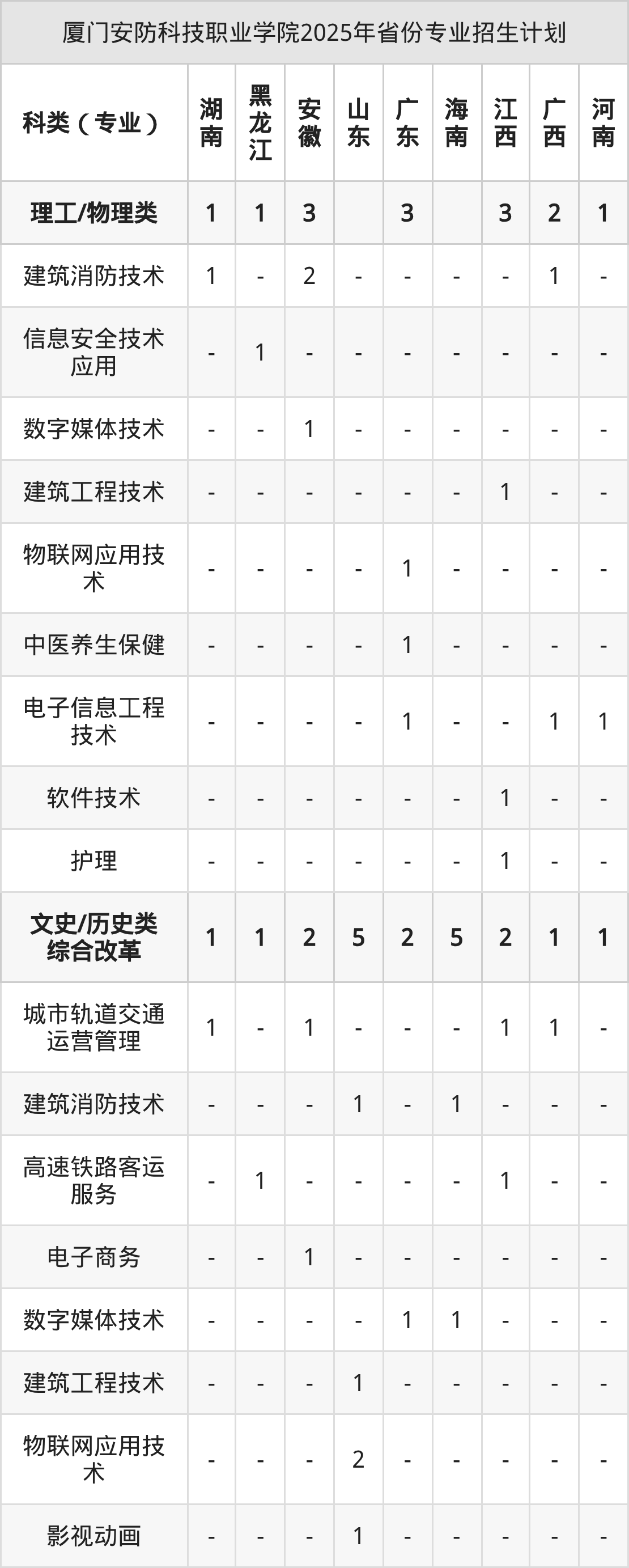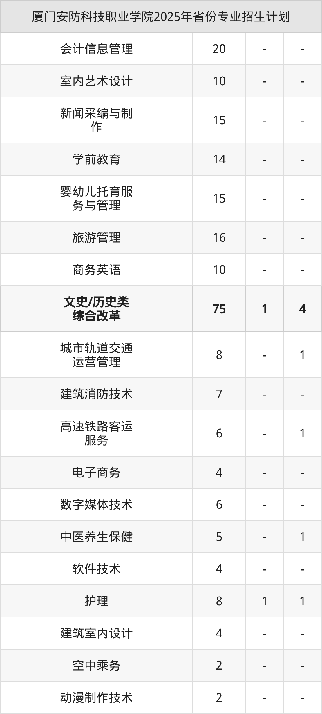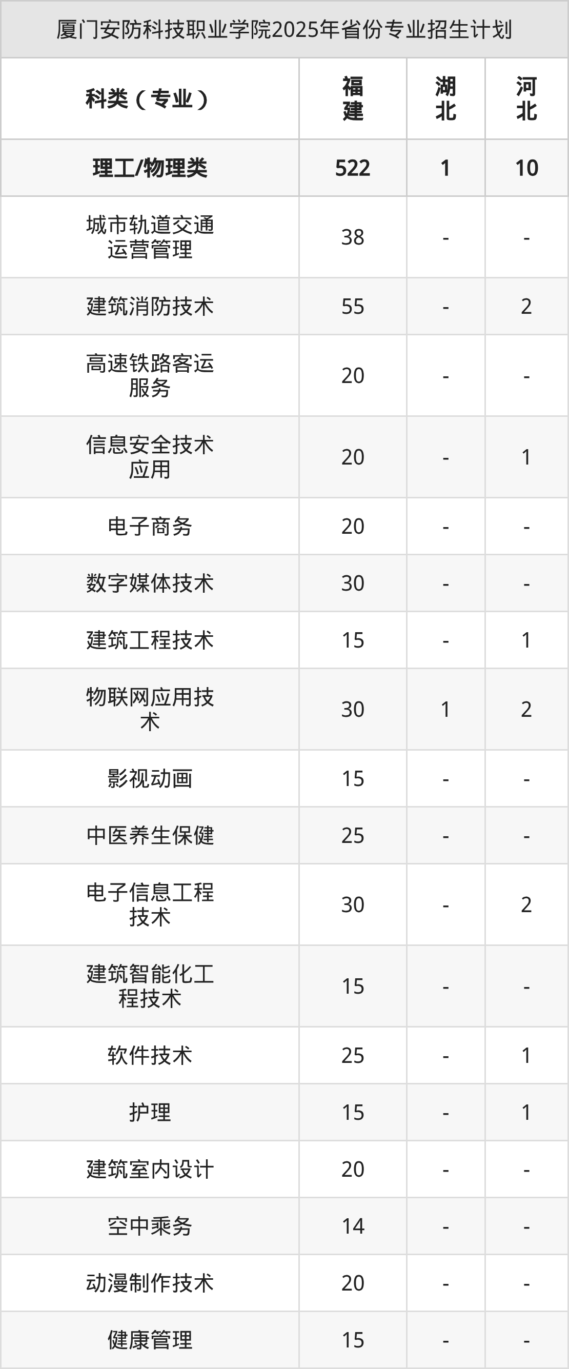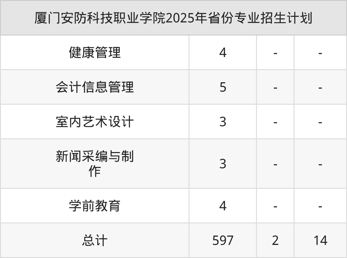 2026年厦门安防科技职业学院专科招生计划待公布,下面附上2025年数据,暂供参考: