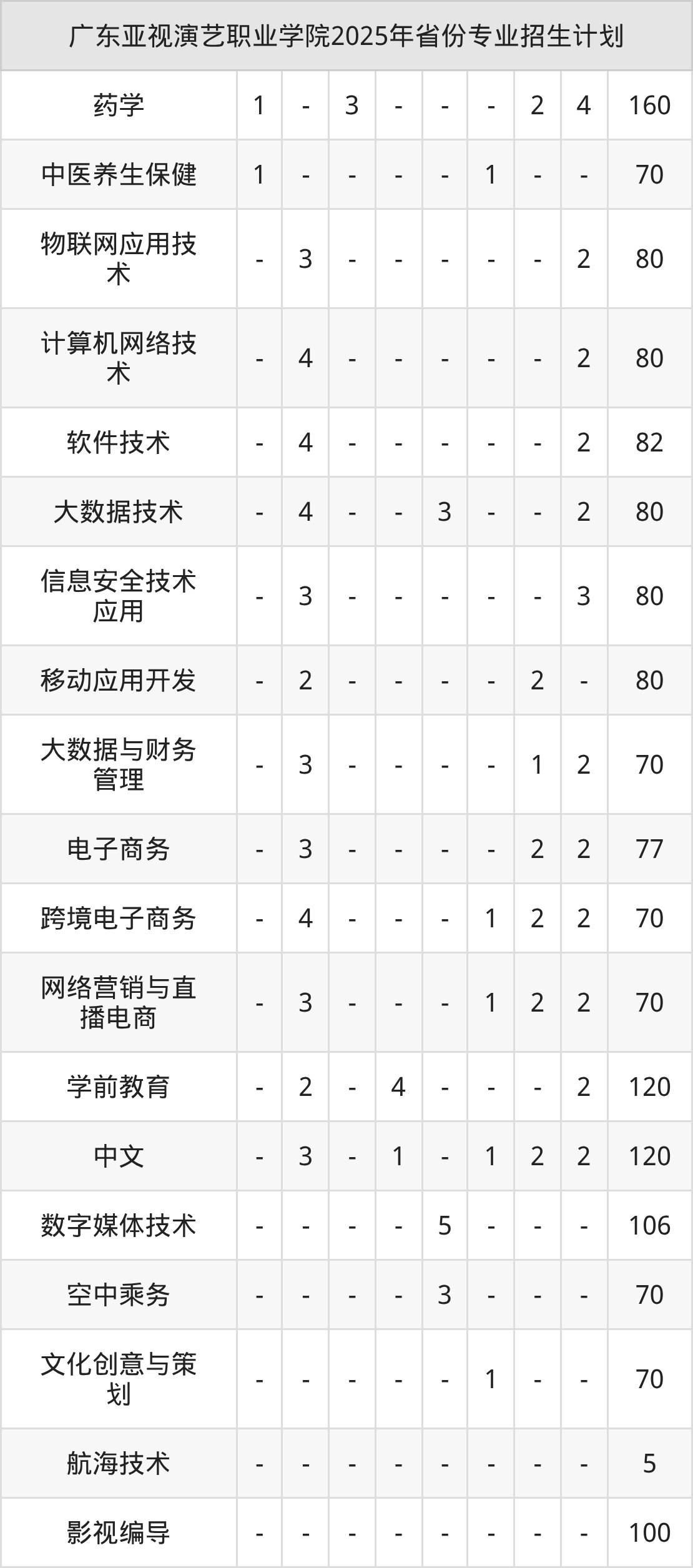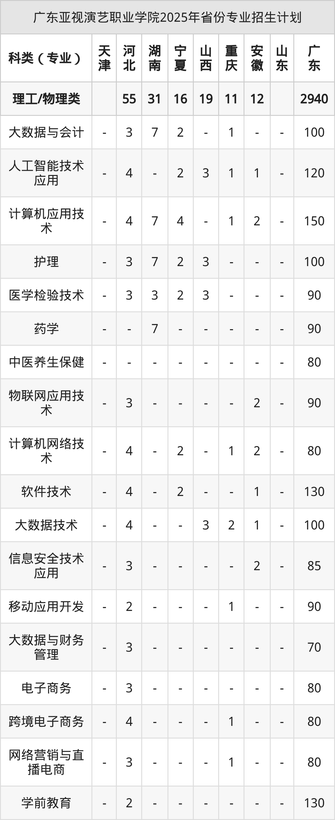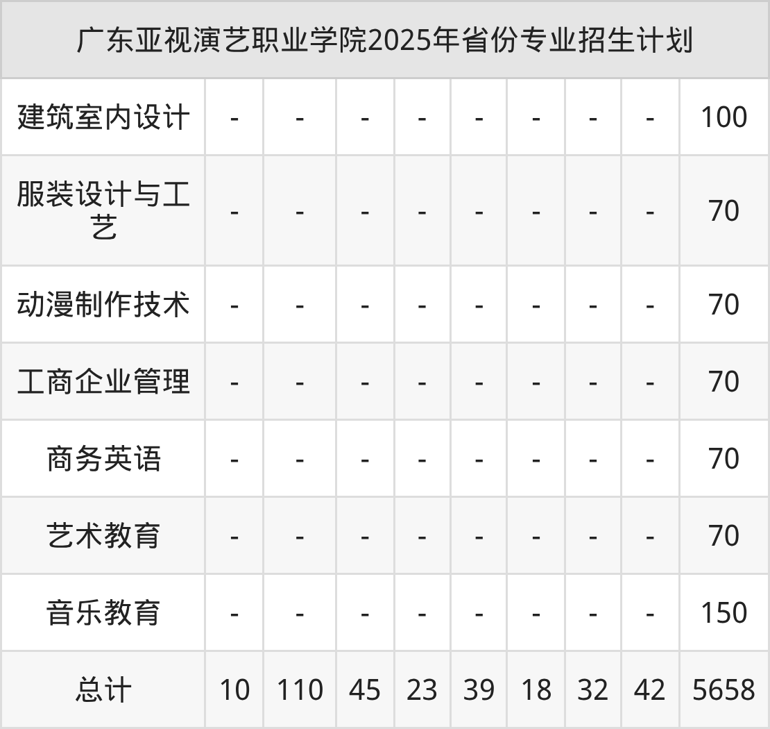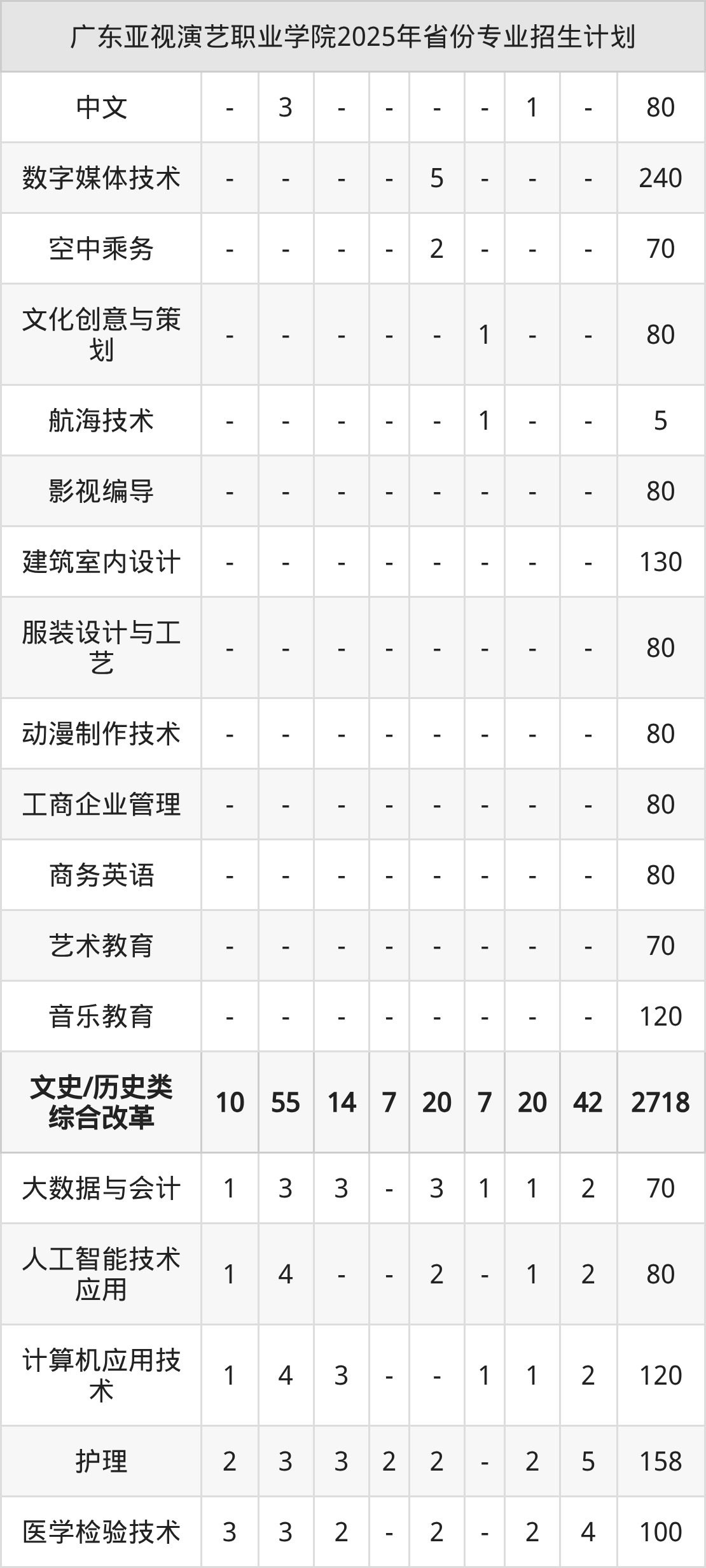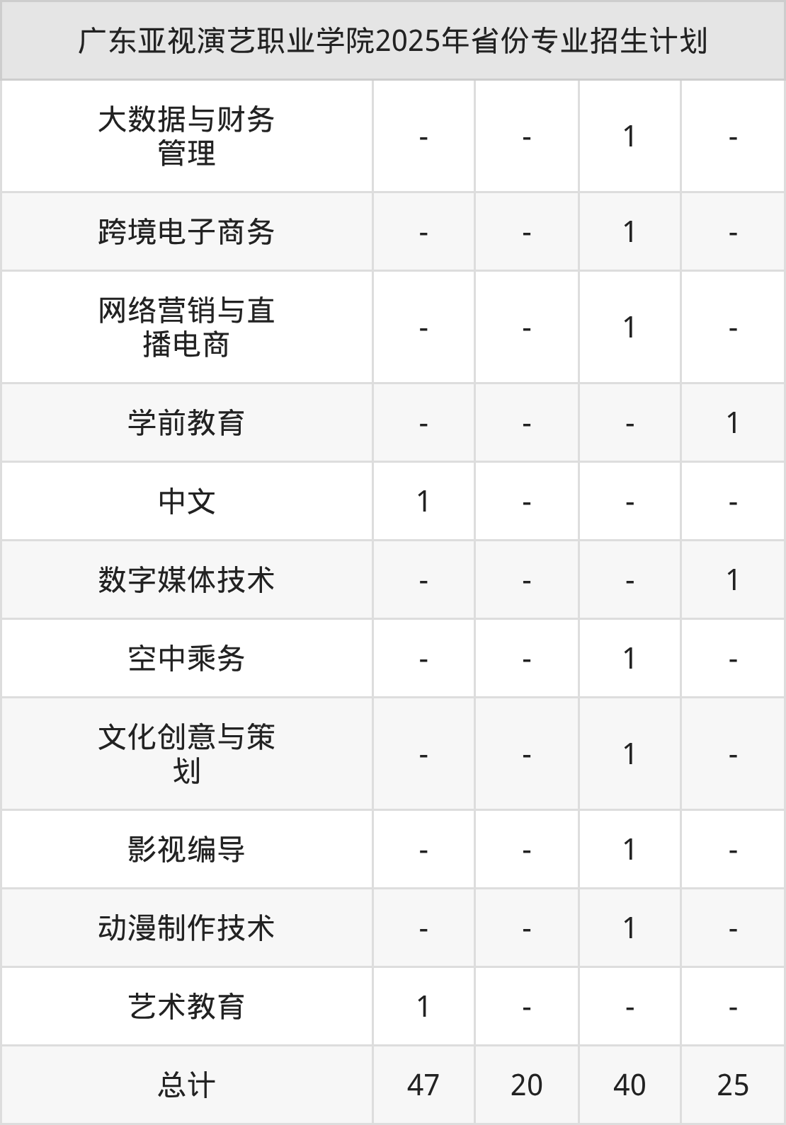 2026年广东亚视演艺职业学院专科招生计划待公布,下面附上2025年数据,暂供参考: