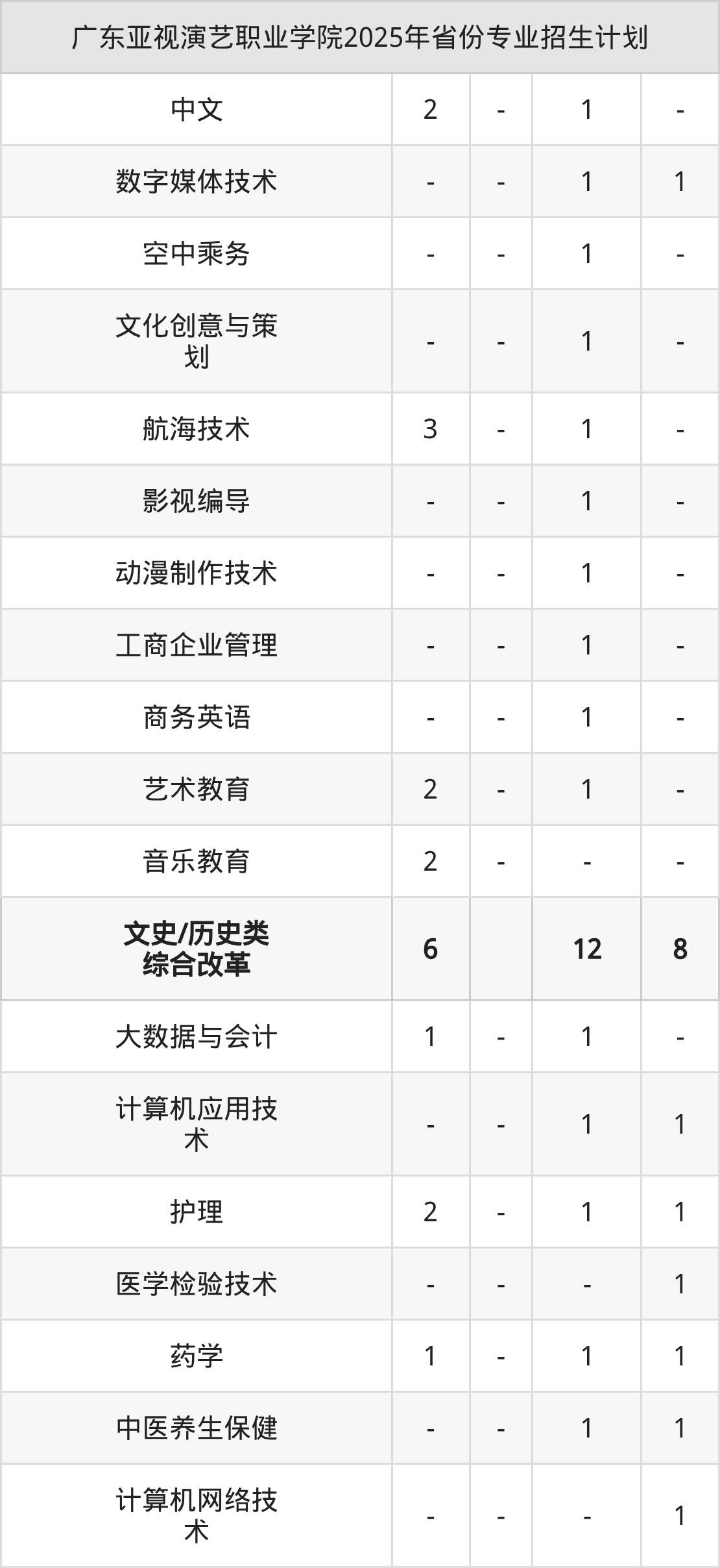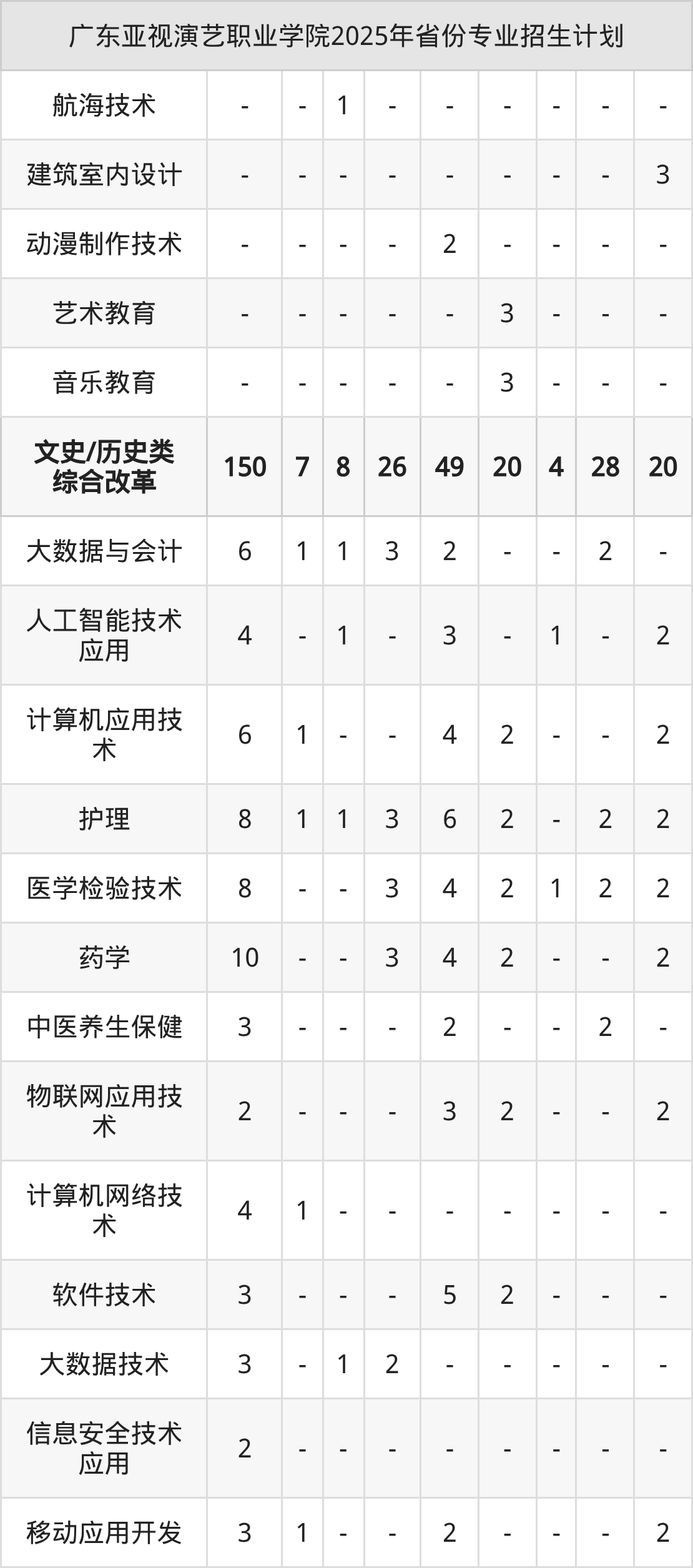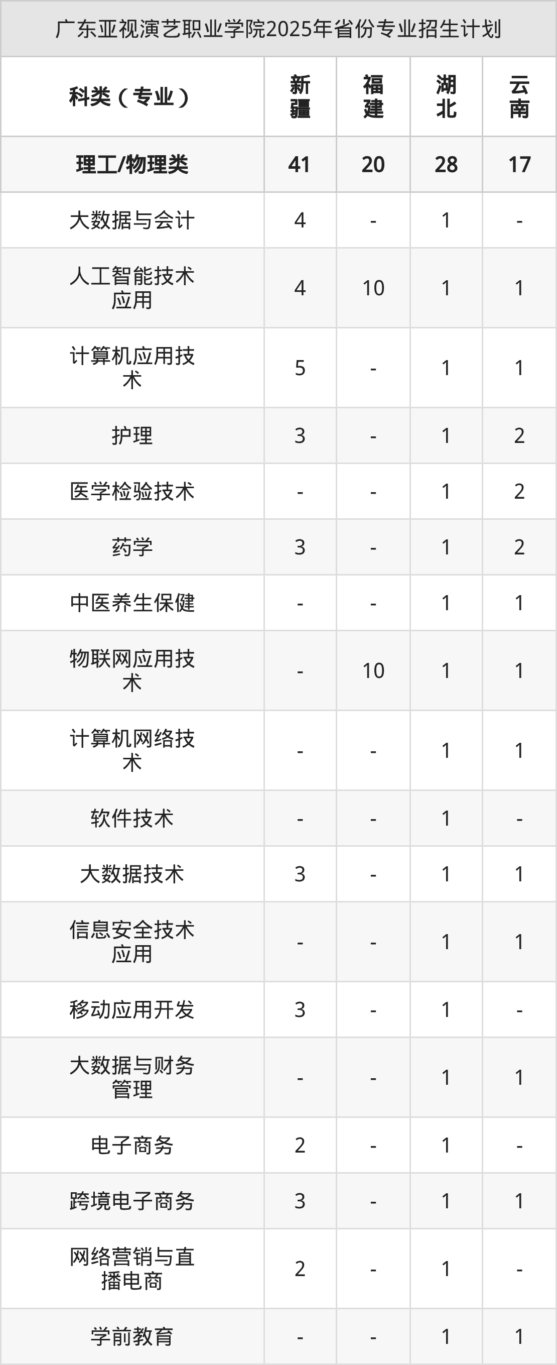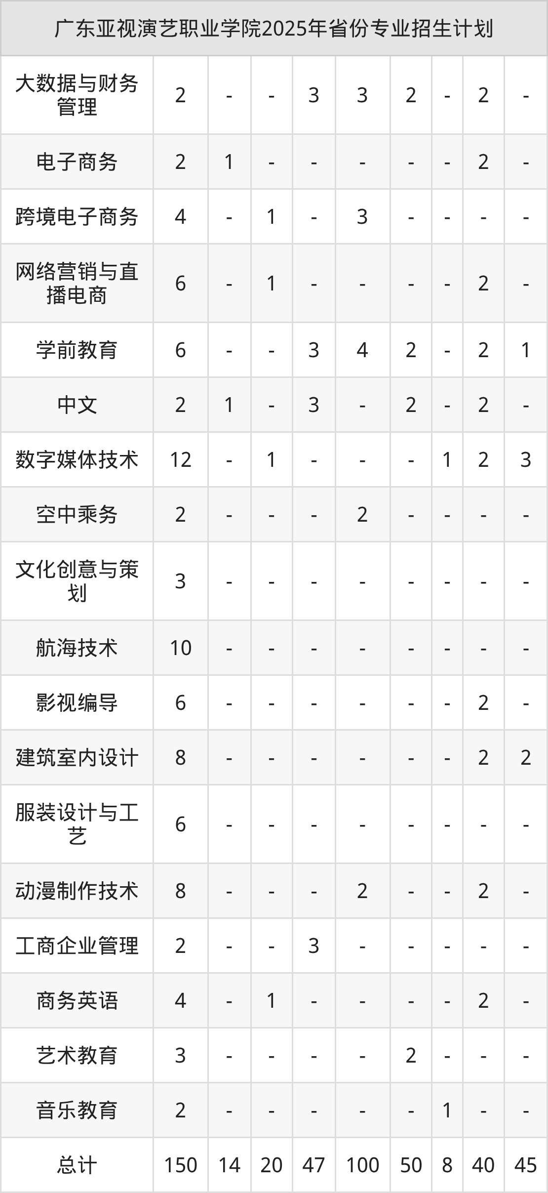 2026年广东亚视演艺职业学院专科招生计划待公布,下面附上2025年数据,暂供参考: