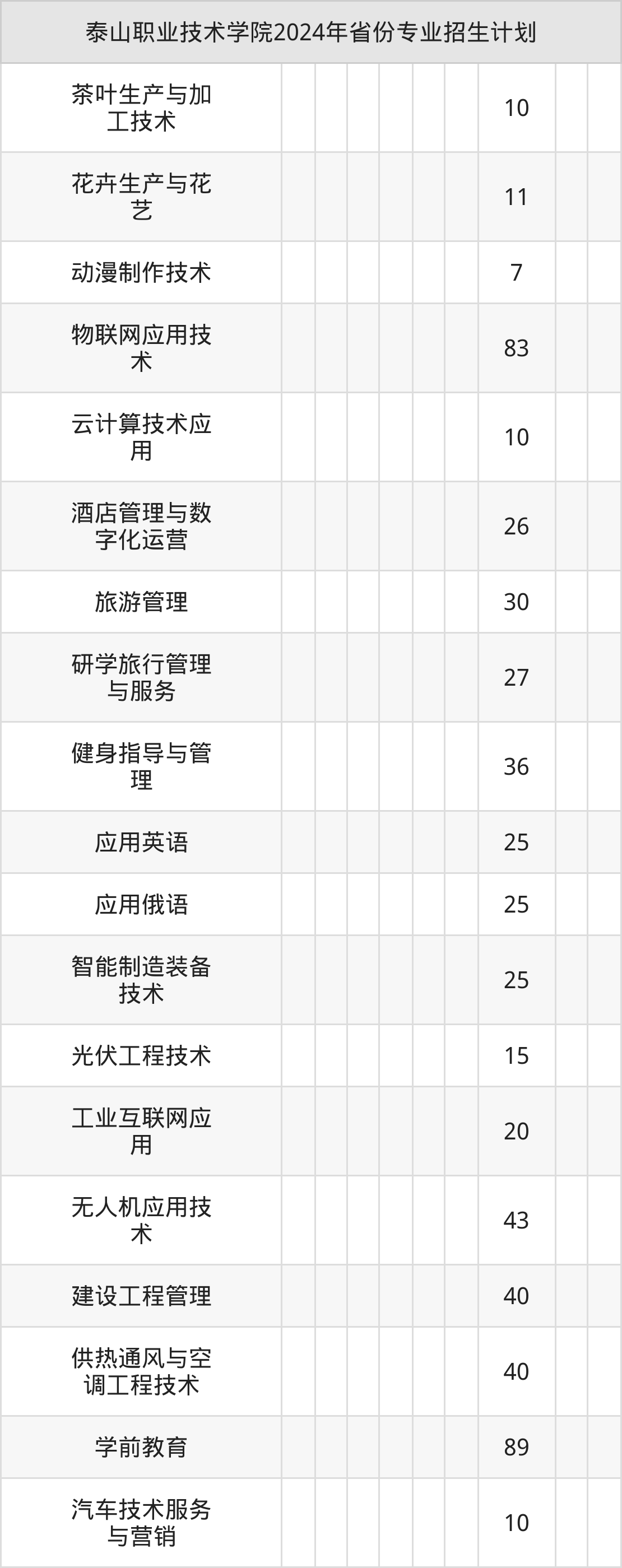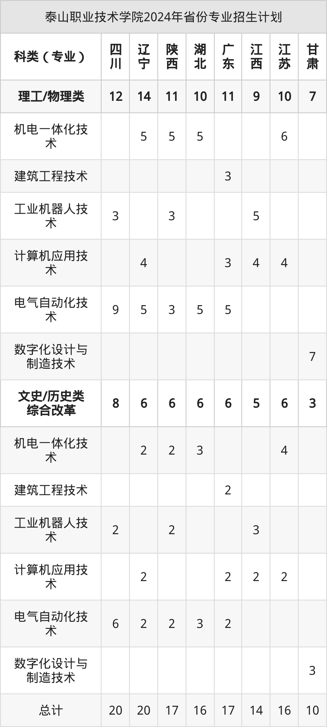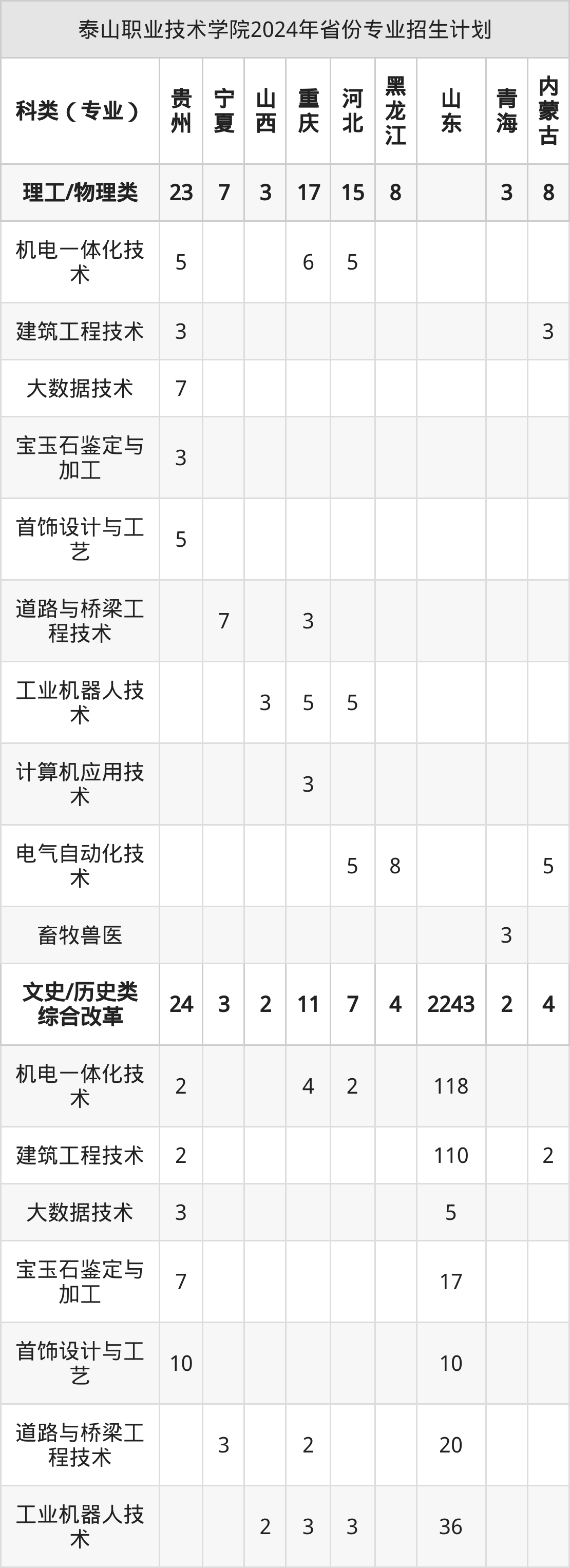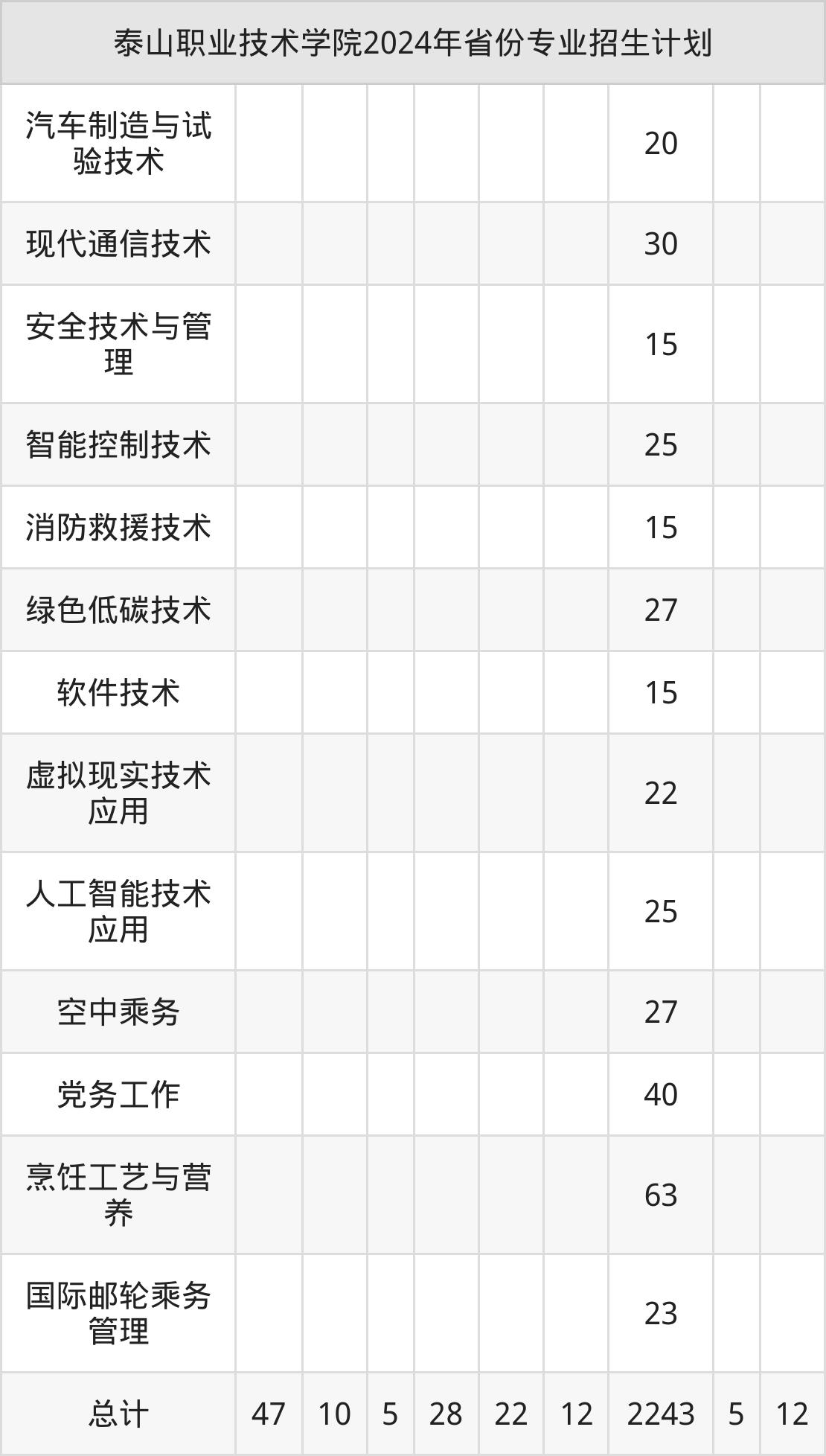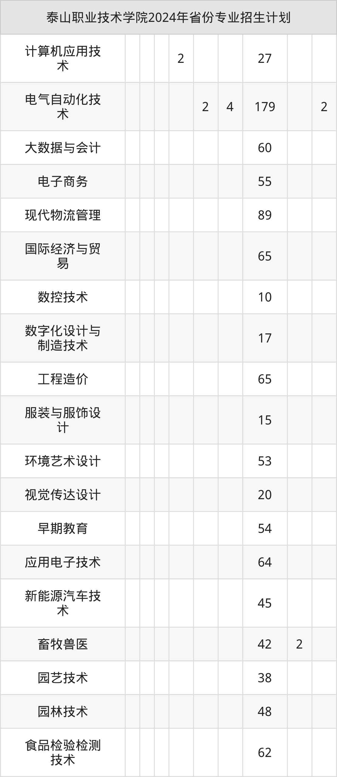 2025年泰山职业技术学院专科招生计划待公布,下面附上2024年数据,暂供参考: