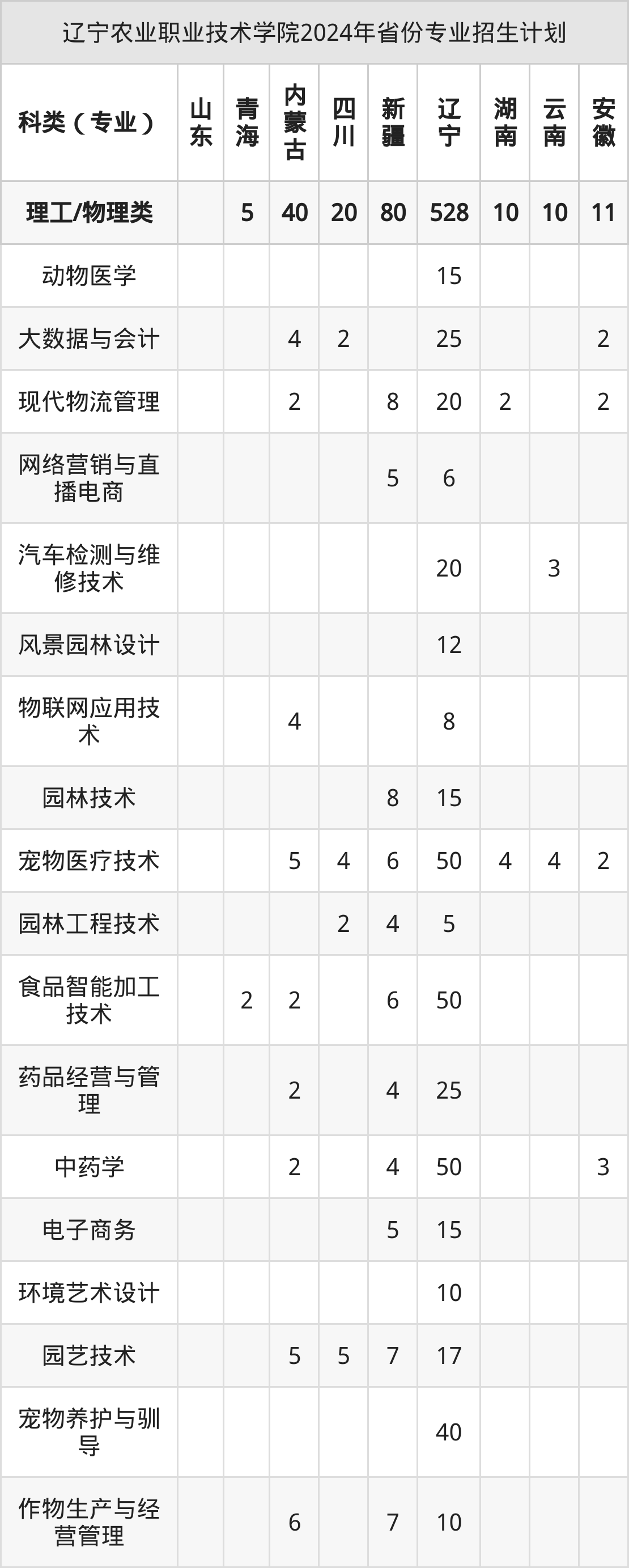 2025年辽宁农业职业技术学院专科招生计划待公布,下面附上2024年数据,暂供参考: