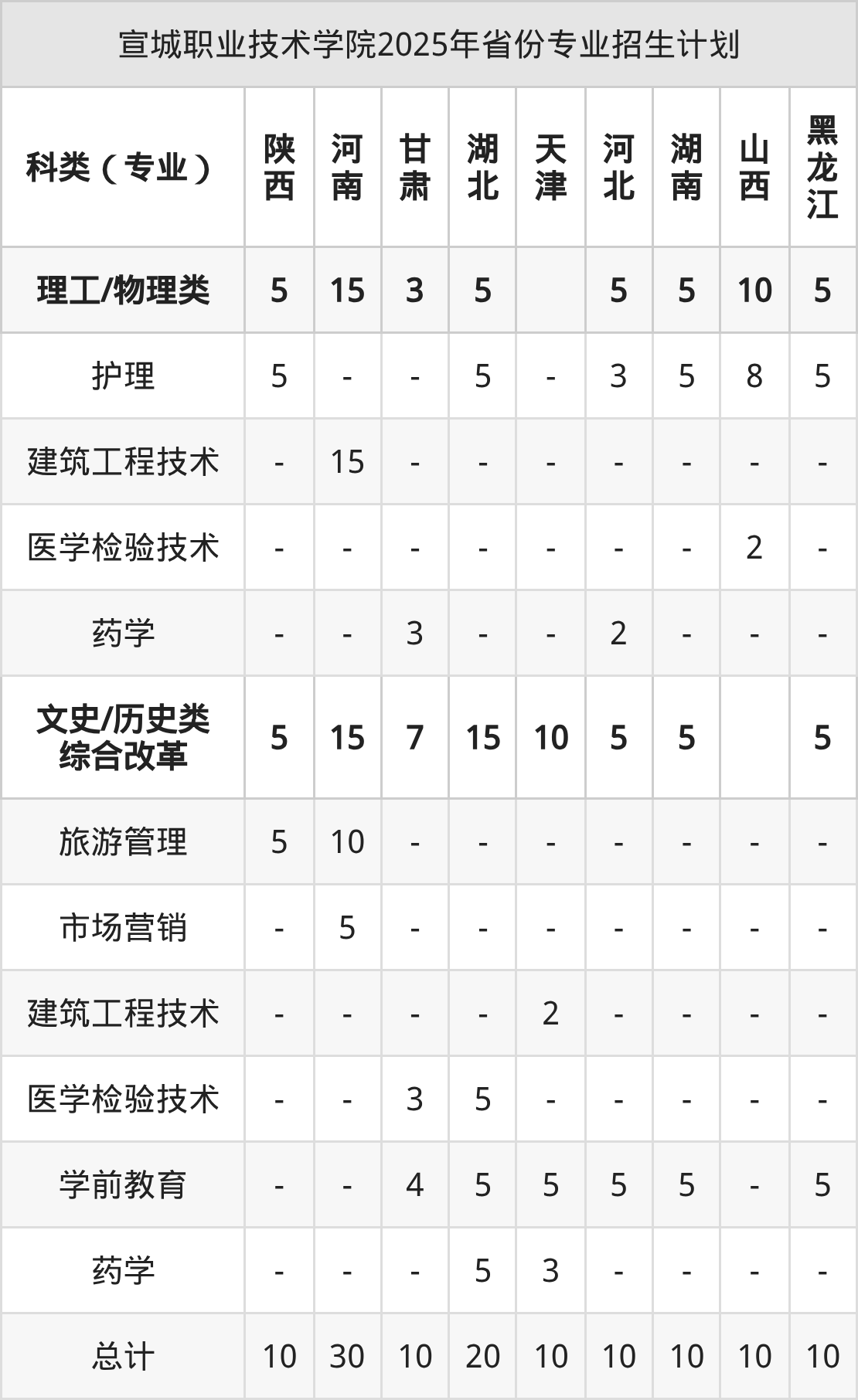 面向13个省市区招收专科生,包括陕西、河南、甘肃、湖北、天津等。