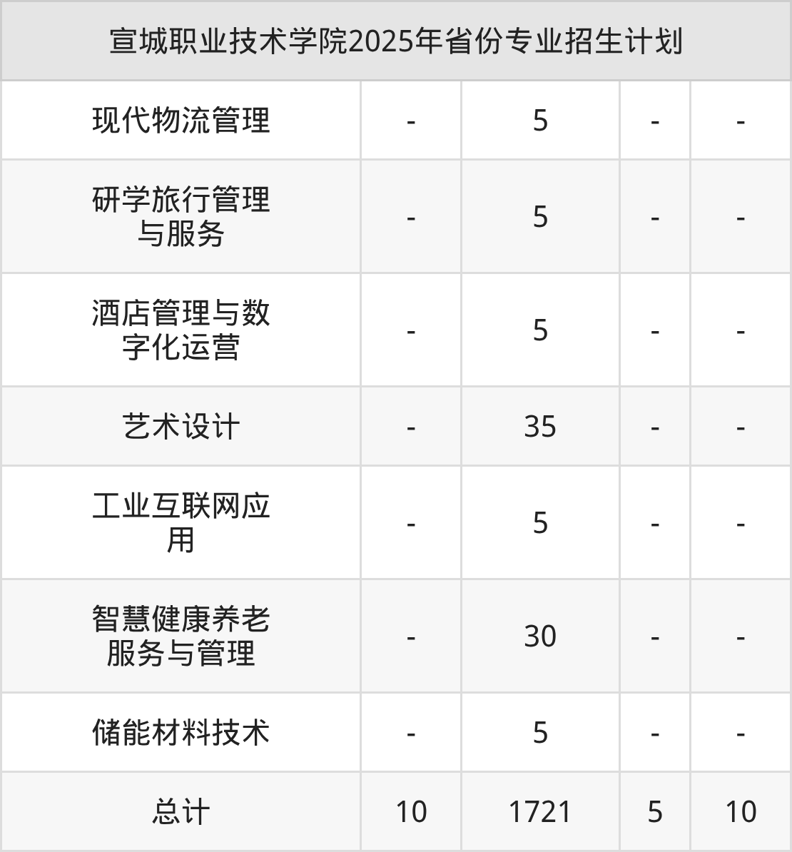 而各省份的招生计划数为河北10人,黑龙江10人,安徽1721人,广东5人,四川10人等。