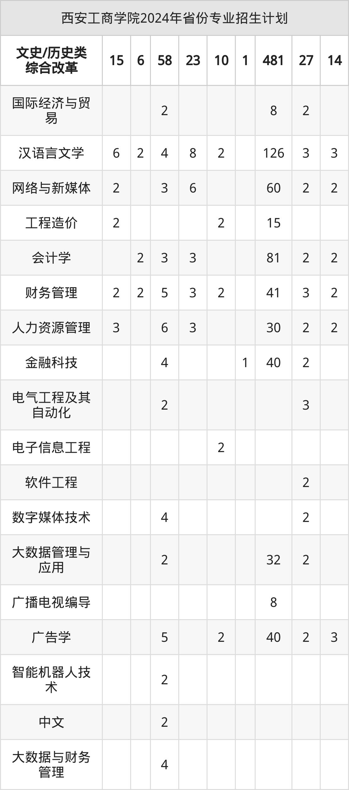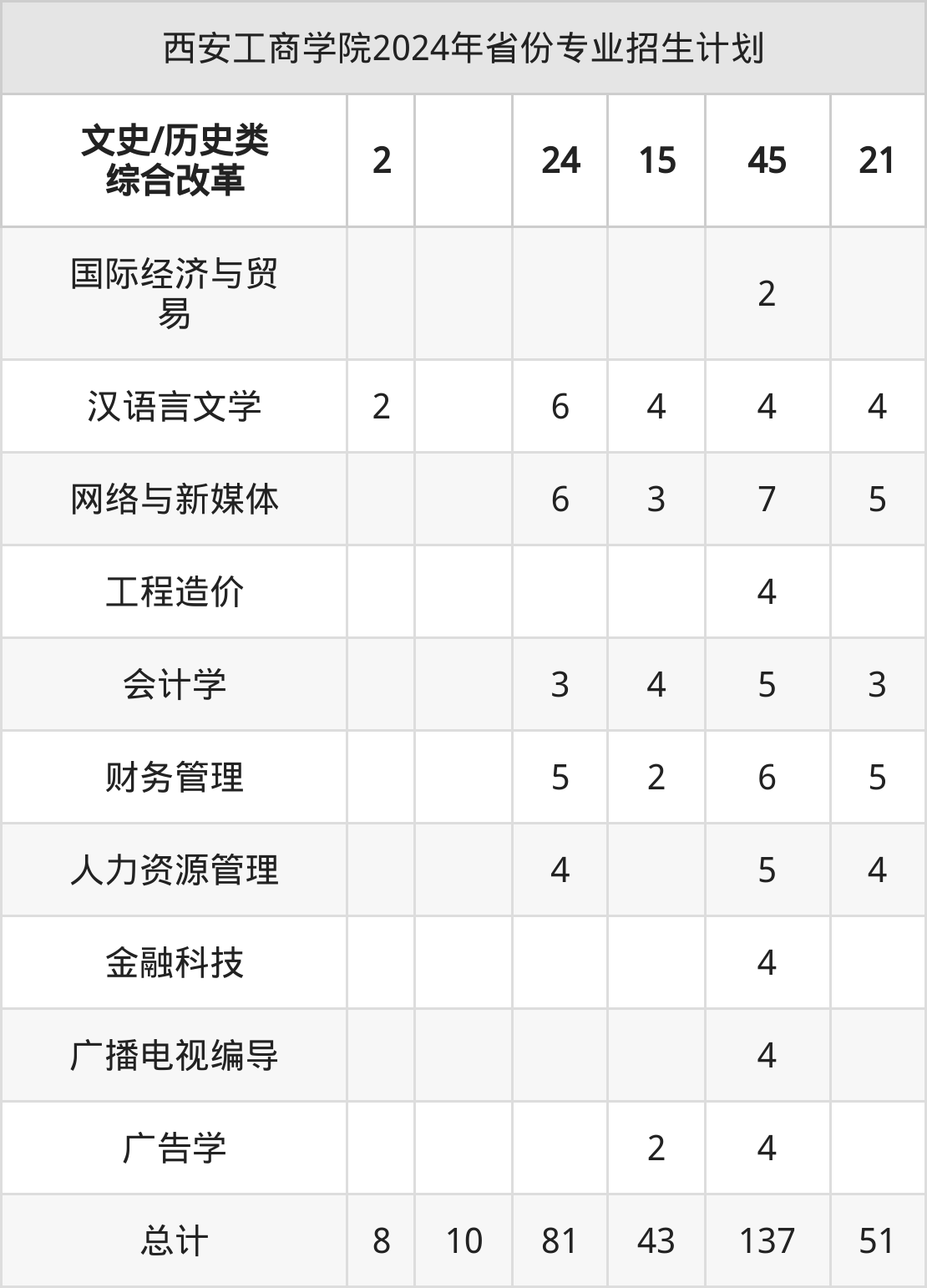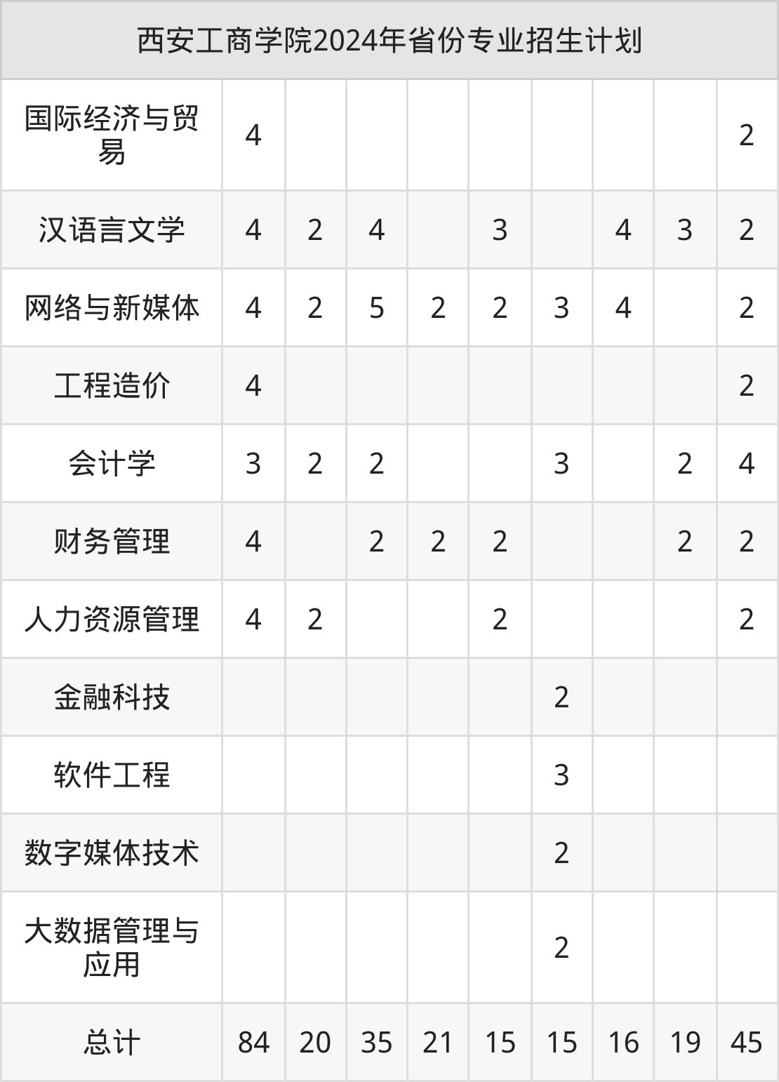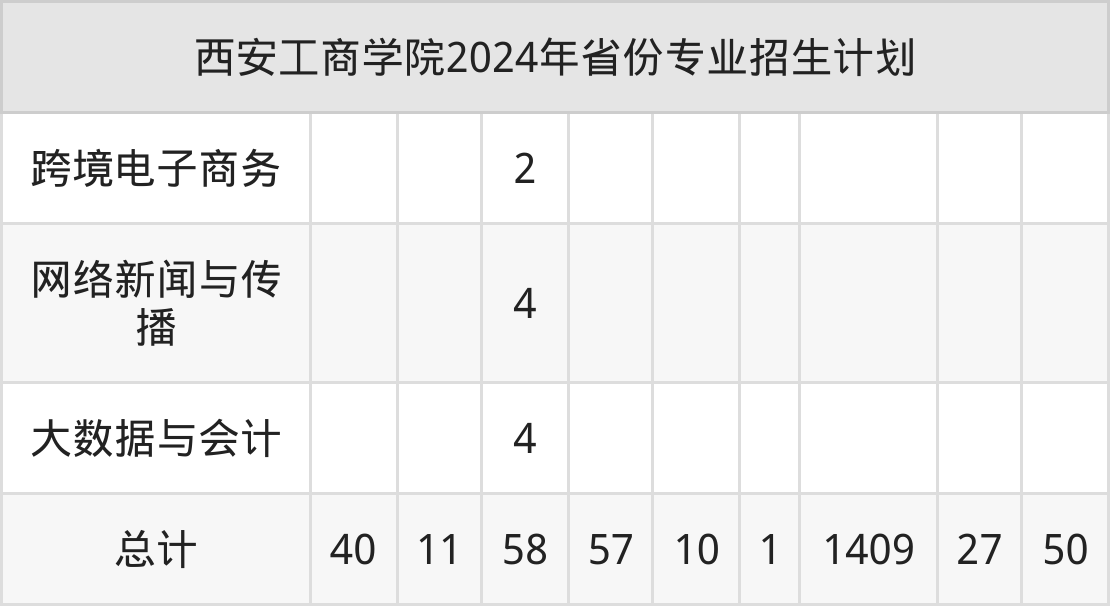 2025年西安工商学院本科招生计划待公布,下面附上2024年数据,暂供参考: