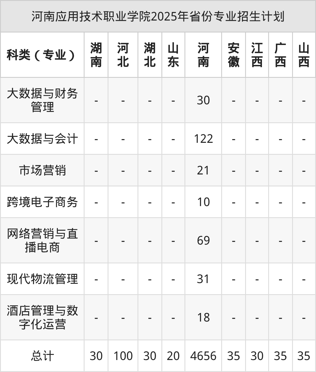 面向10个省市区招收专科生,包括湖南、河北、湖北、山东、河南等。