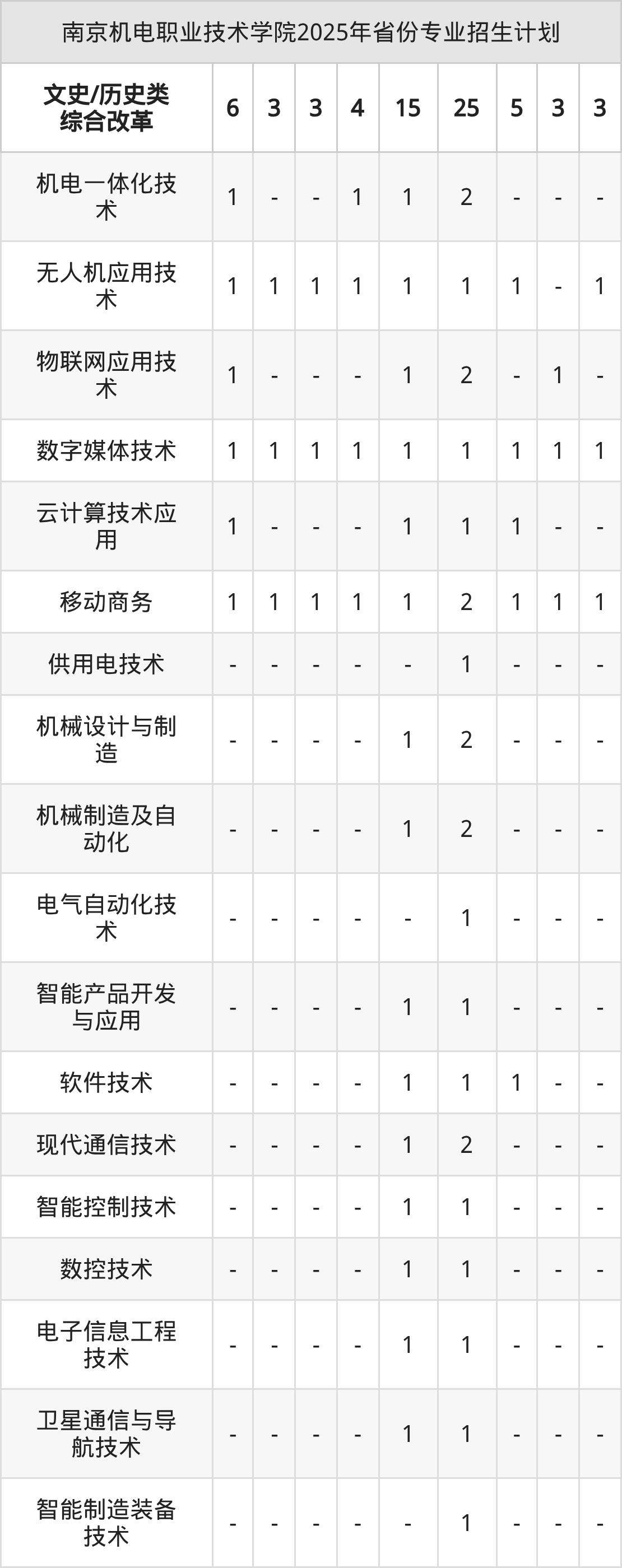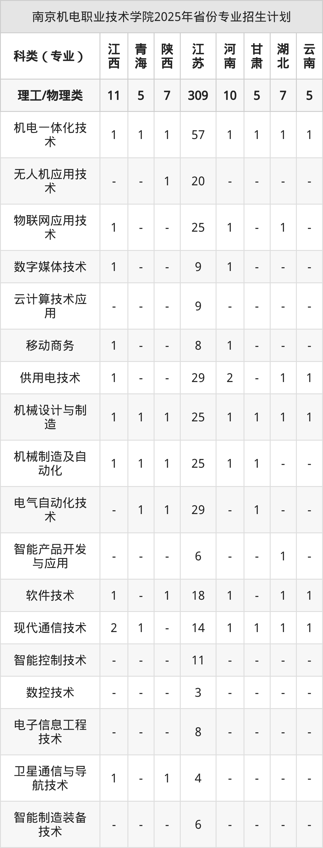 2026年南京机电职业技术学院专科招生计划待公布,下面附上2025年数据,暂供参考: