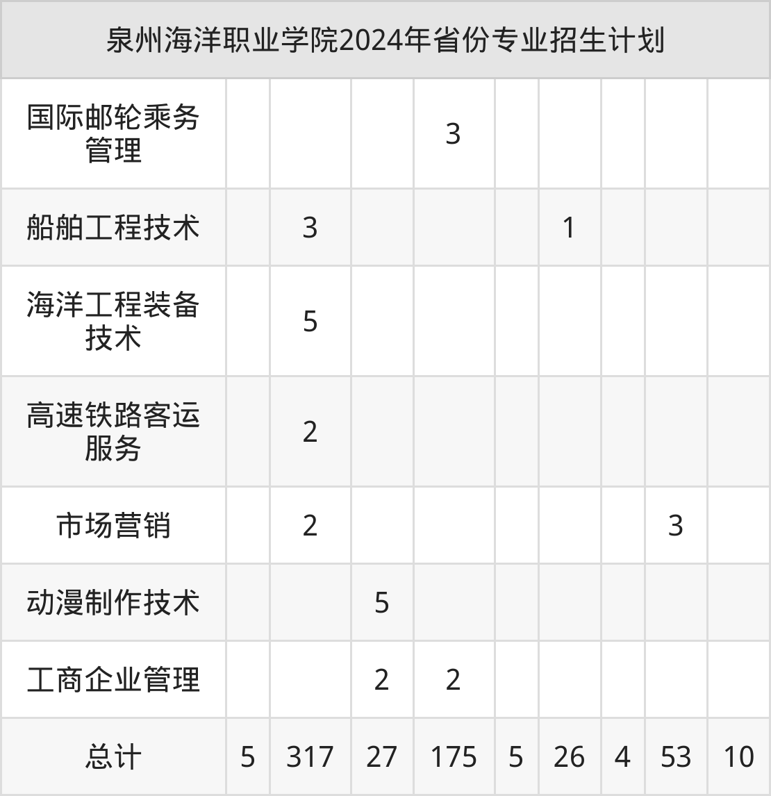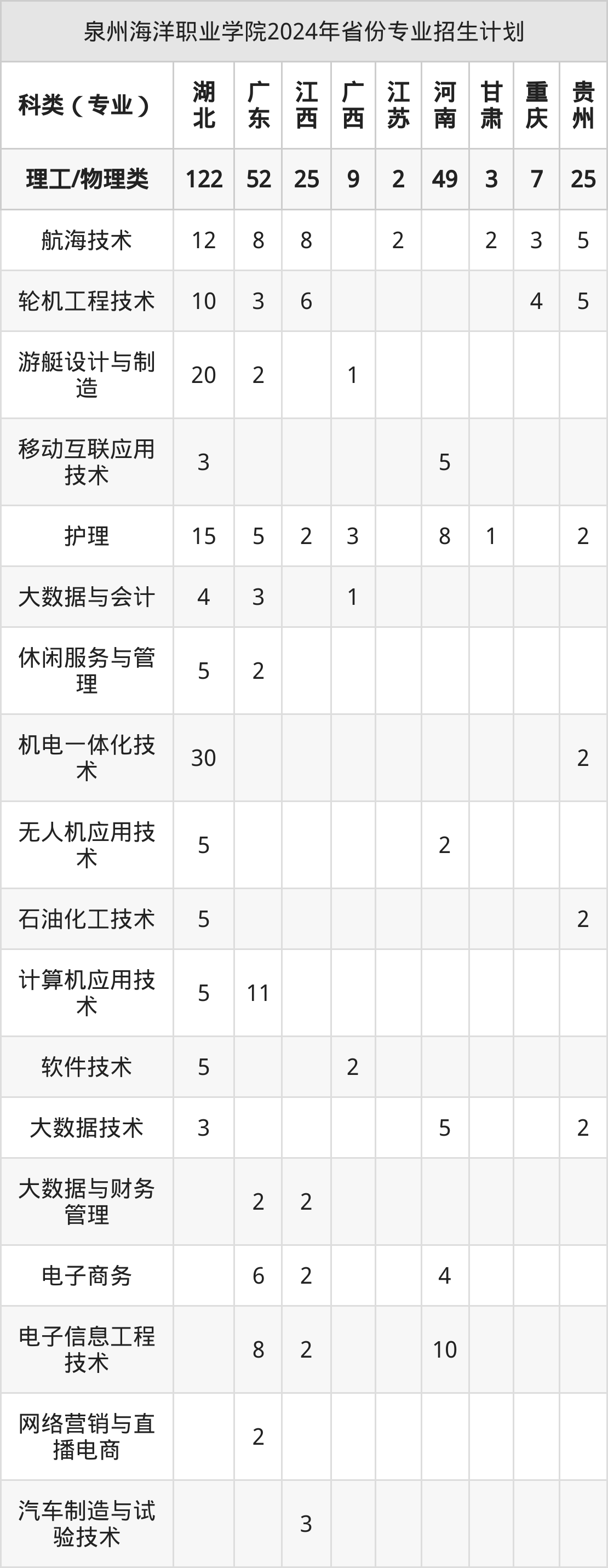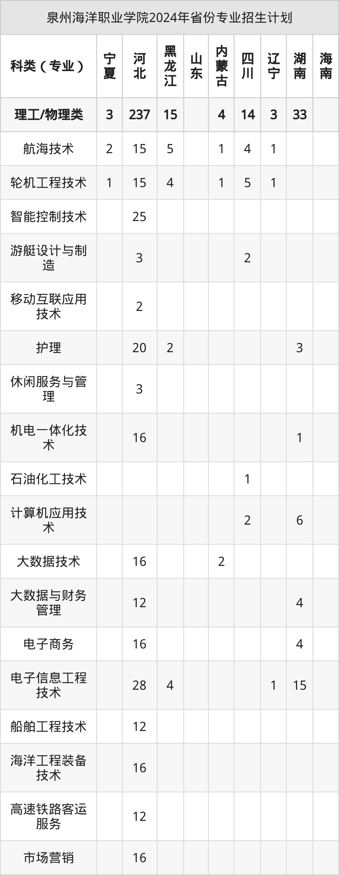 2025年泉州海洋职业学院专科招生计划待公布,下面附上2024年数据,暂供参考:
