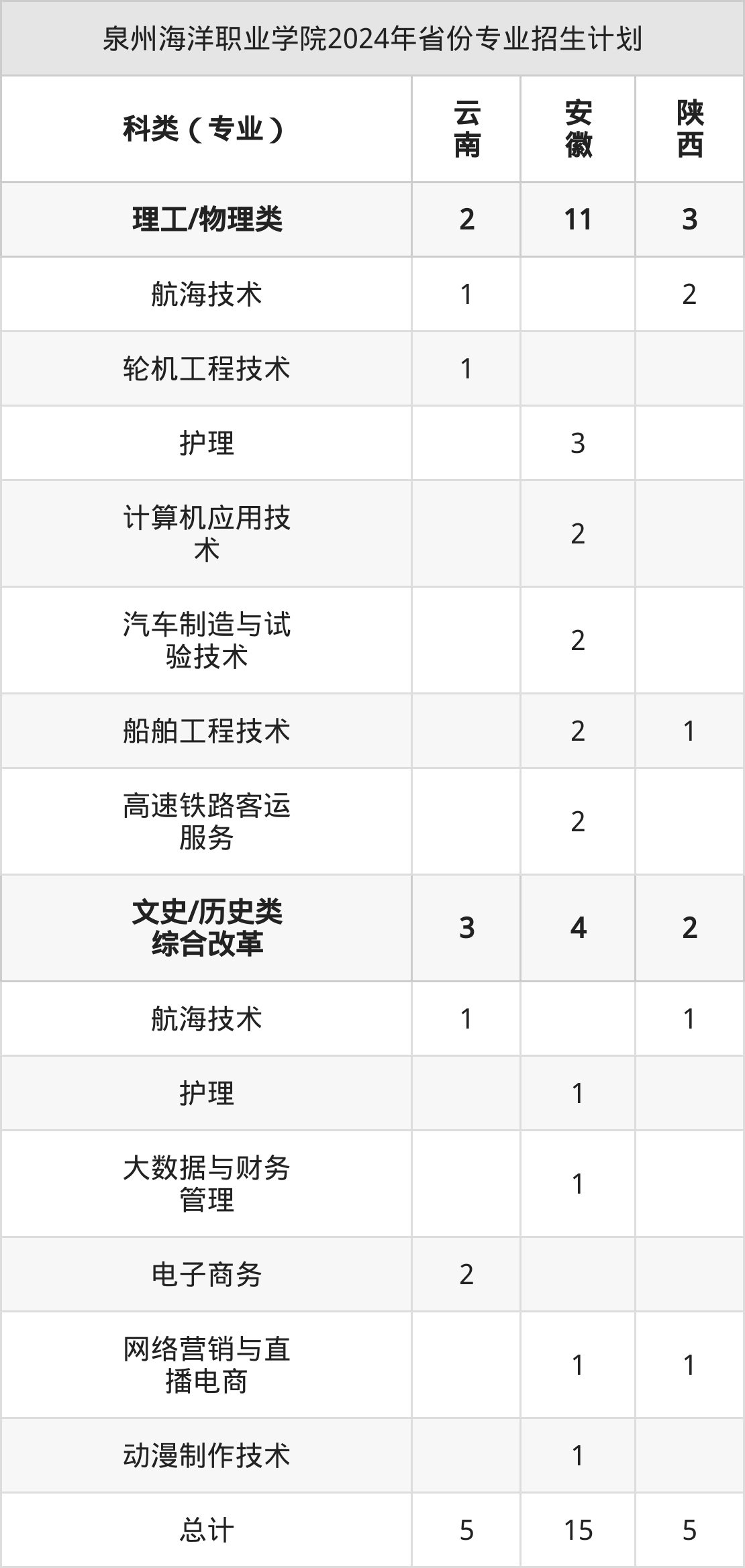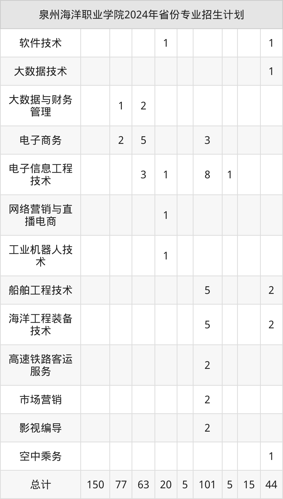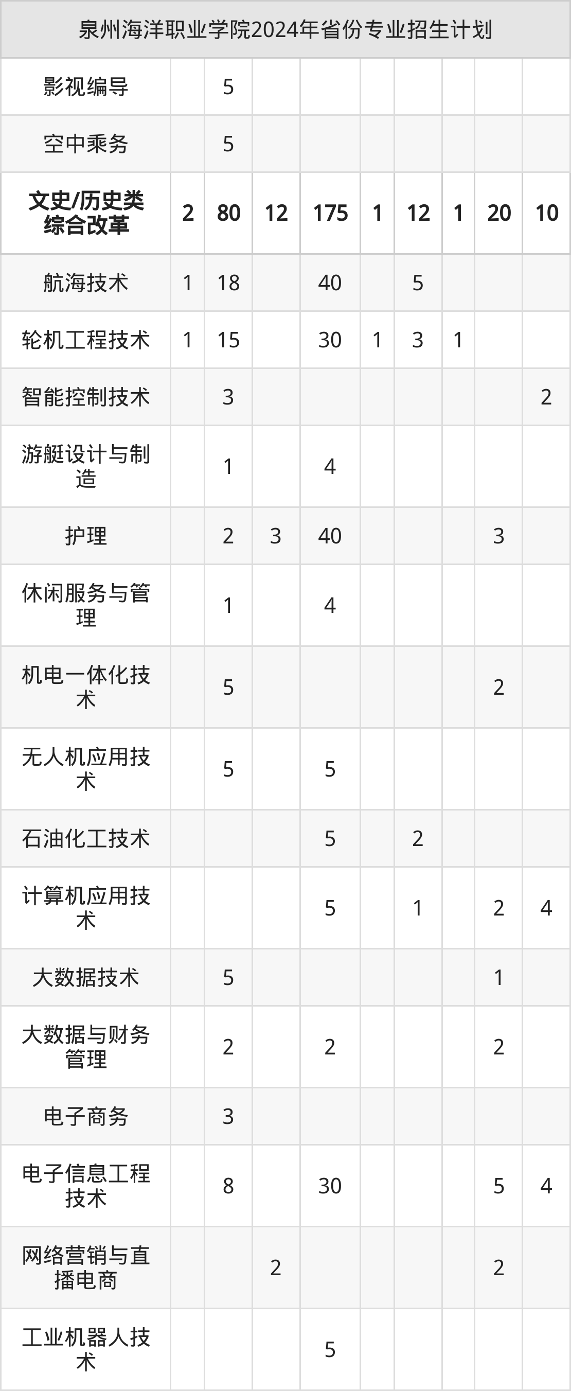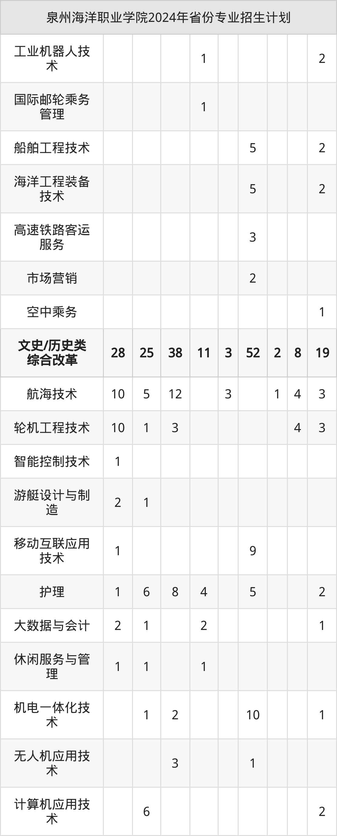 2025年泉州海洋职业学院专科招生计划待公布,下面附上2024年数据,暂供参考: