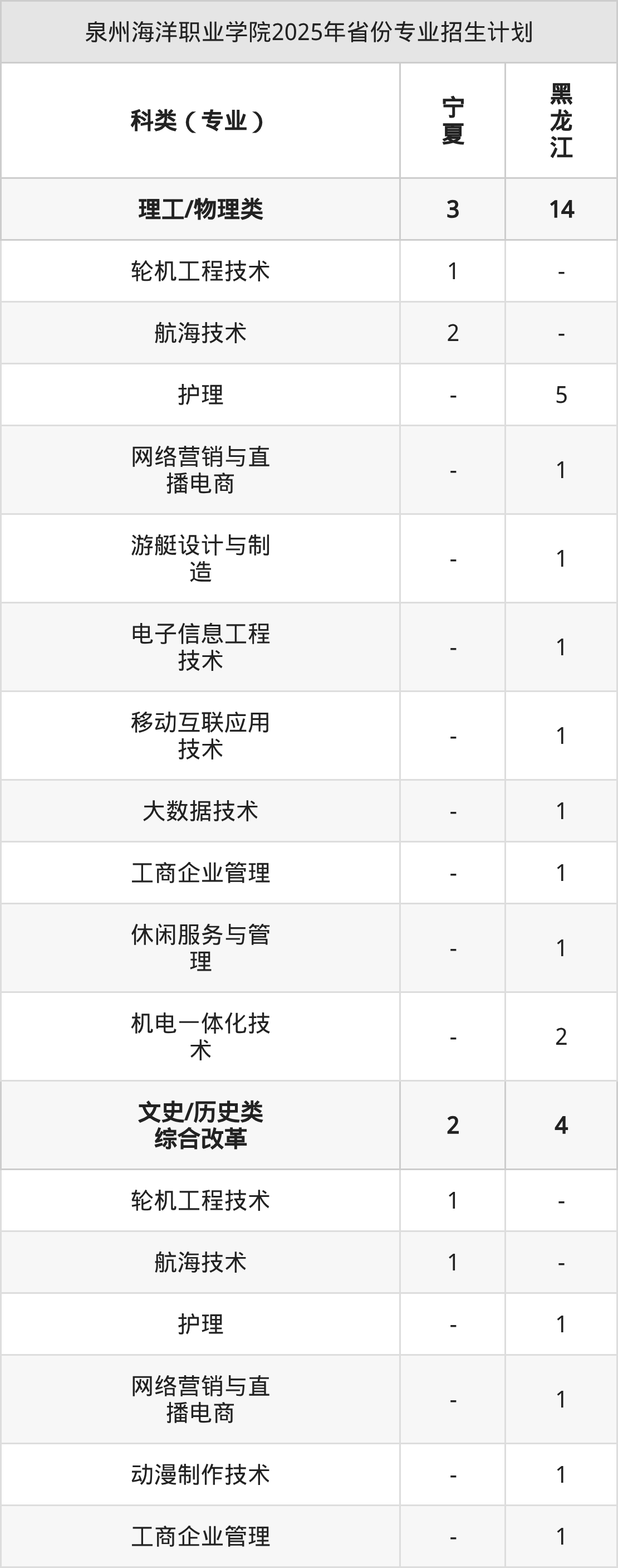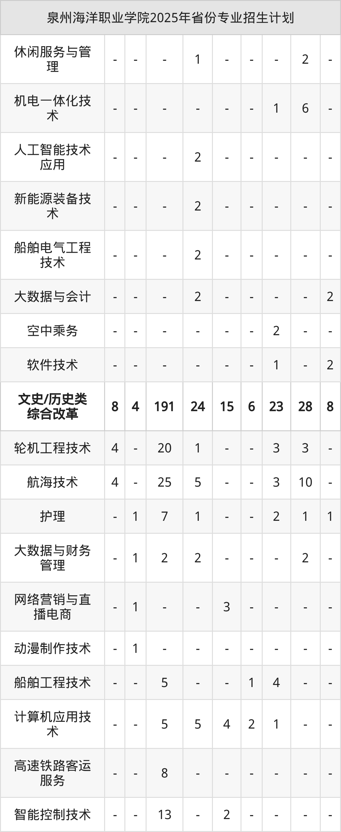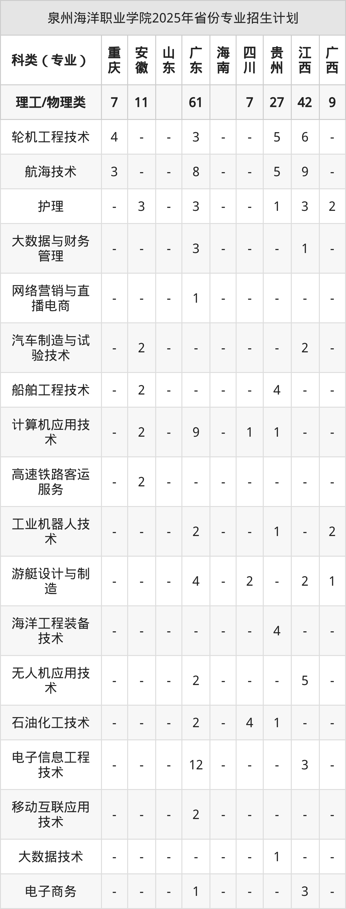 2026年泉州海洋职业学院专科招生计划待公布,下面附上2025年数据,暂供参考: