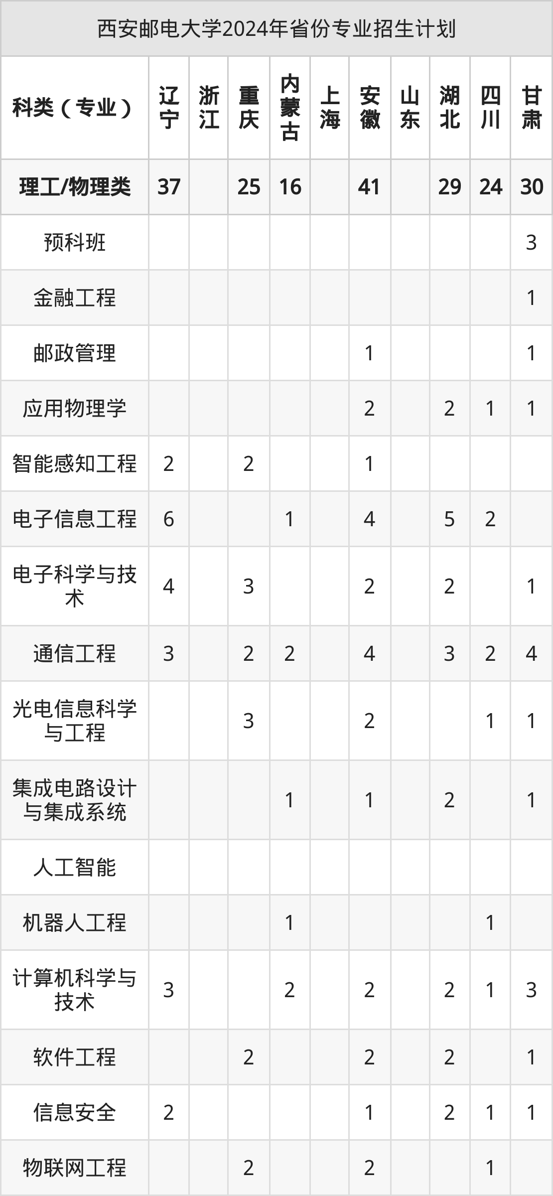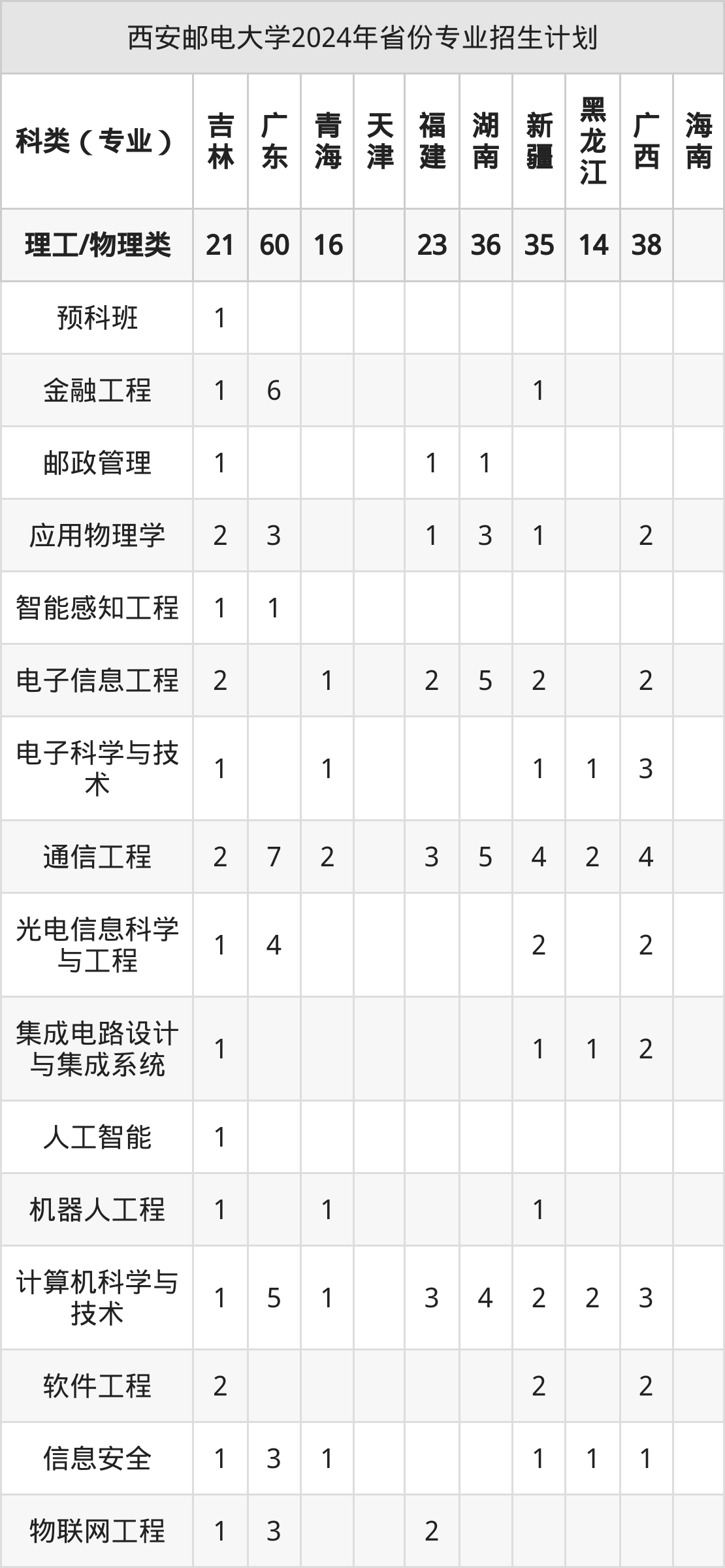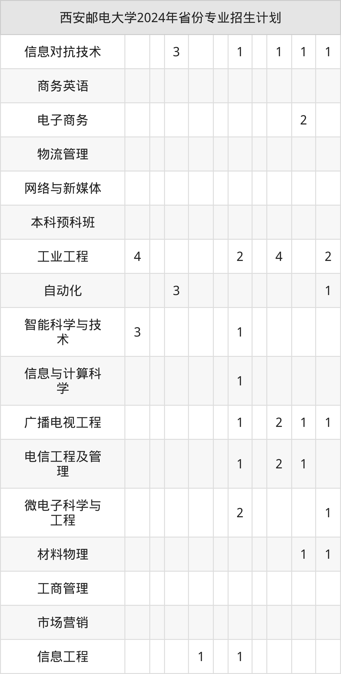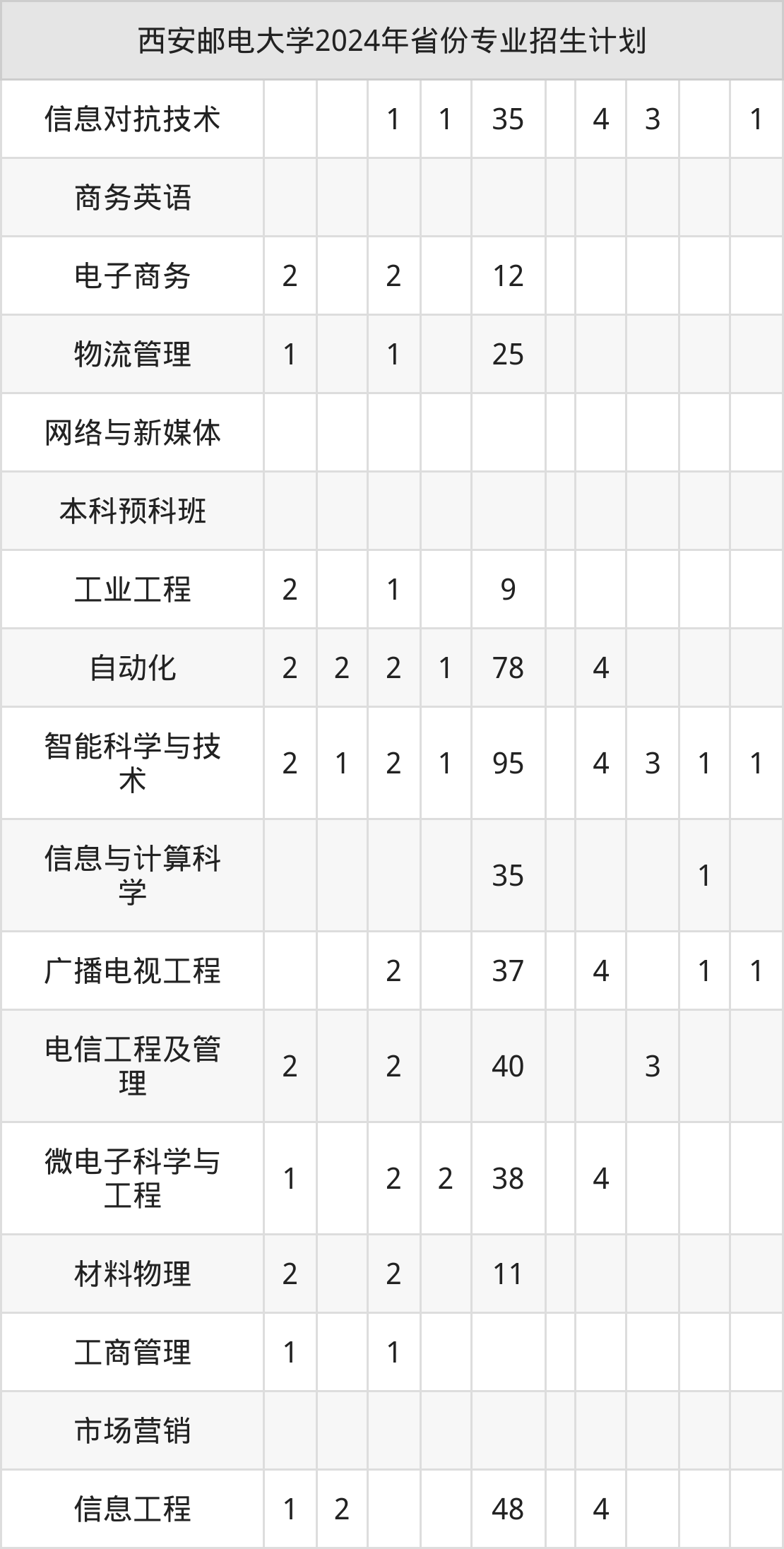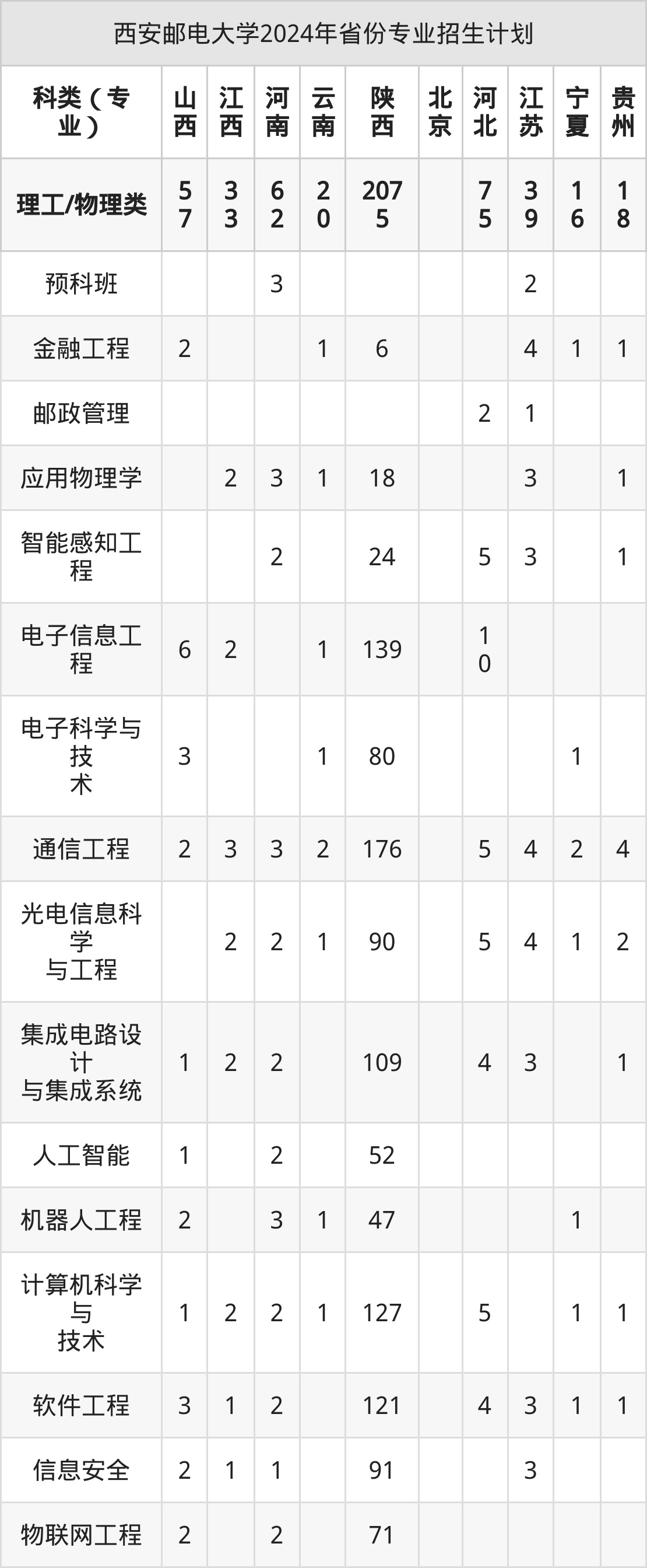2025年西安邮电大学本科招生计划待公布,下面附上2024年数据,暂供参考: