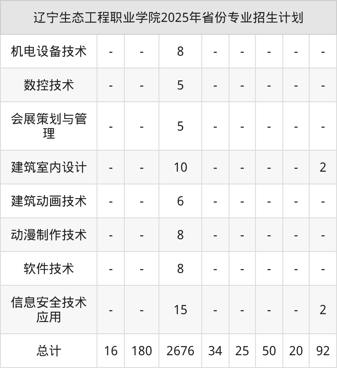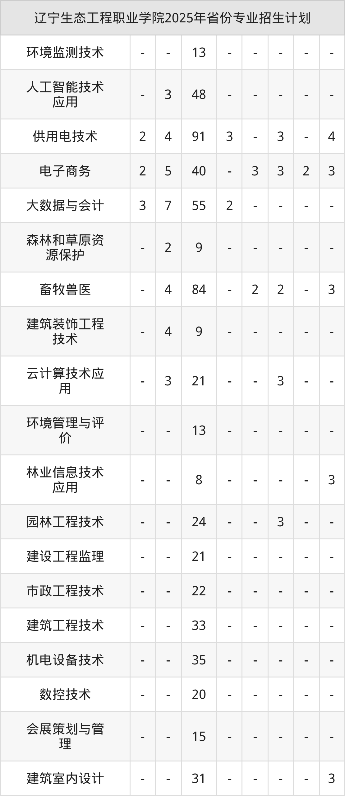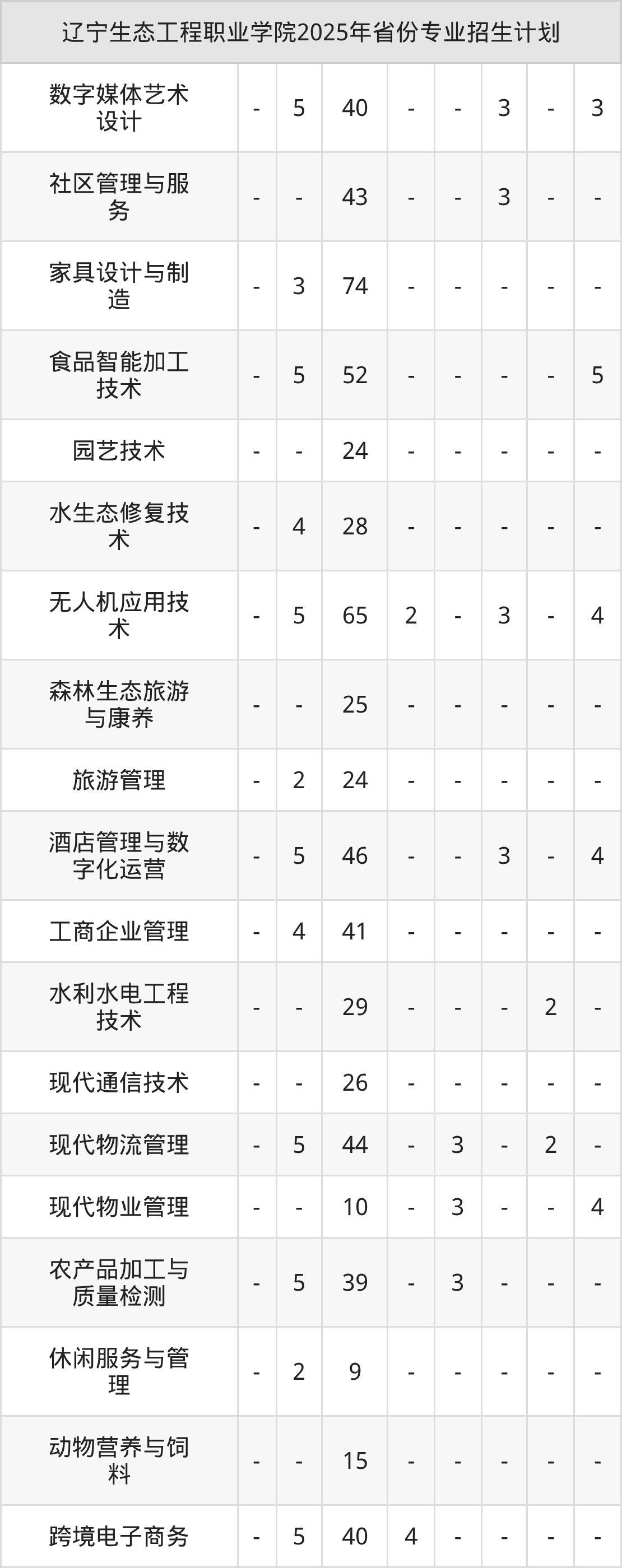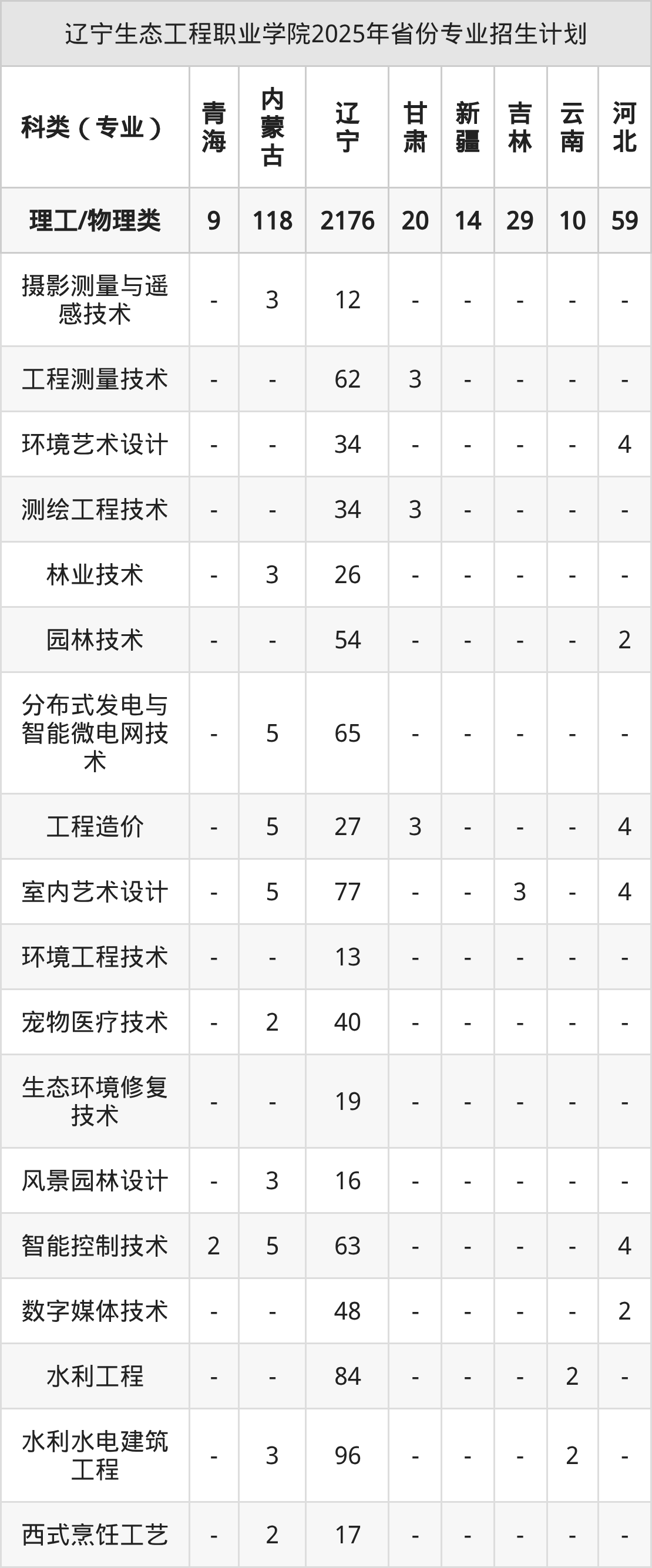 2026年辽宁生态工程职业学院专科招生计划待公布,下面附上2025年数据,暂供参考: