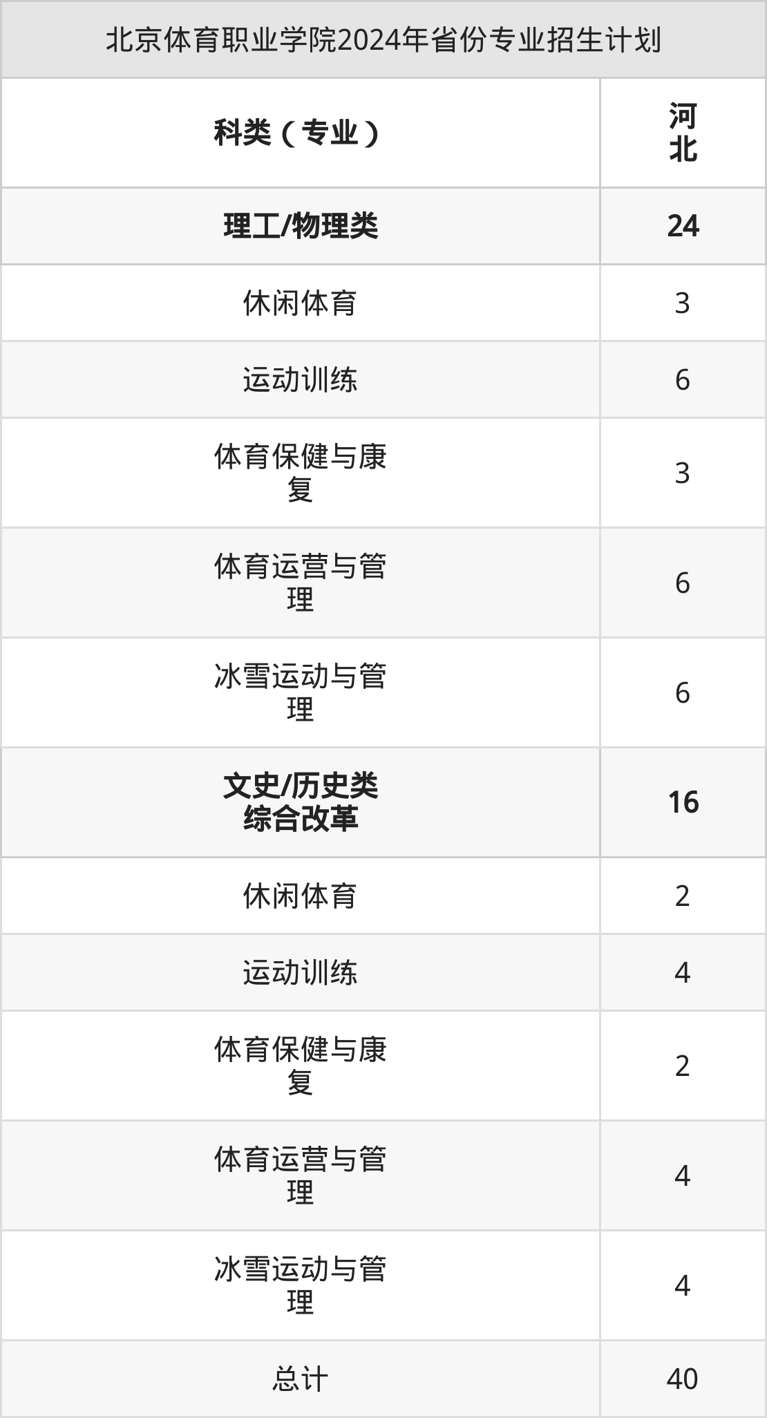 2025年北京体育职业学院专科招生计划待公布,下面附上2024年数据,暂供参考: