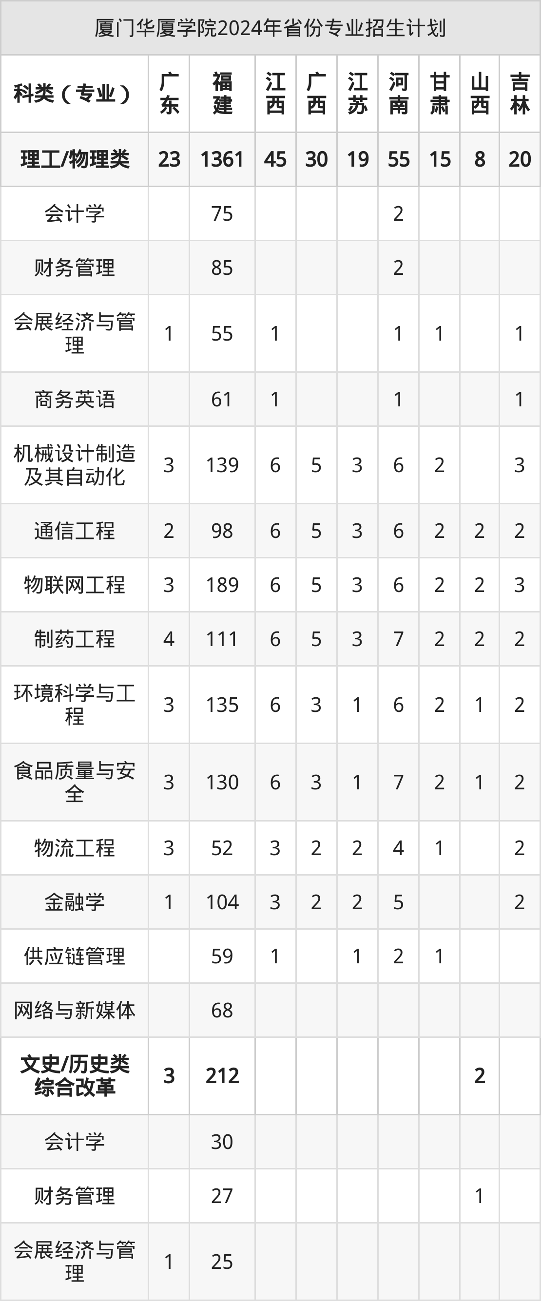 2025年厦门华厦学院本科招生计划待公布,下面附上2024年数据,暂供参考: