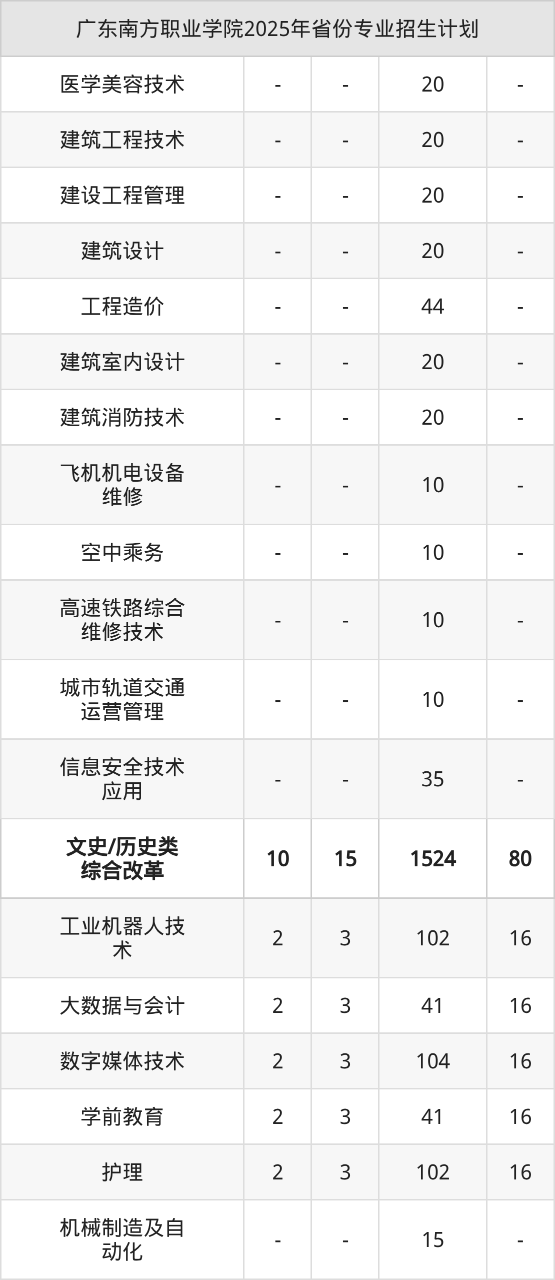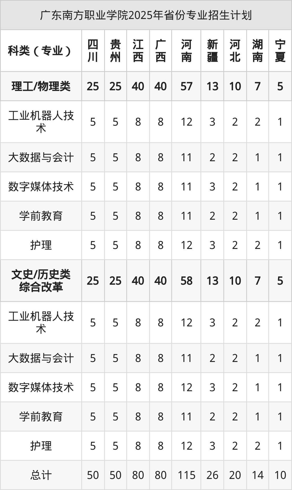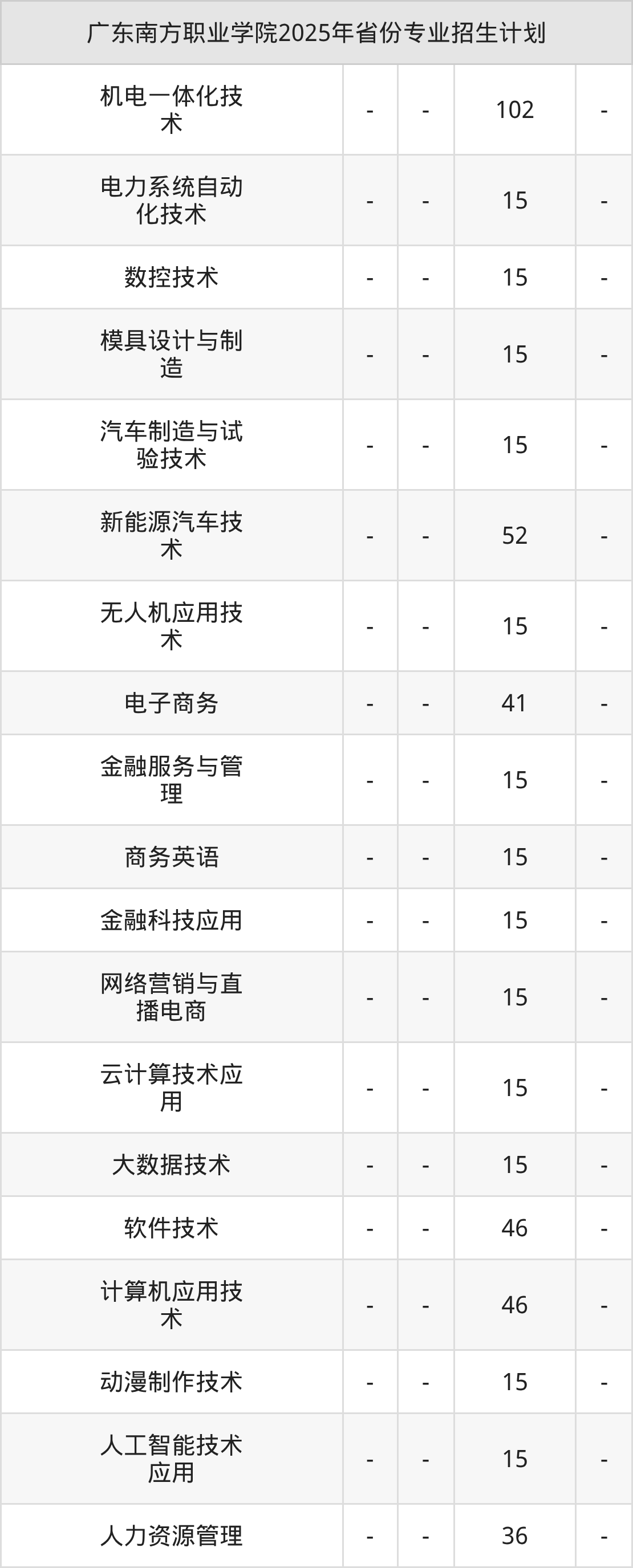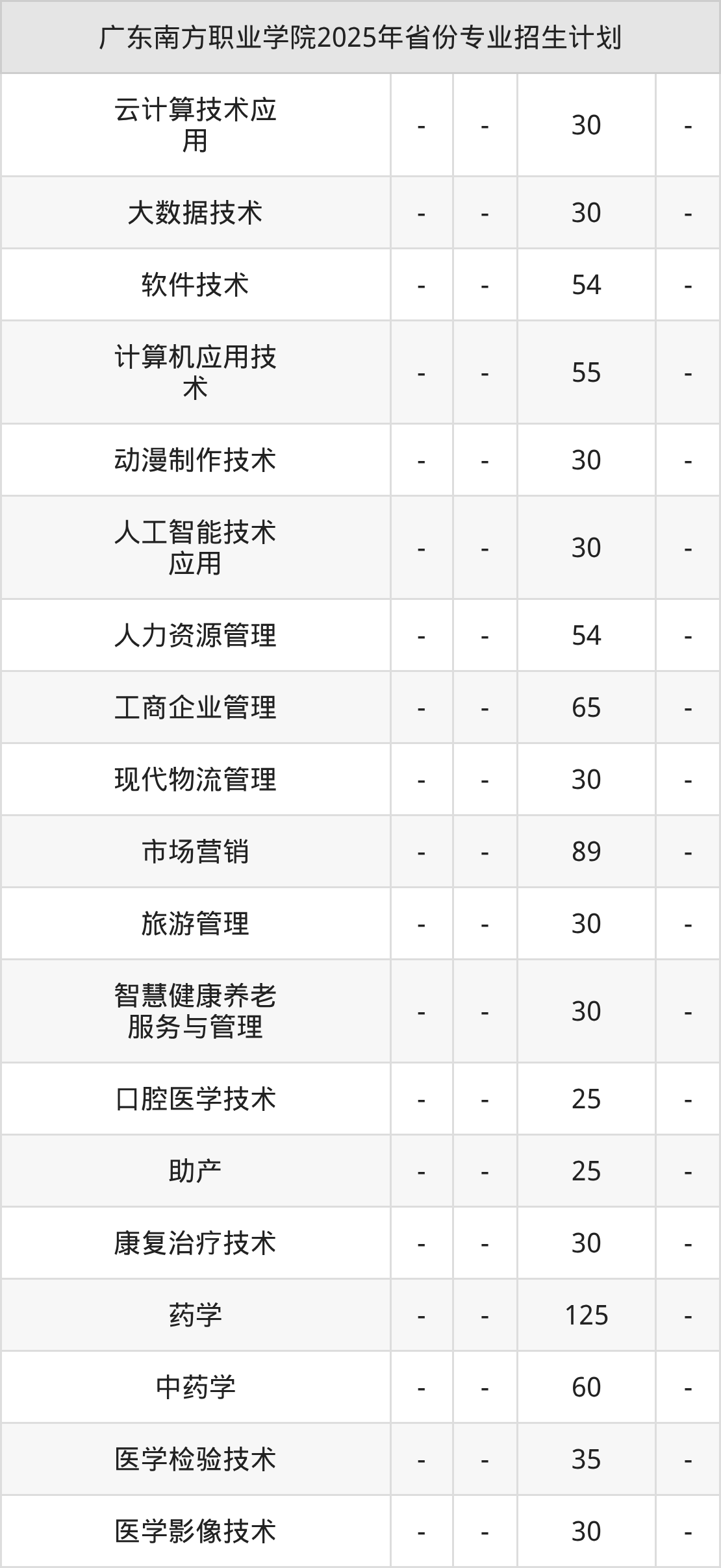 2026年广东南方职业学院专科招生计划待公布,下面附上2025年数据,暂供参考: