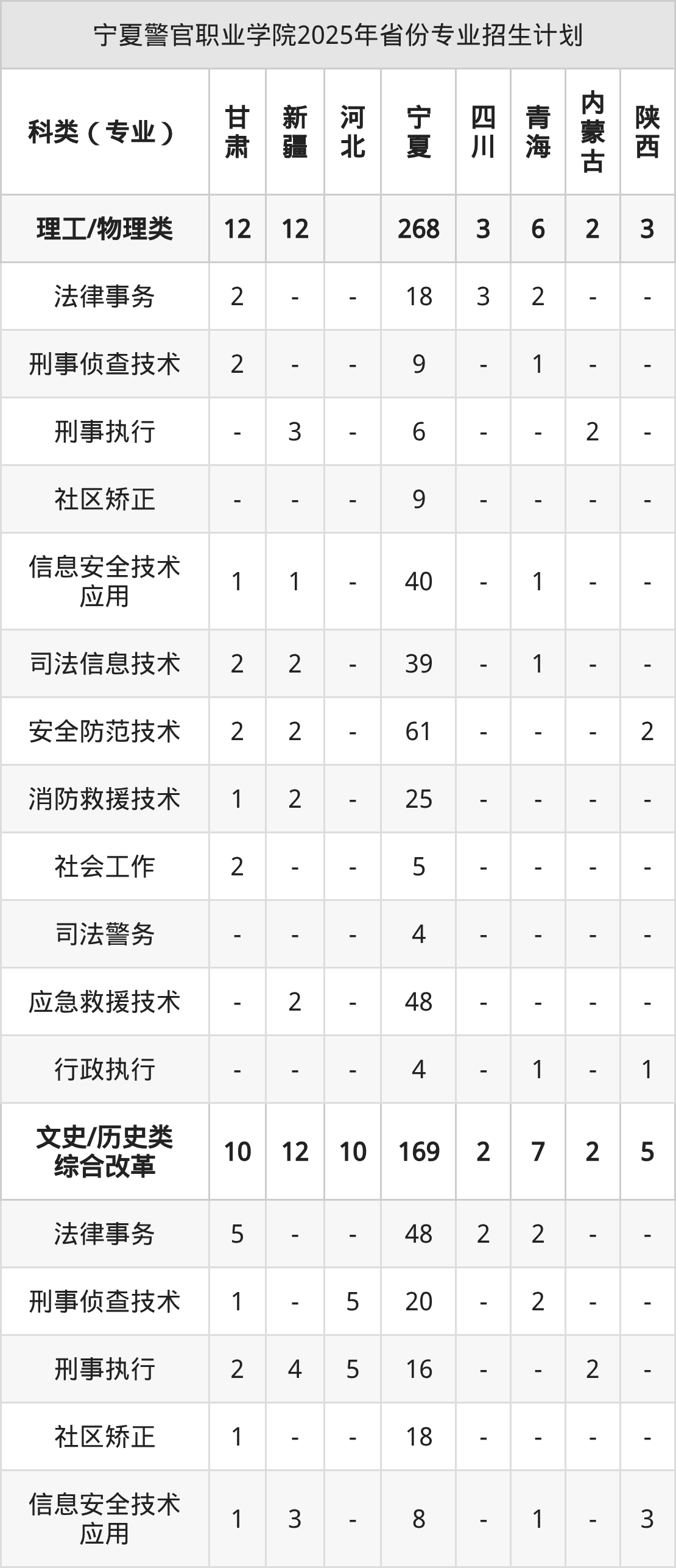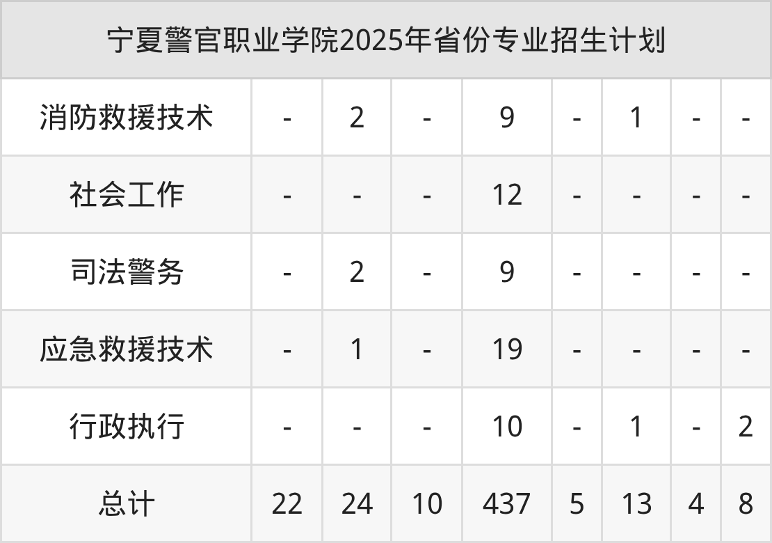2026年宁夏警官职业学院专科招生计划待公布,下面附上2025年数据,暂供参考: