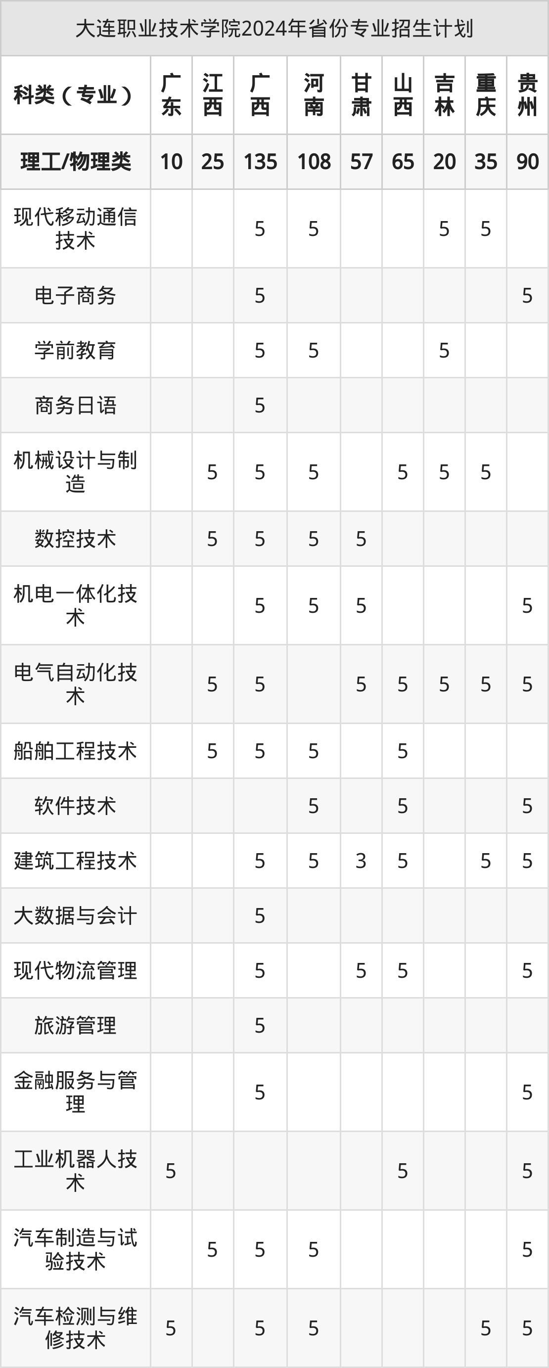 2025年大连职业技术学院专科招生计划待公布,下面附上2024年数据,暂供参考: