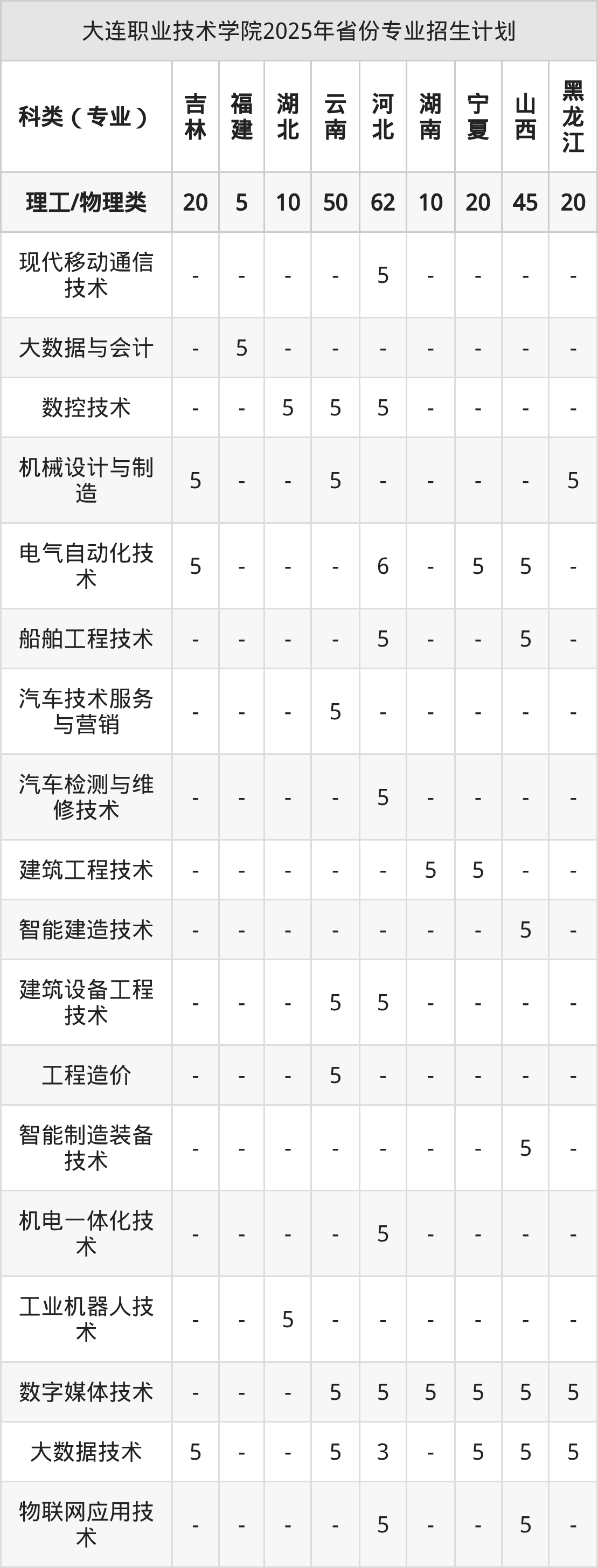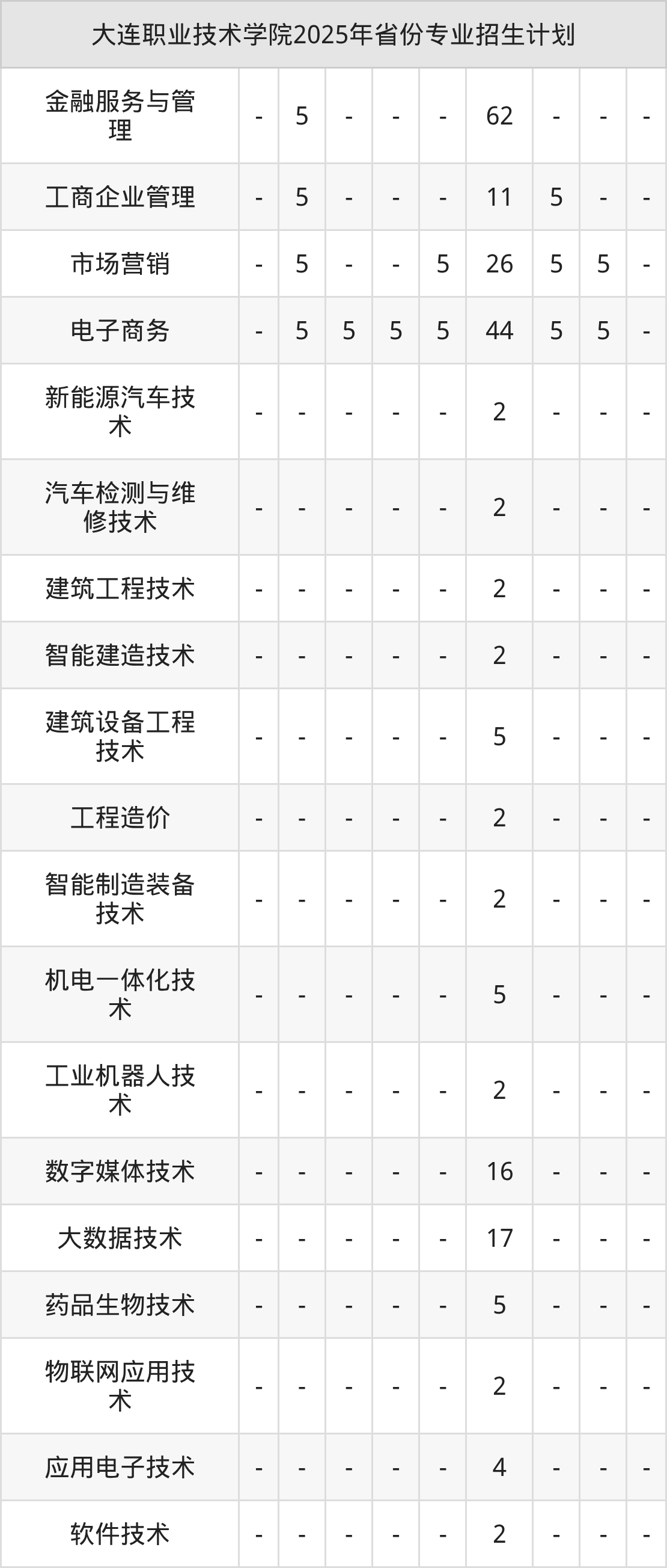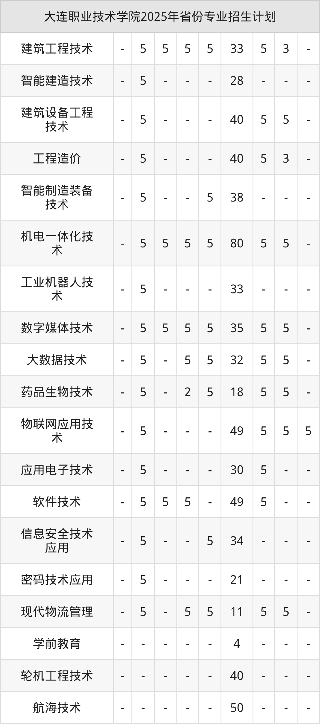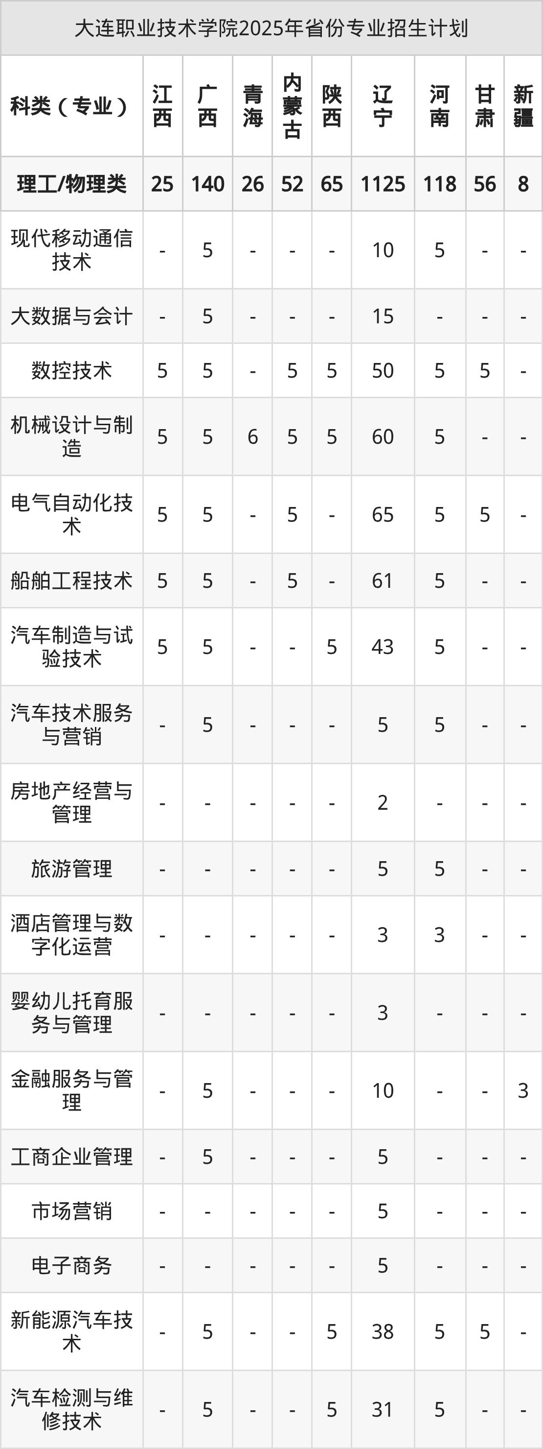 2026年大连职业技术学院专科招生计划待公布,下面附上2025年数据,暂供参考: