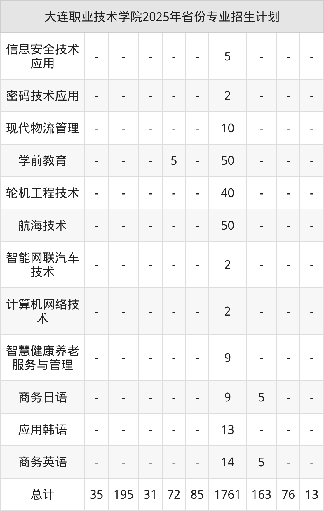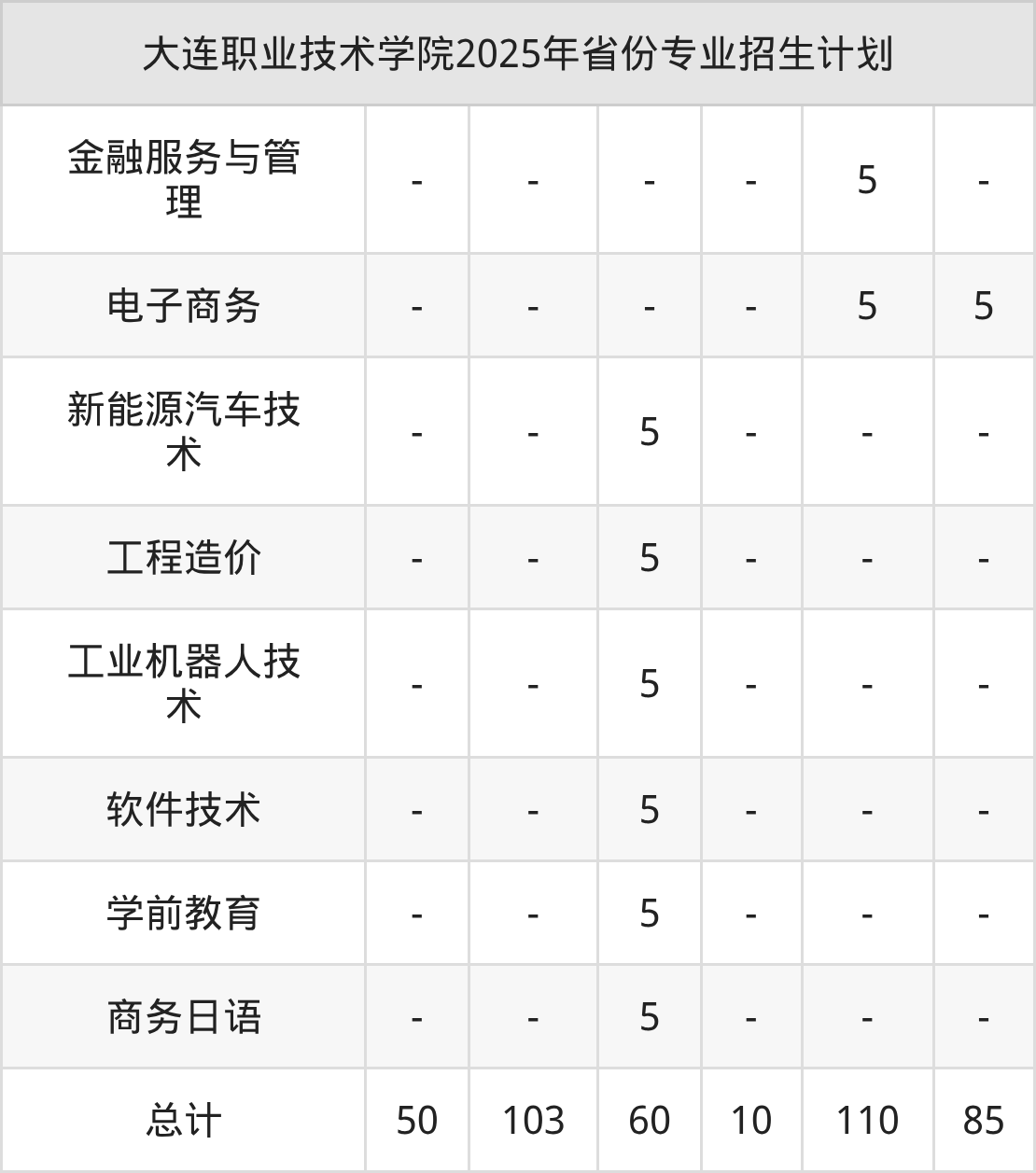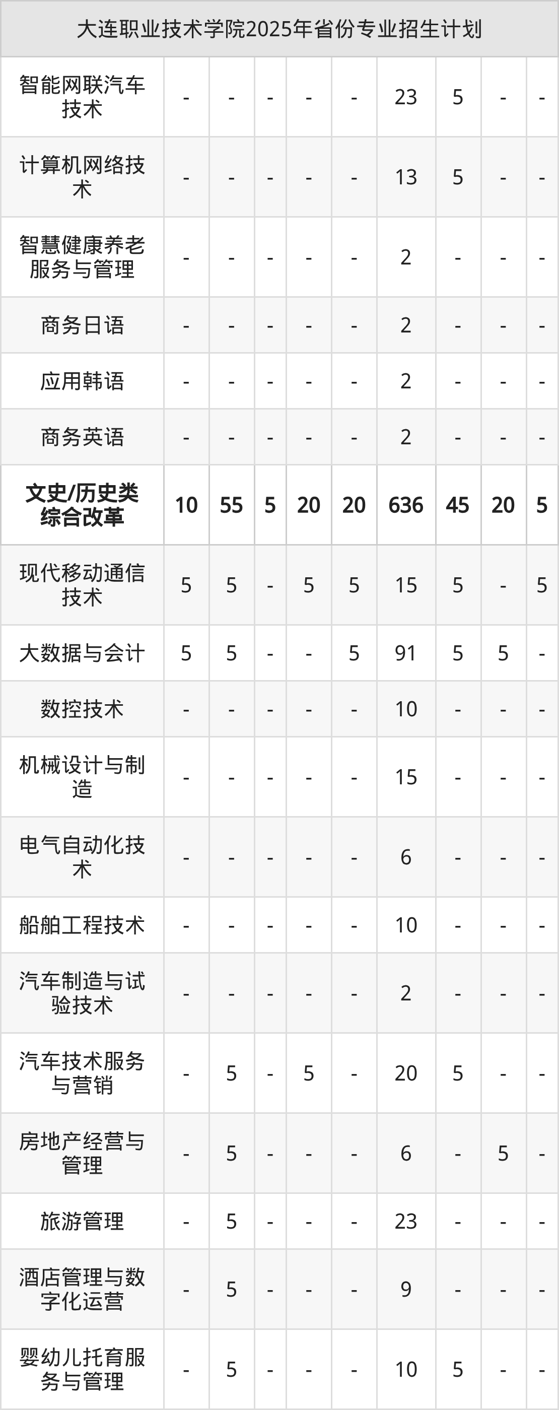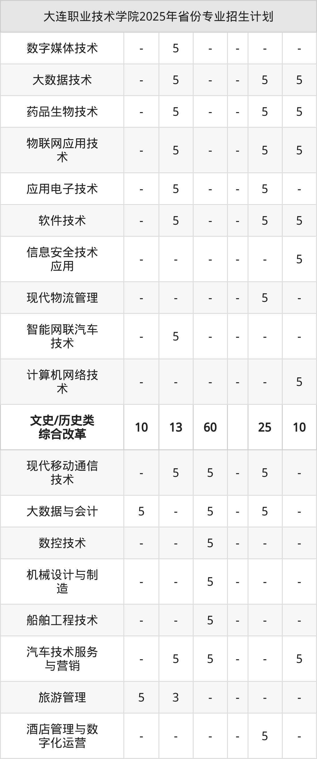 2026年大连职业技术学院专科招生计划待公布,下面附上2025年数据,暂供参考: