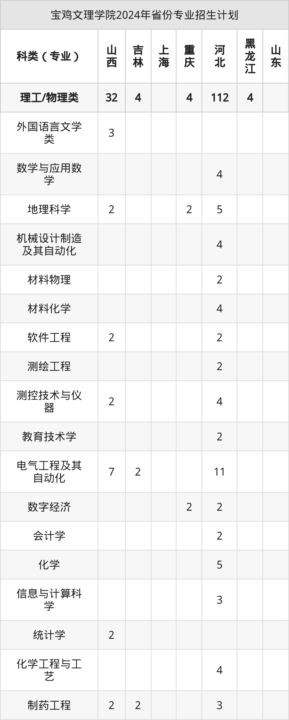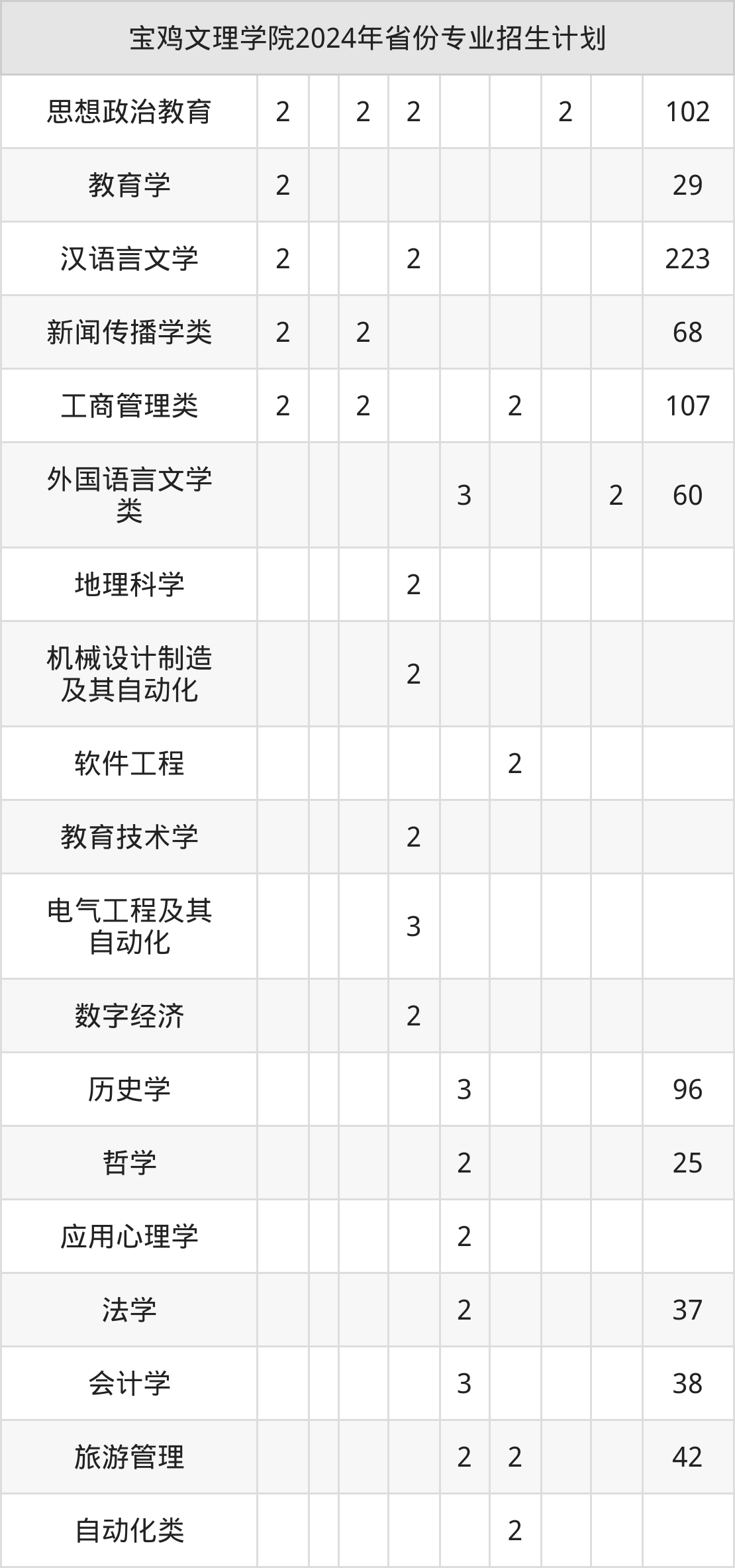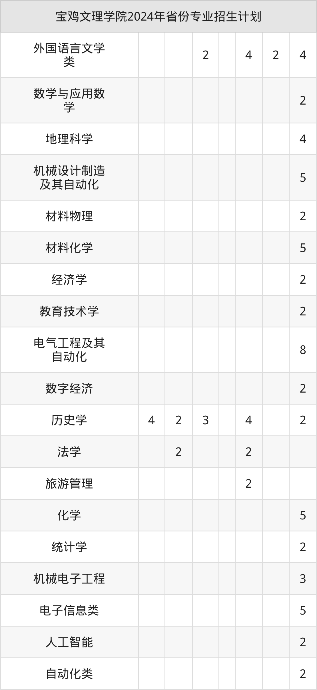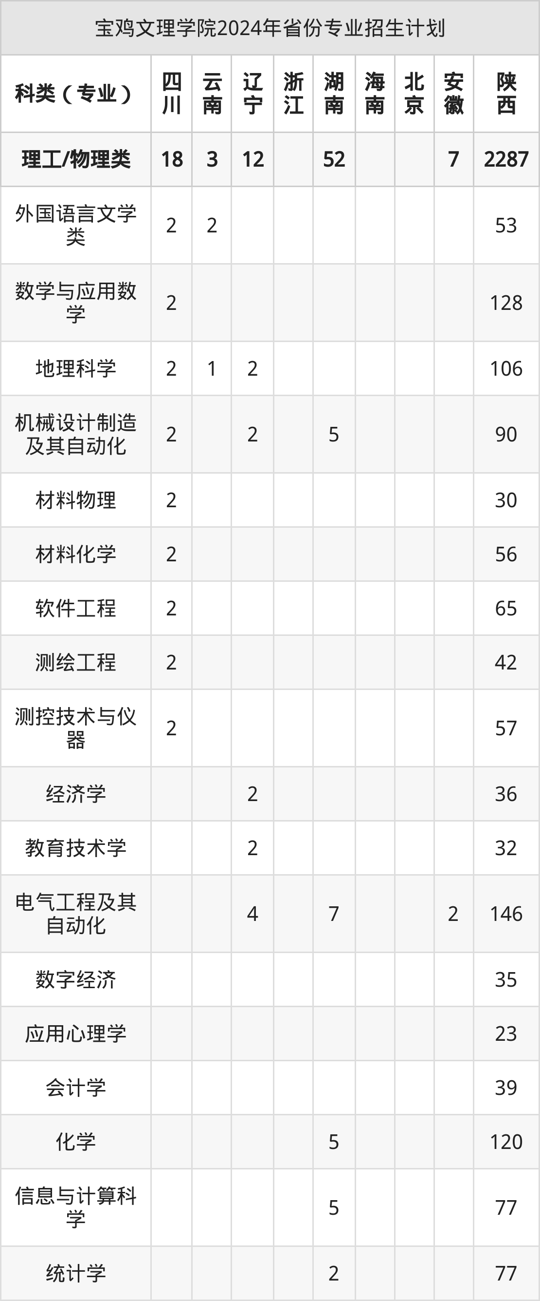 2025年宝鸡文理学院本科招生计划待公布,下面附上2024年数据,暂供参考: