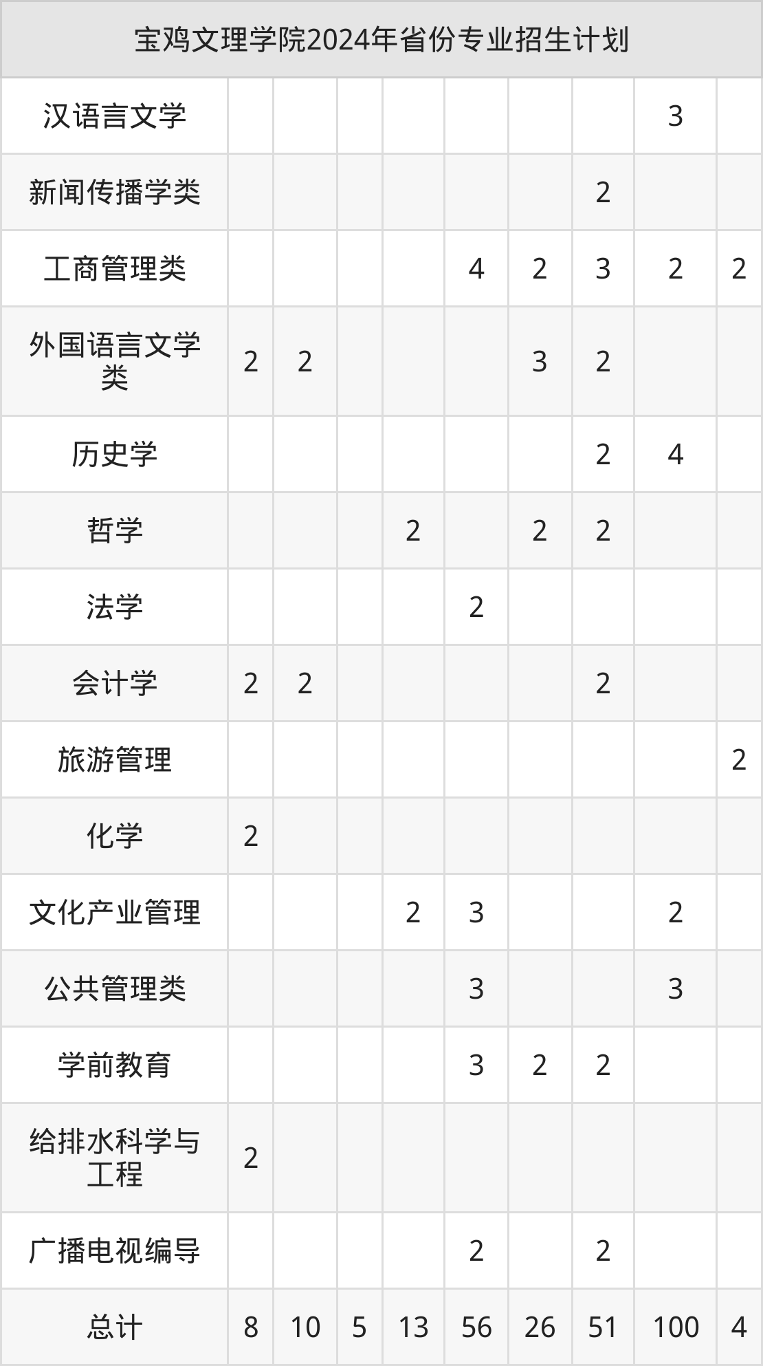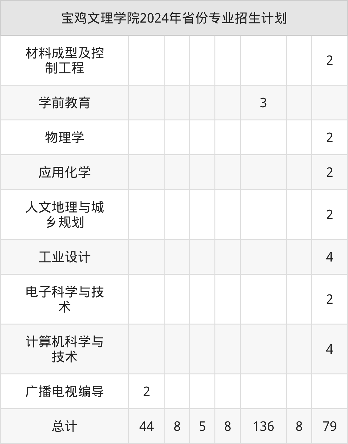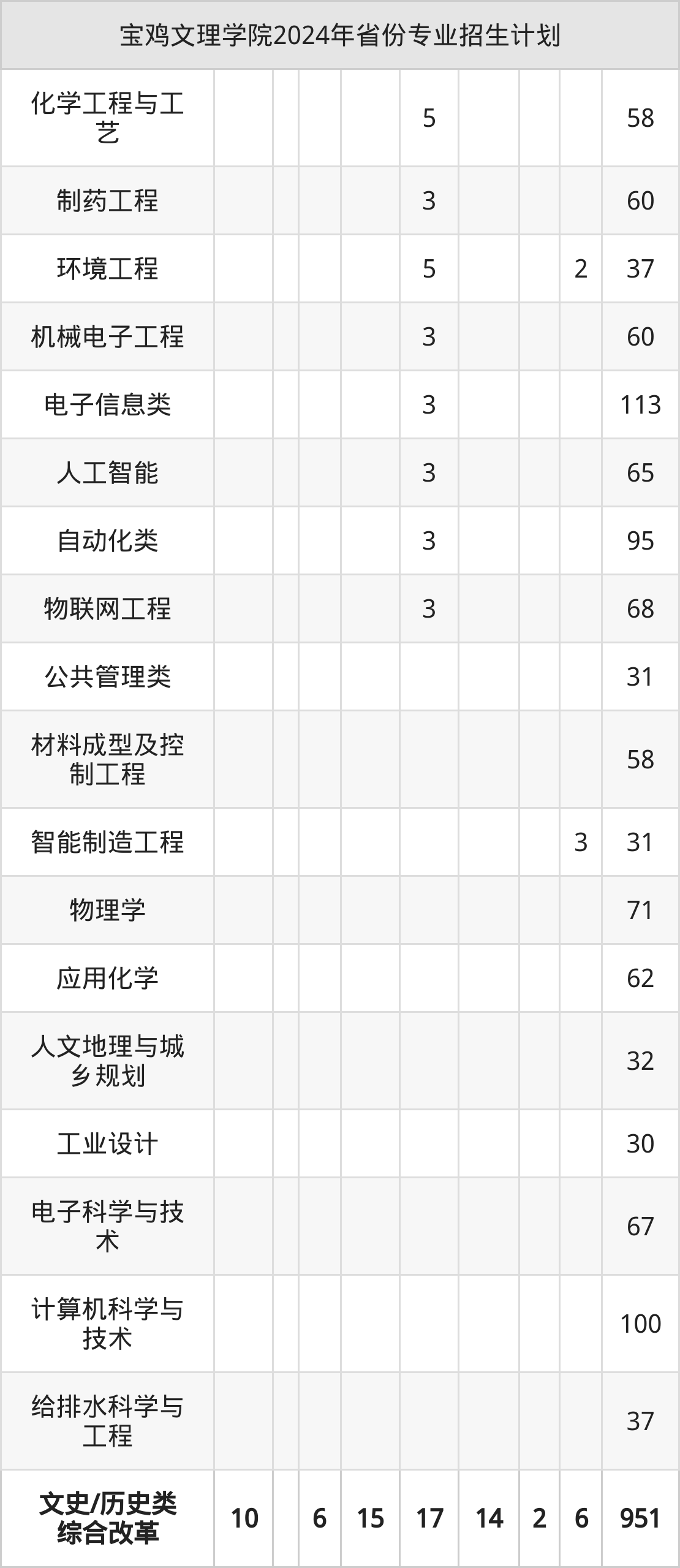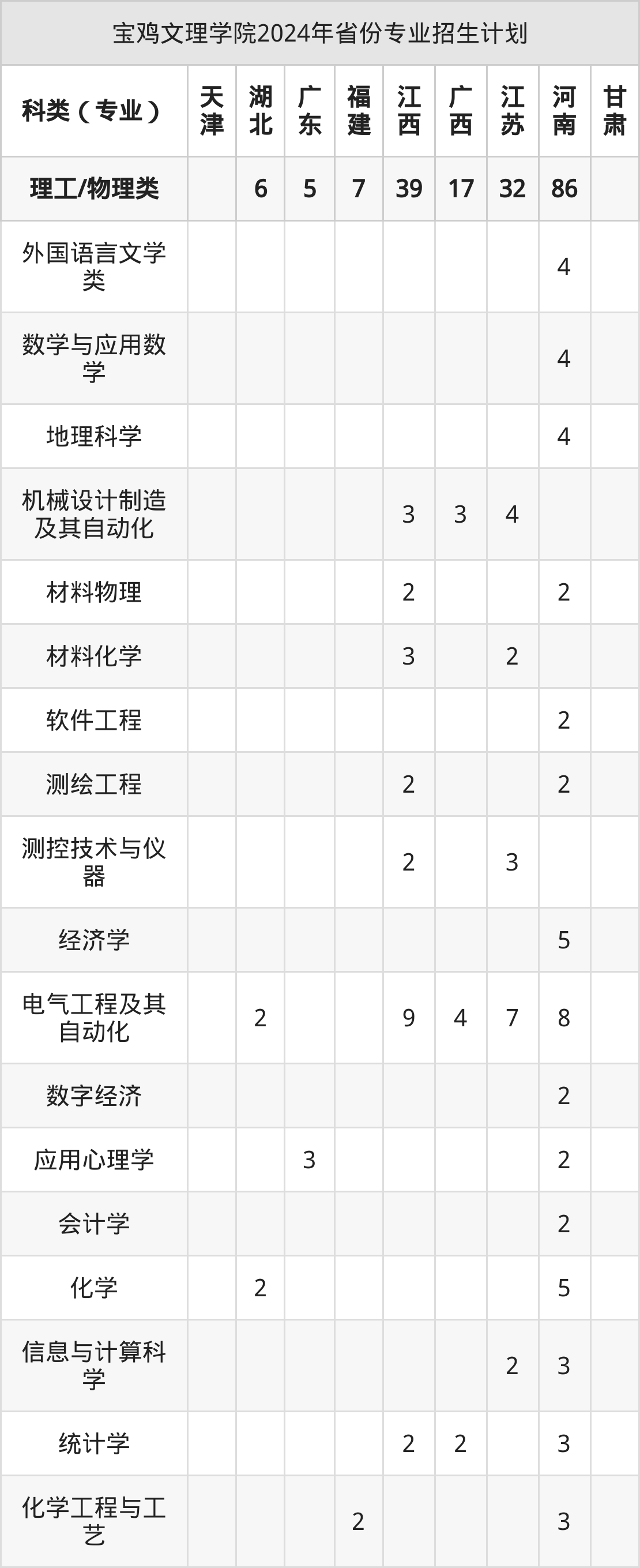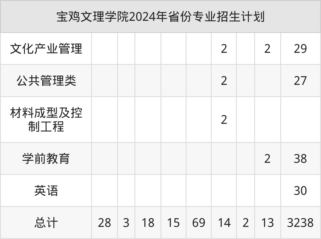 2025年宝鸡文理学院本科招生计划待公布,下面附上2024年数据,暂供参考: