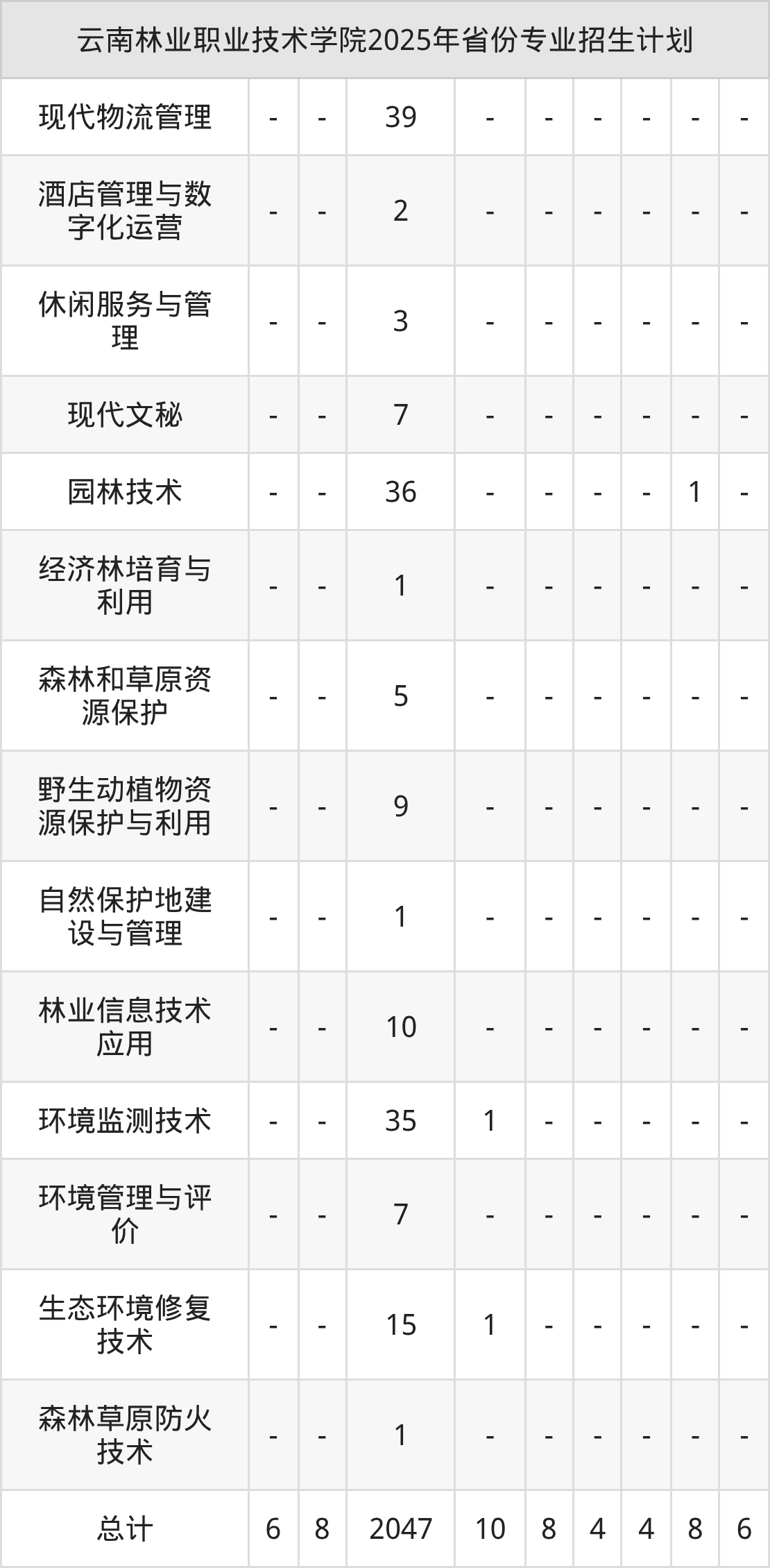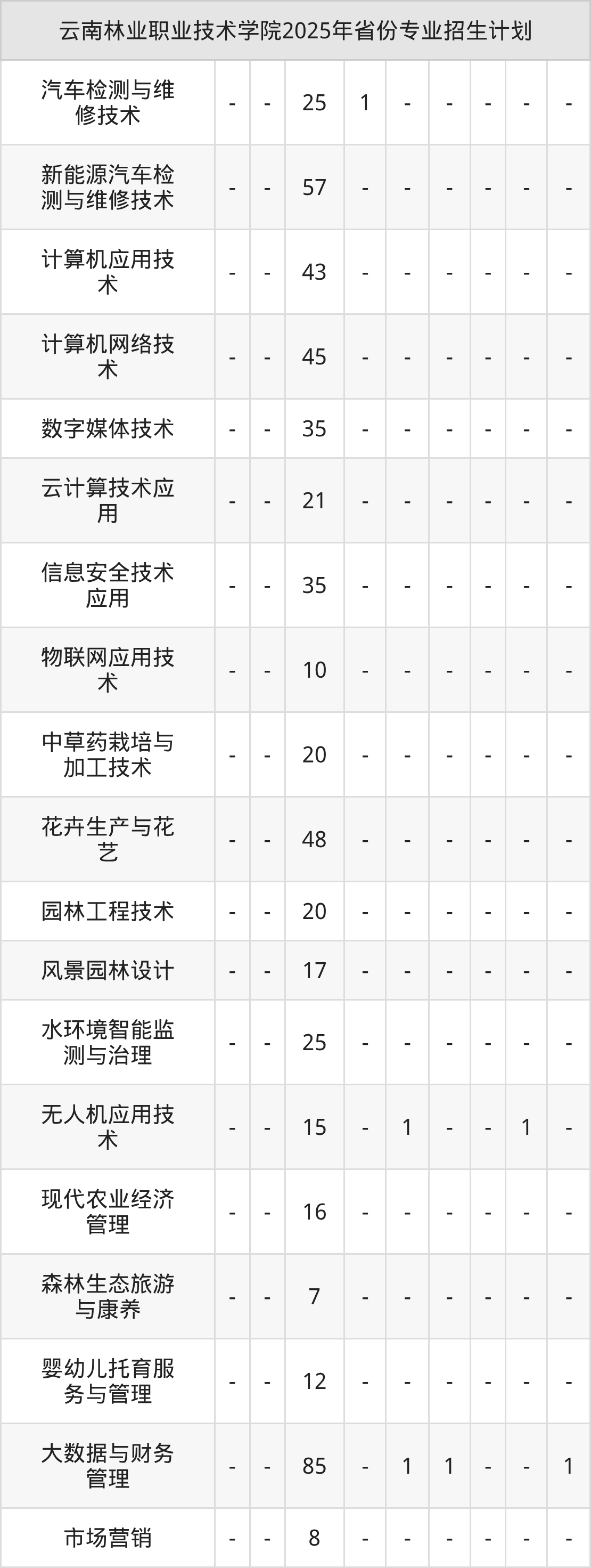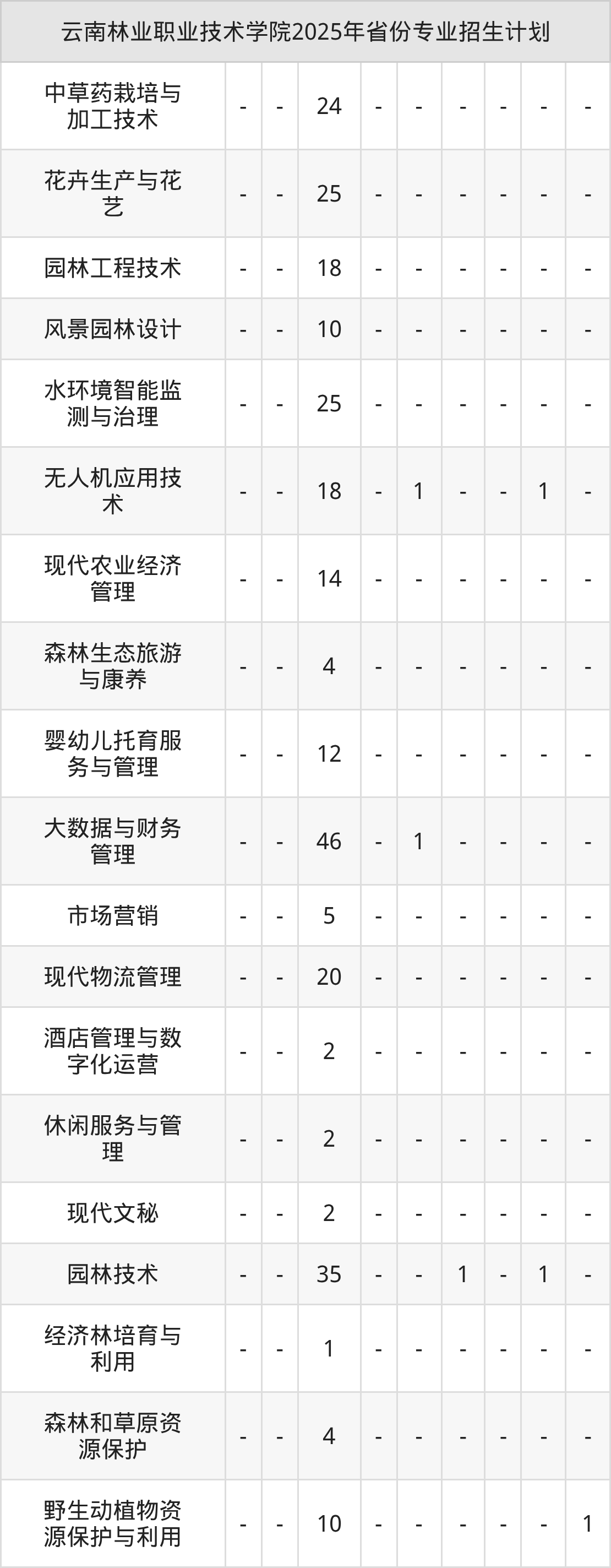 2026年云南林业职业技术学院专科招生计划待公布,下面附上2025年数据,暂供参考: