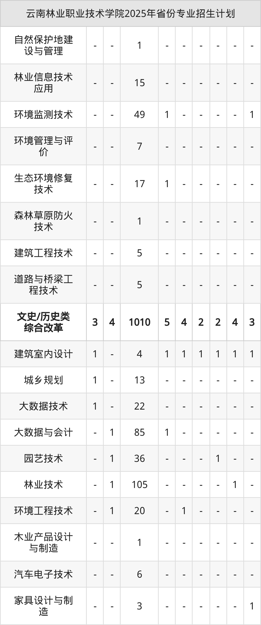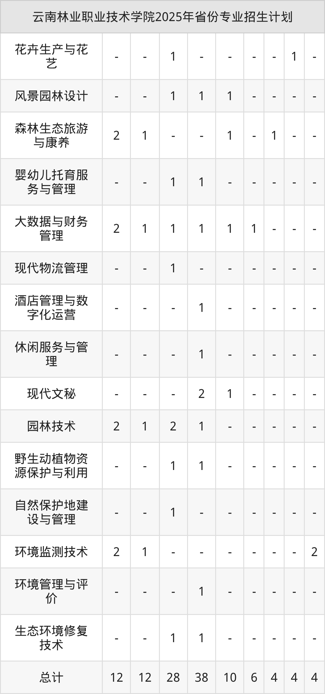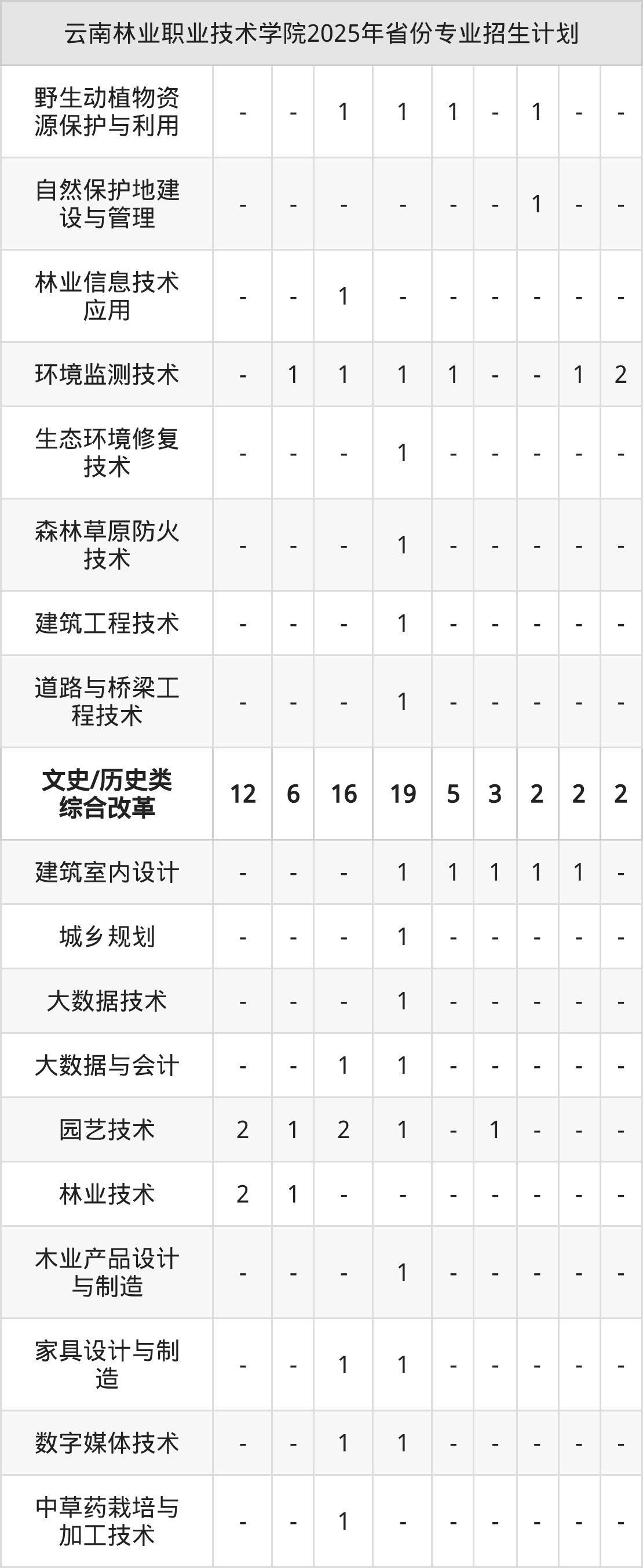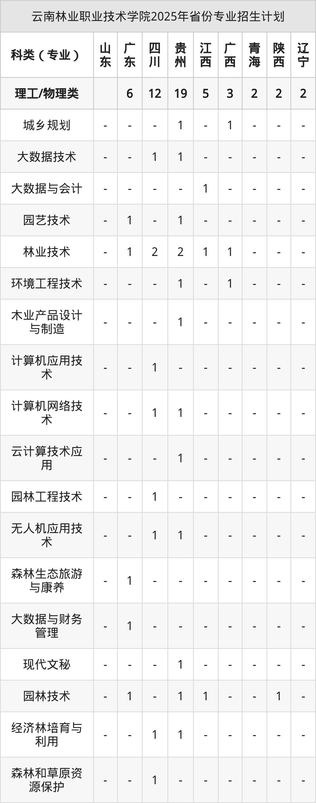 2026年云南林业职业技术学院专科招生计划待公布,下面附上2025年数据,暂供参考: