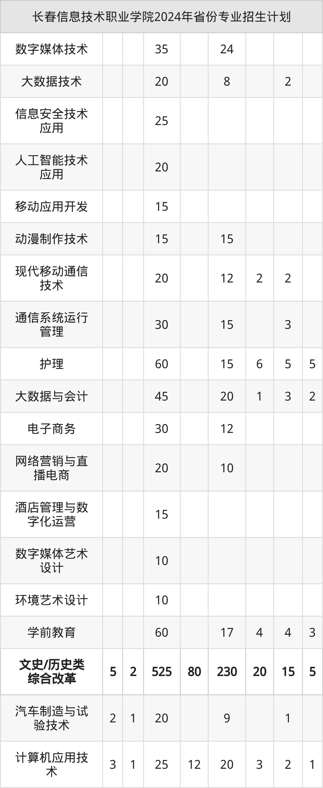 2025年长春信息技术职业学院专科招生计划待公布,下面附上2024年数据,暂供参考: