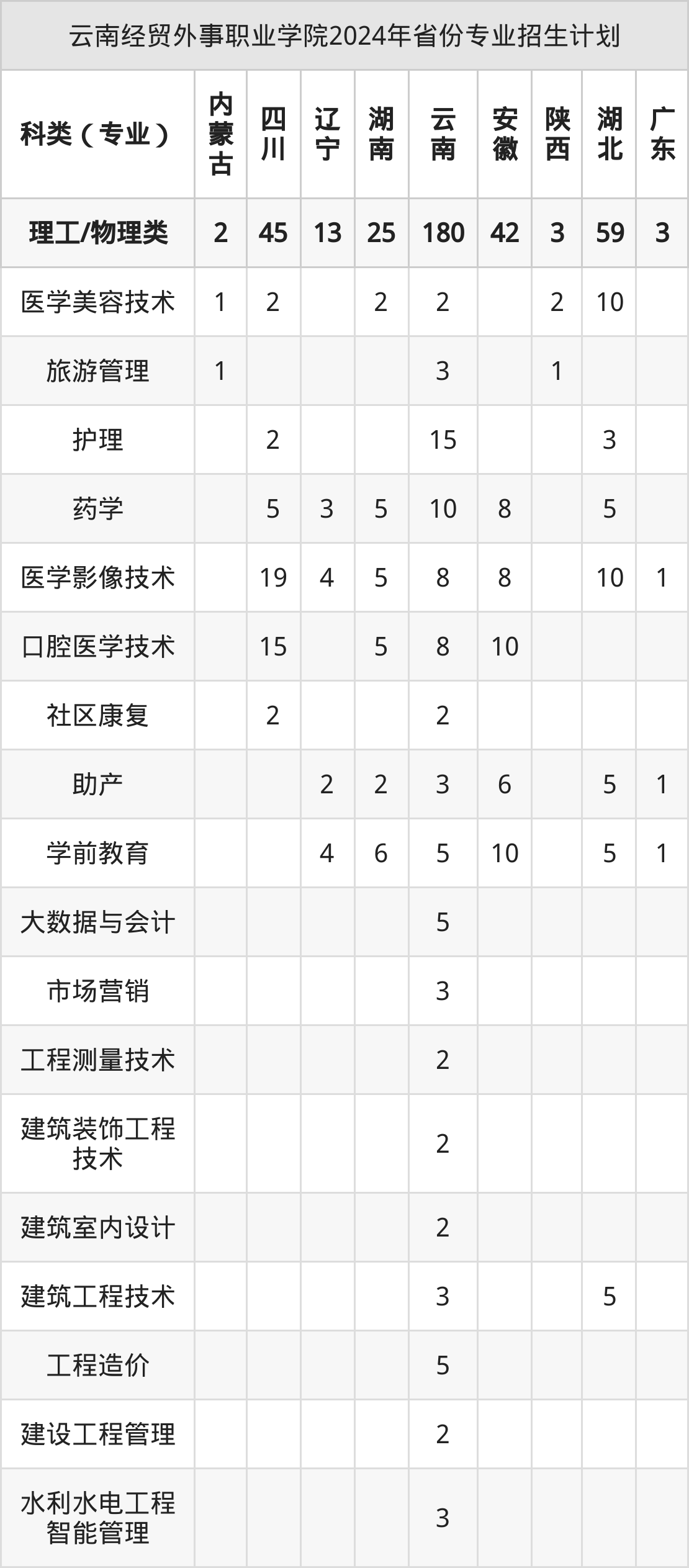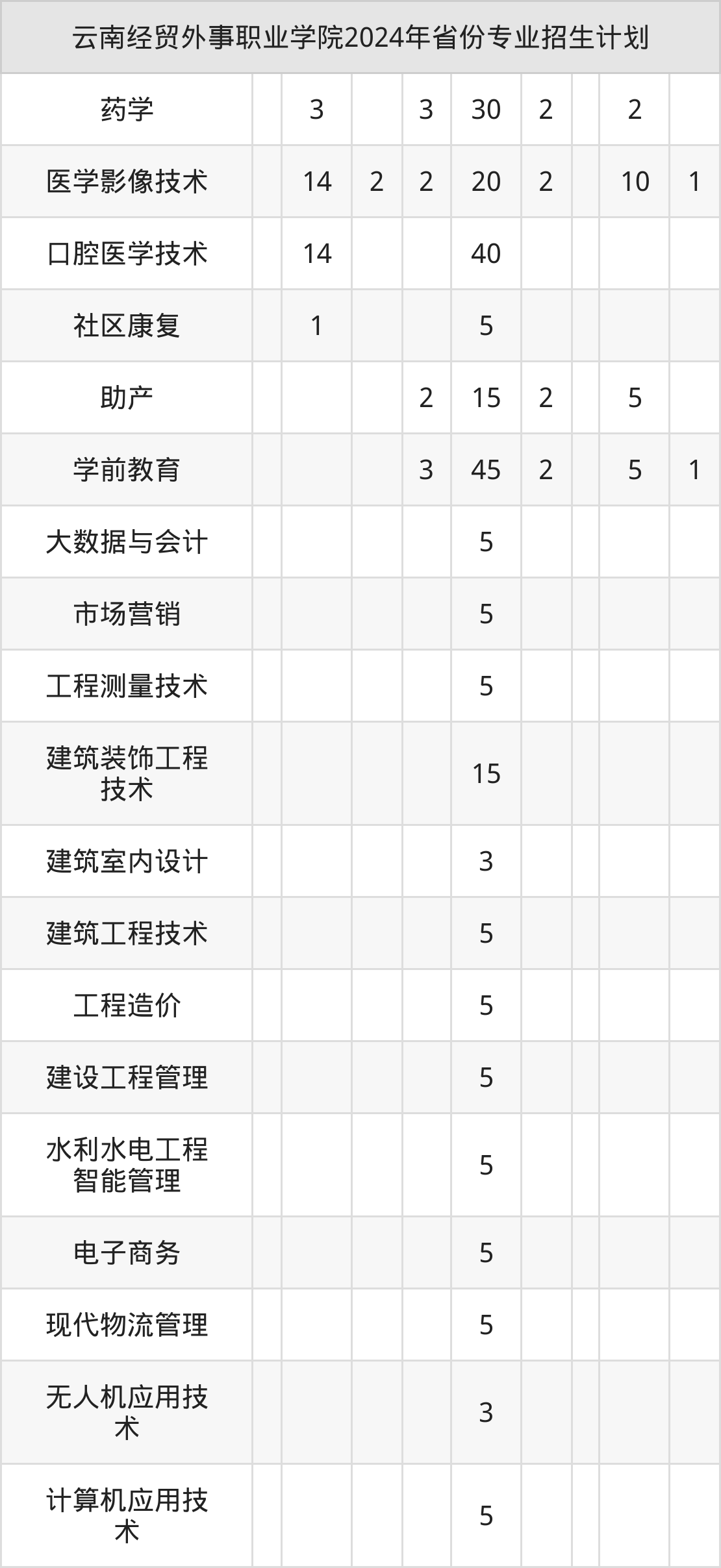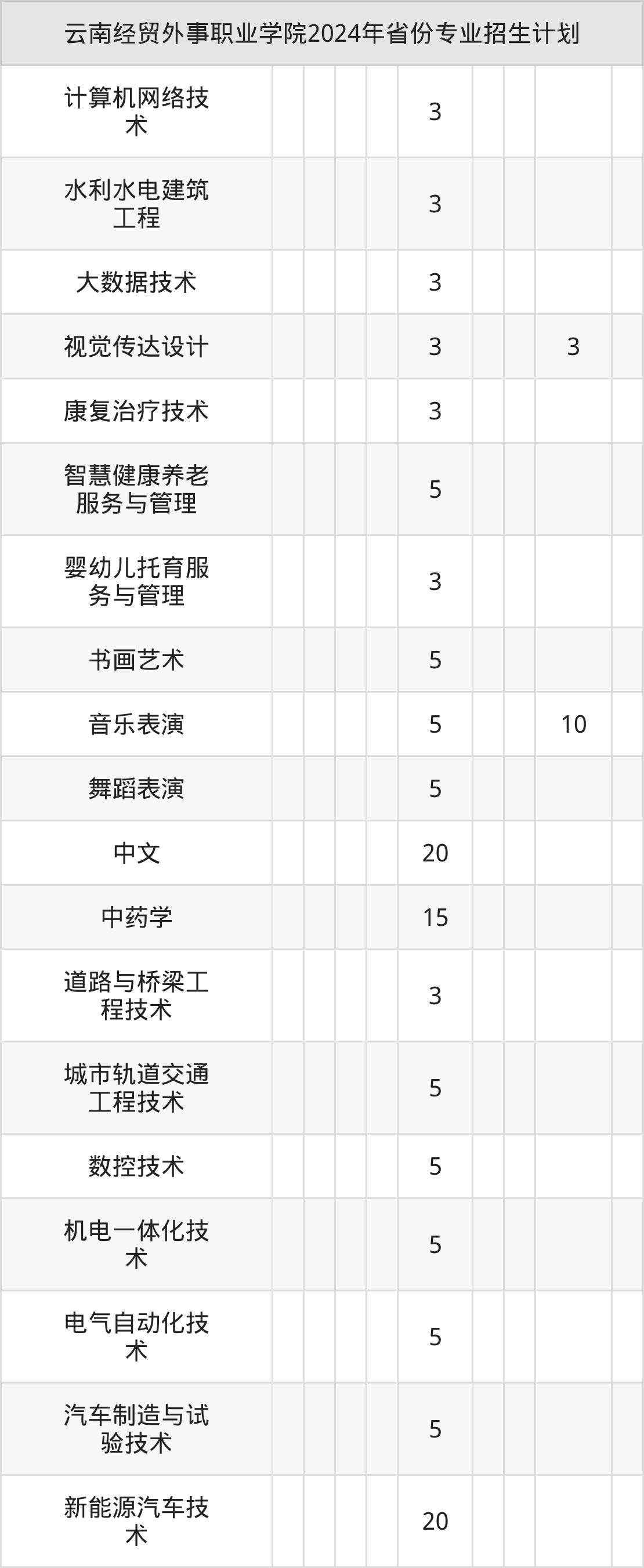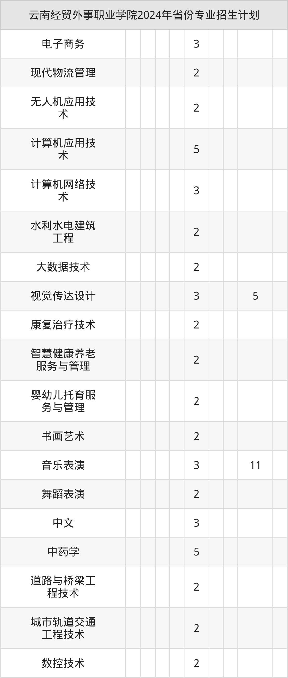 2025年云南经贸外事职业学院专科招生计划待公布,下面附上2024年数据,暂供参考:
