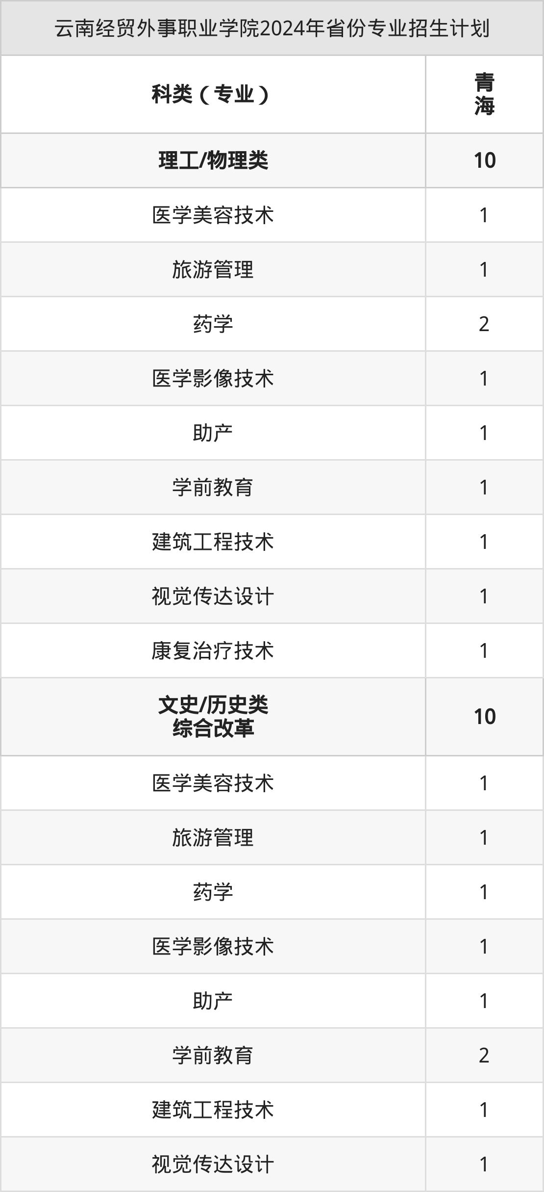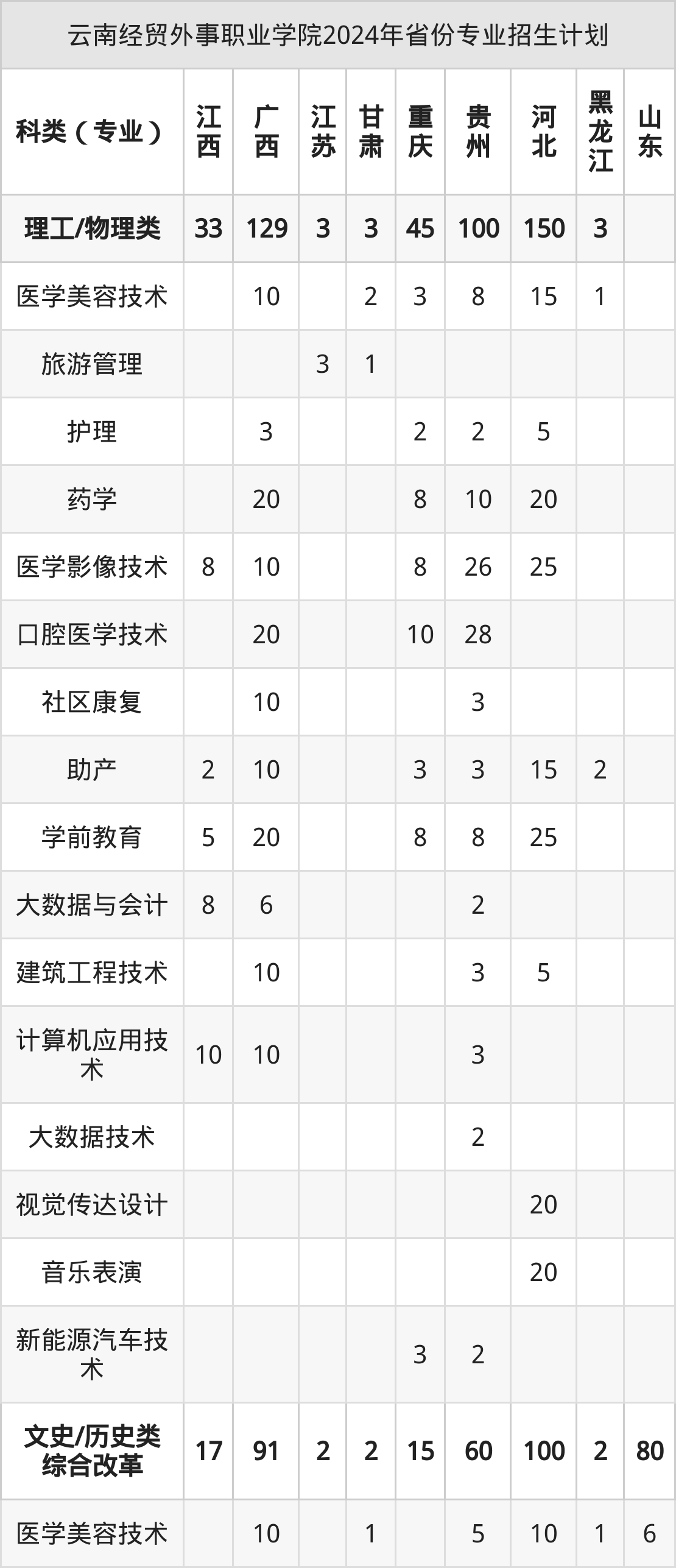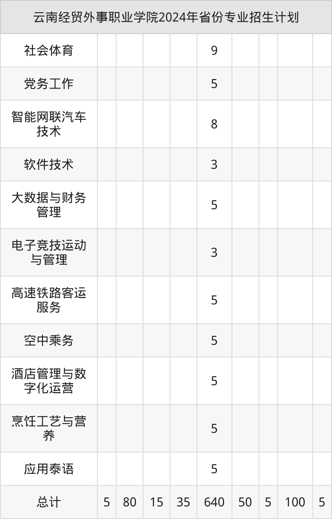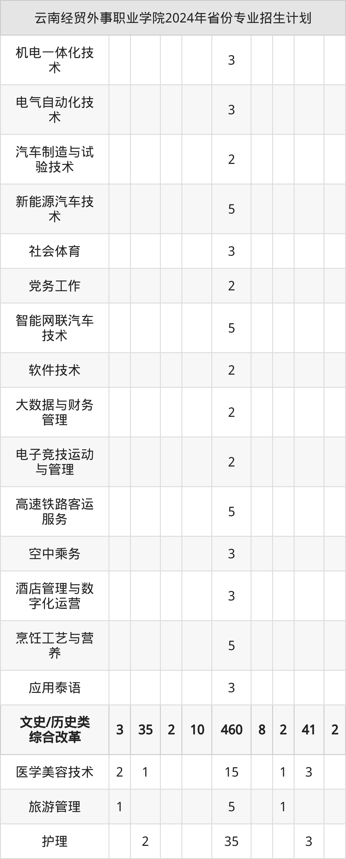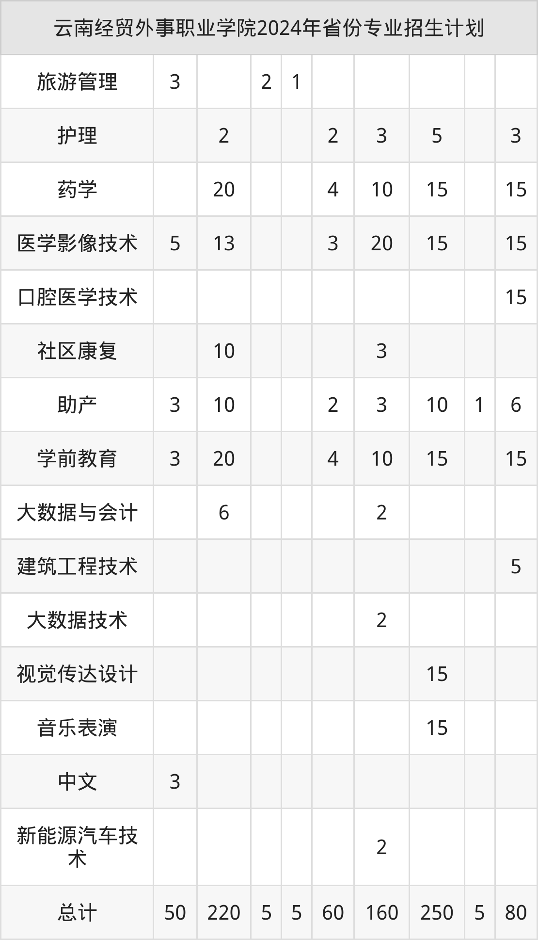 2025年云南经贸外事职业学院专科招生计划待公布,下面附上2024年数据,暂供参考: