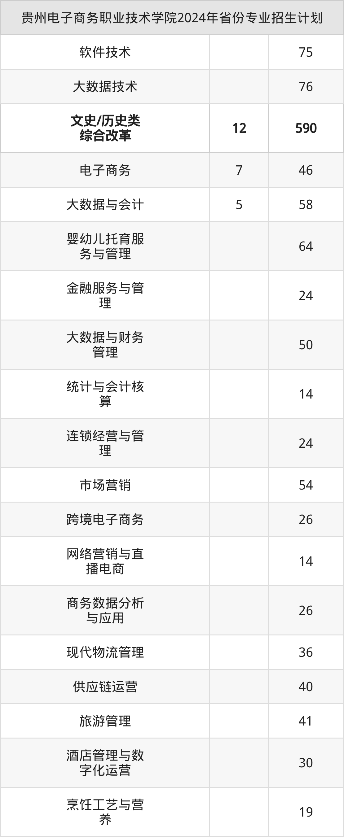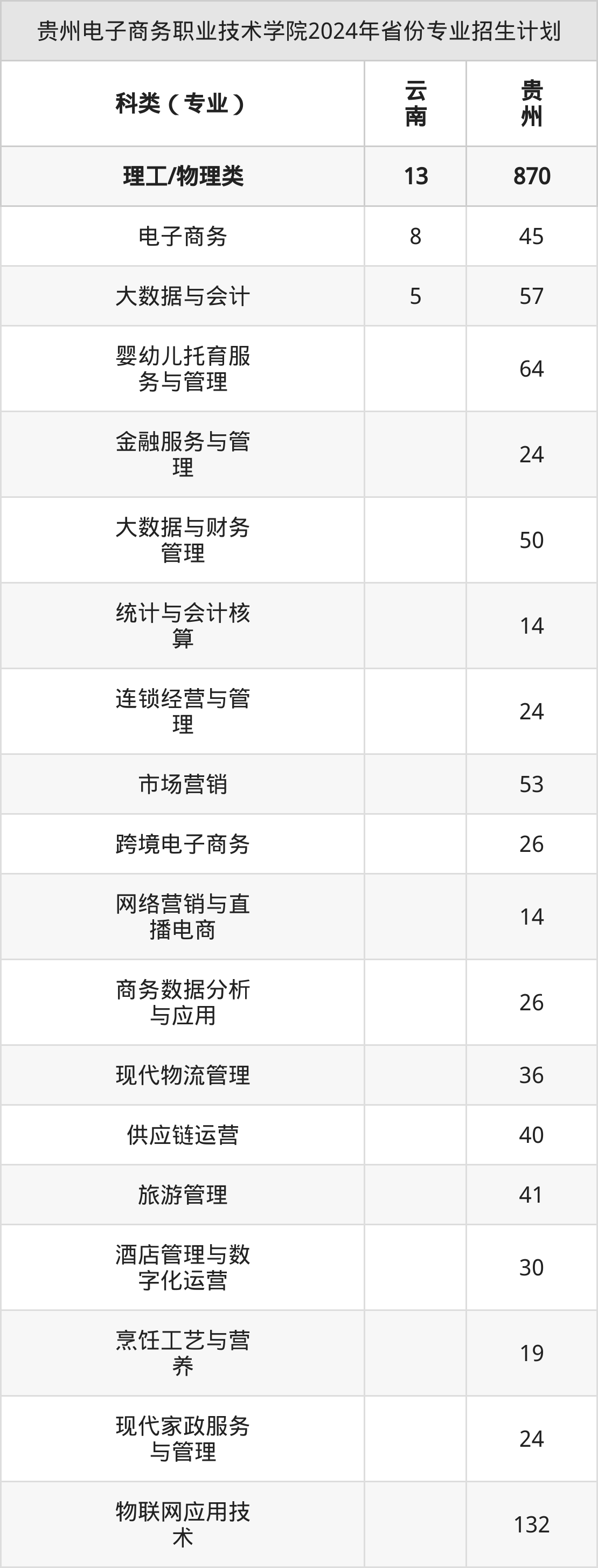2025年贵州电子商务职业技术学院专科招生计划待公布,下面附上2024年数据,暂供参考: