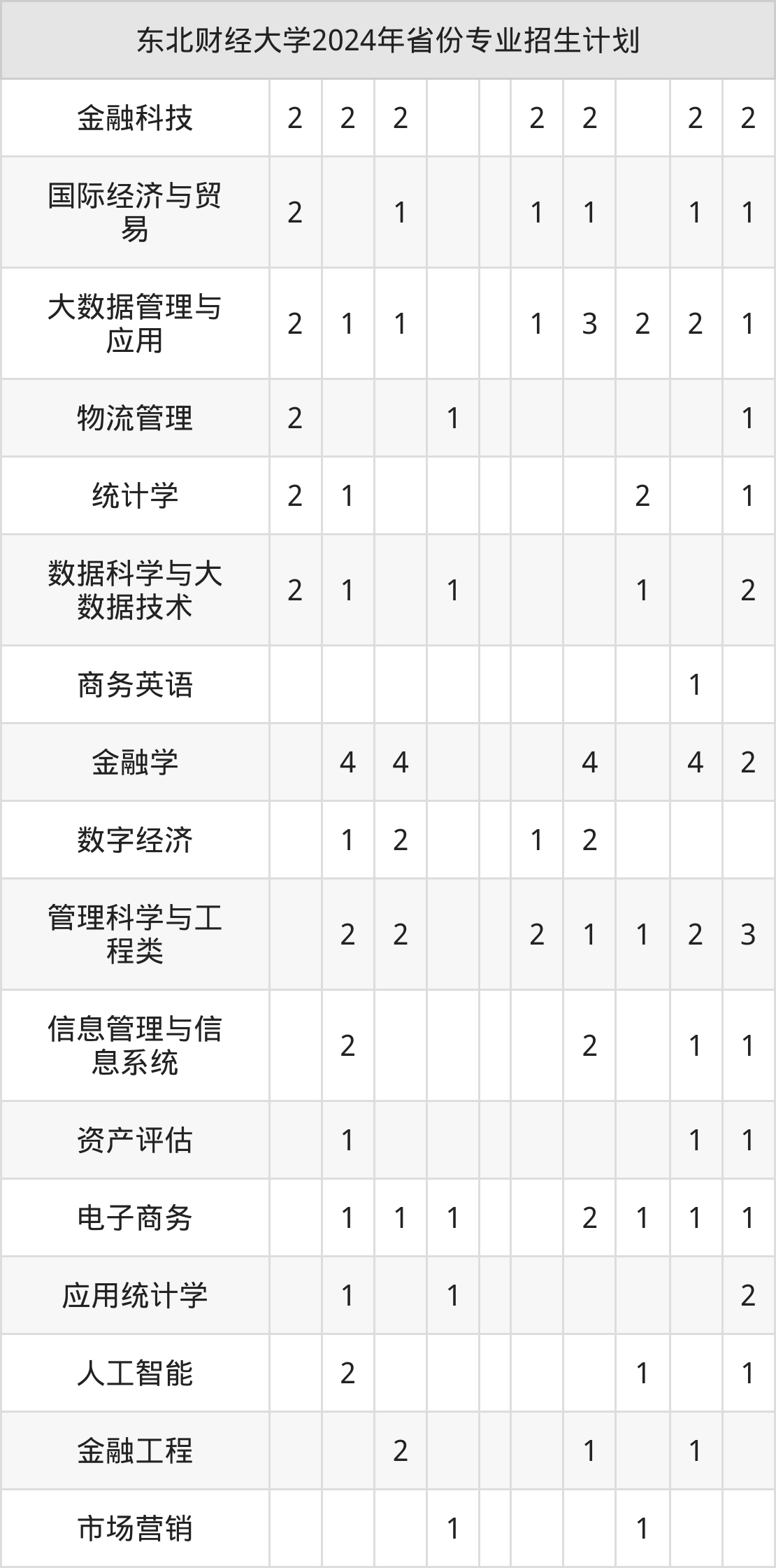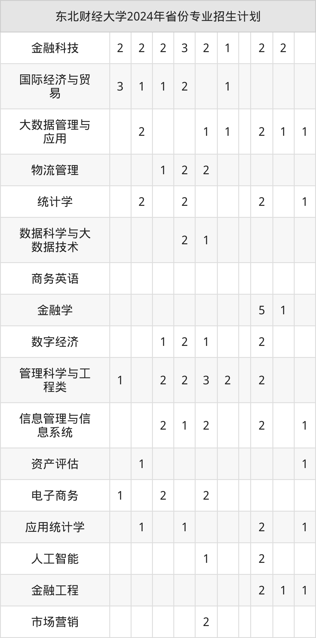 2025年东北财经大学本科招生计划待公布,下面附上2024年数据,暂供参考: