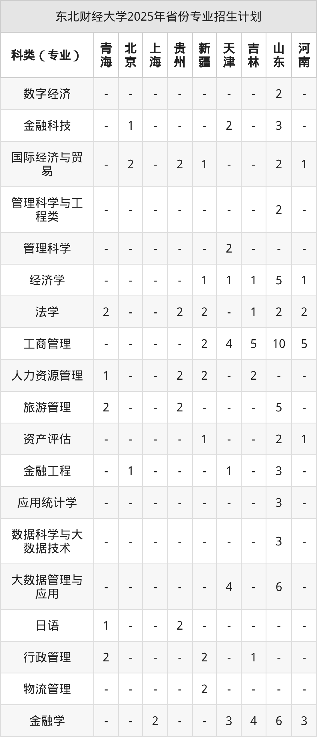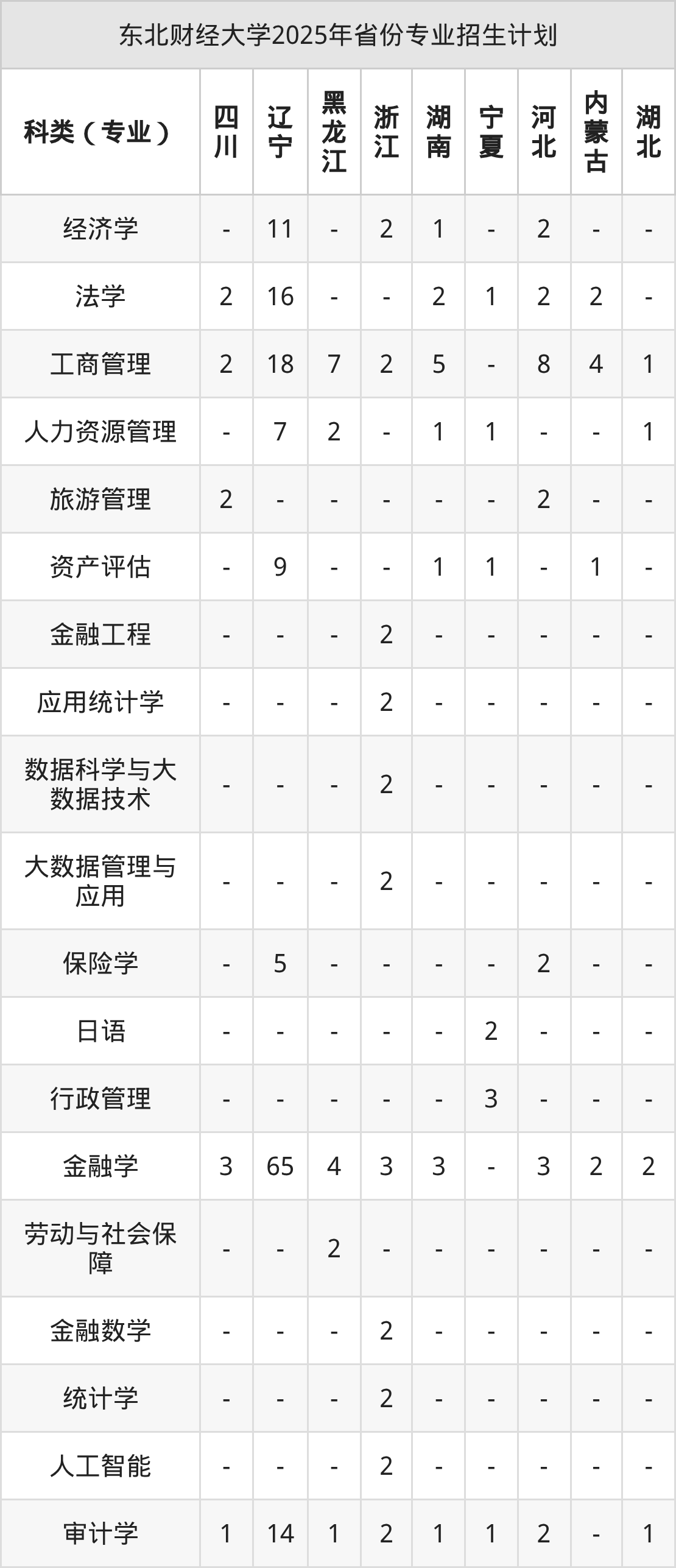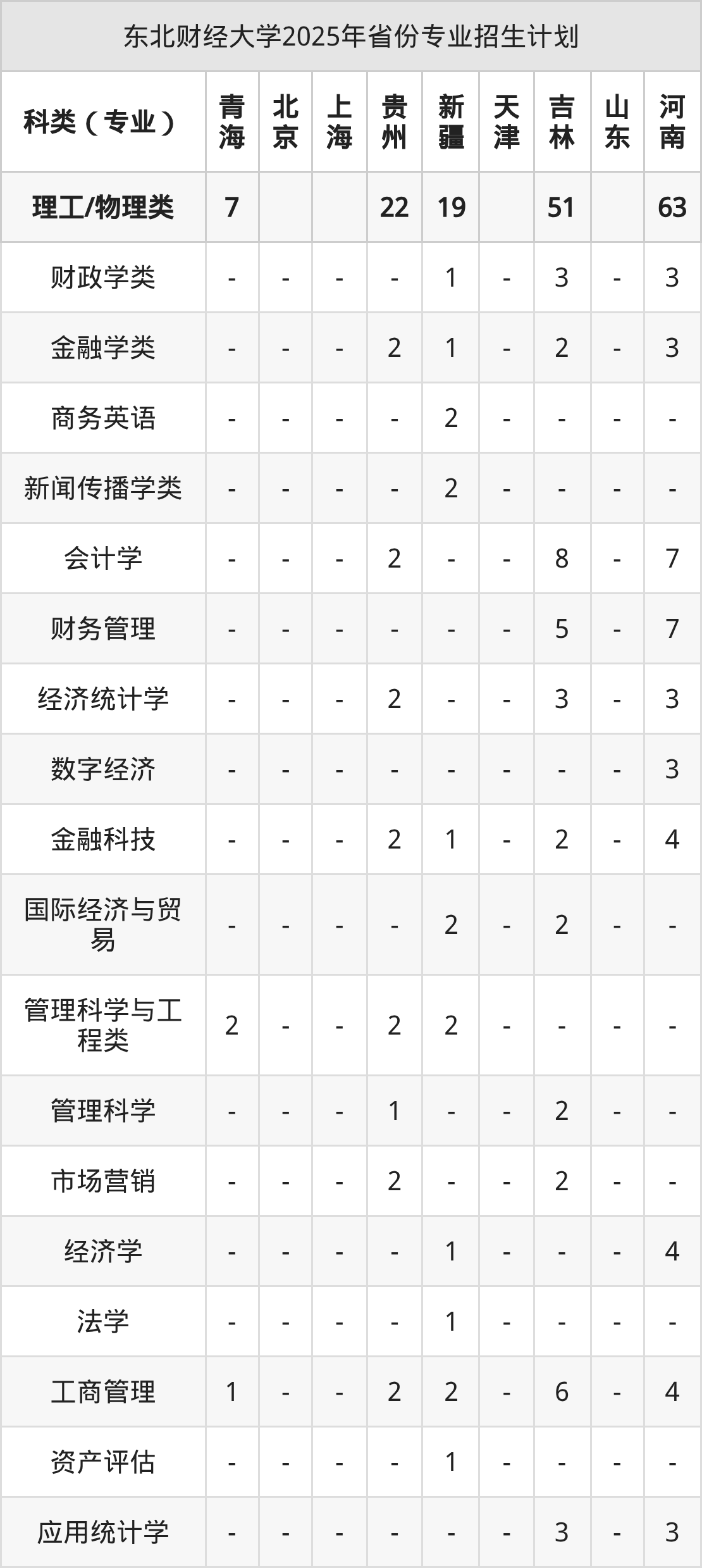 2026年东北财经大学本科招生计划待公布,下面附上2025年数据,暂供参考: