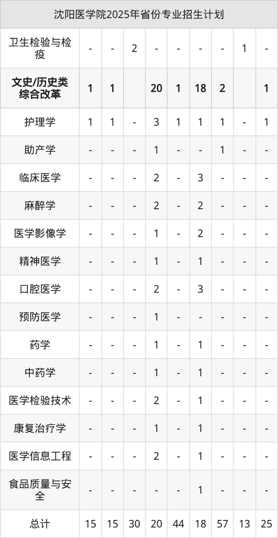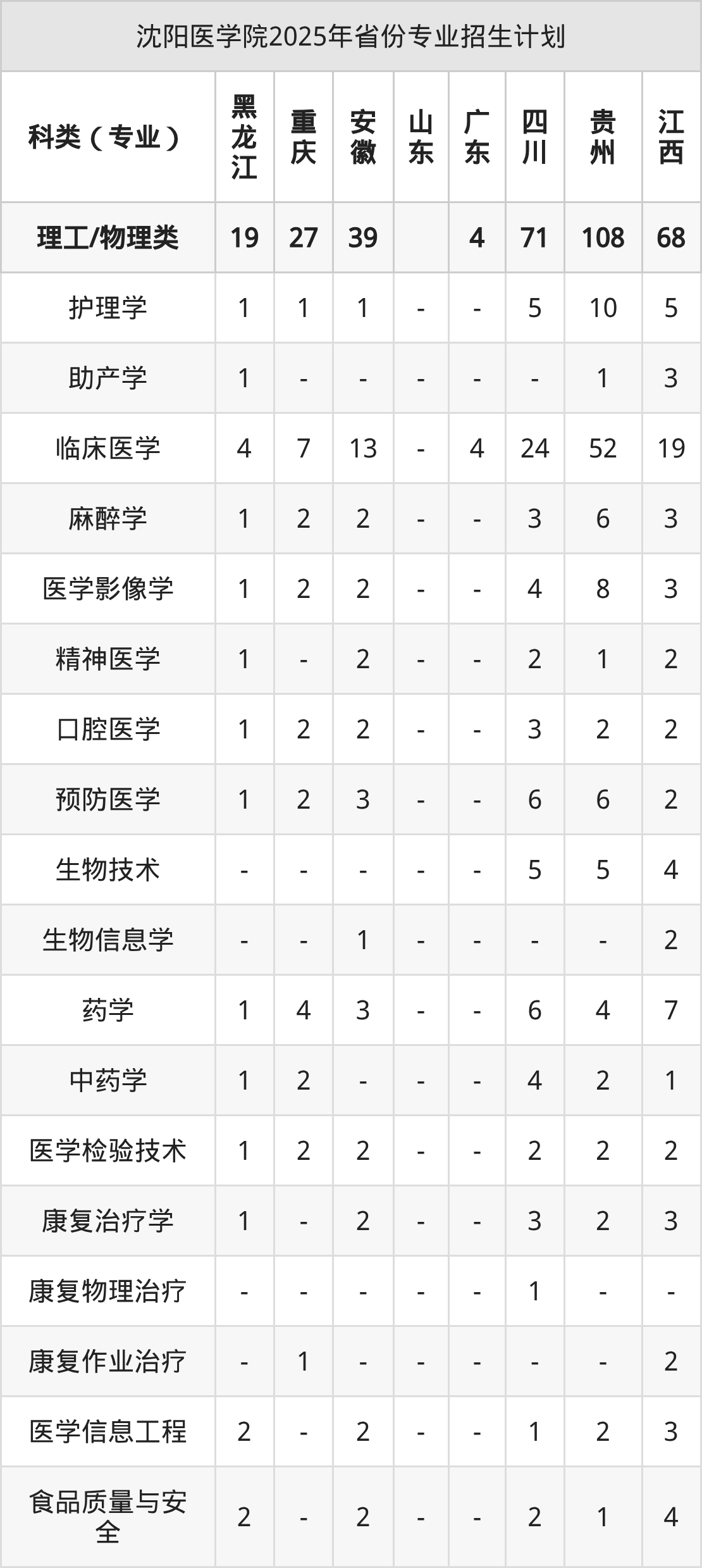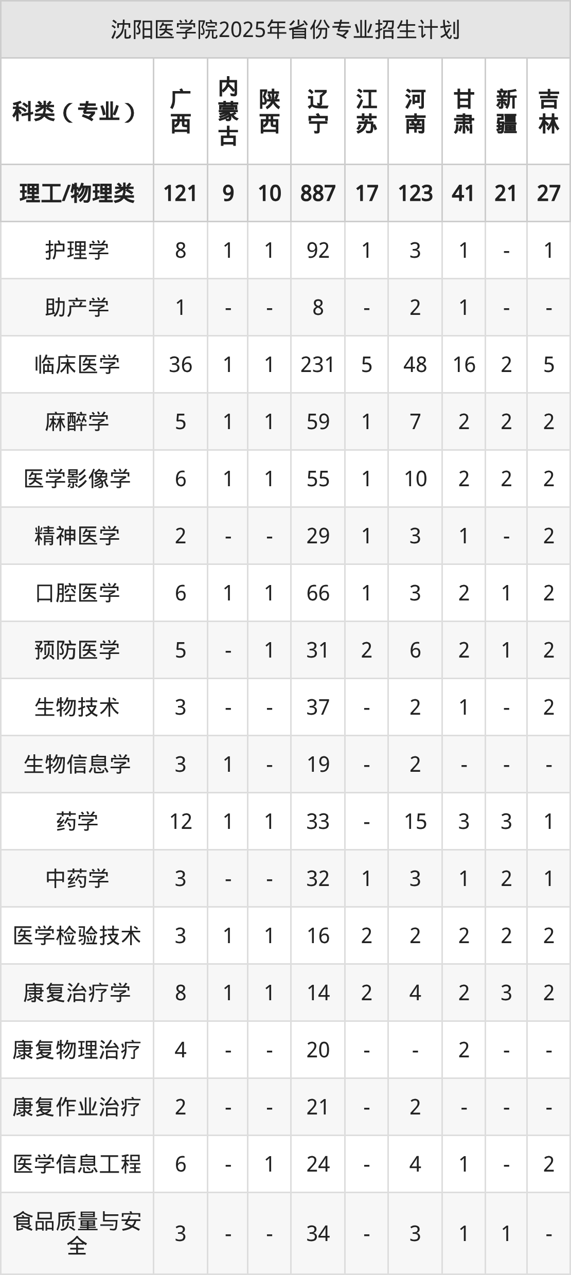 2026年沈阳医学院本科招生计划待公布,下面附上2025年数据,暂供参考: