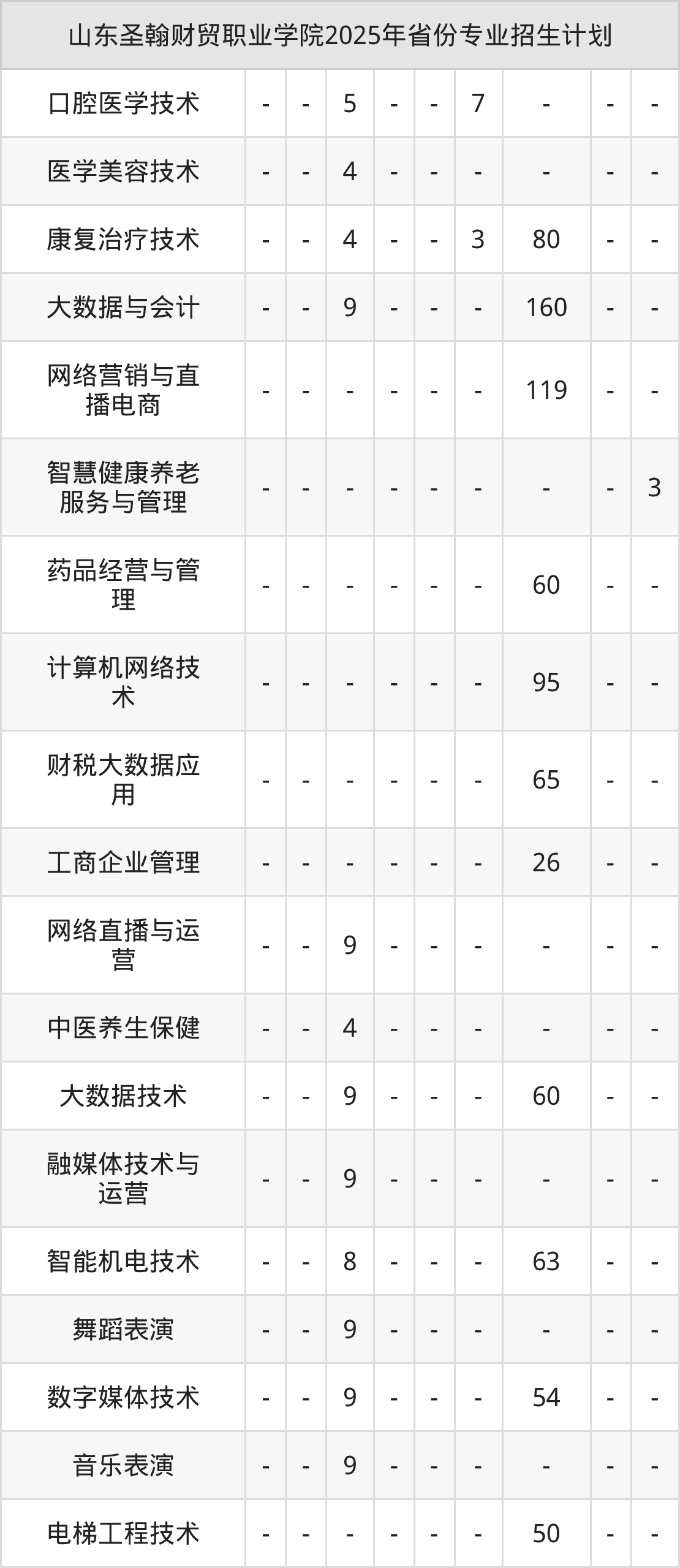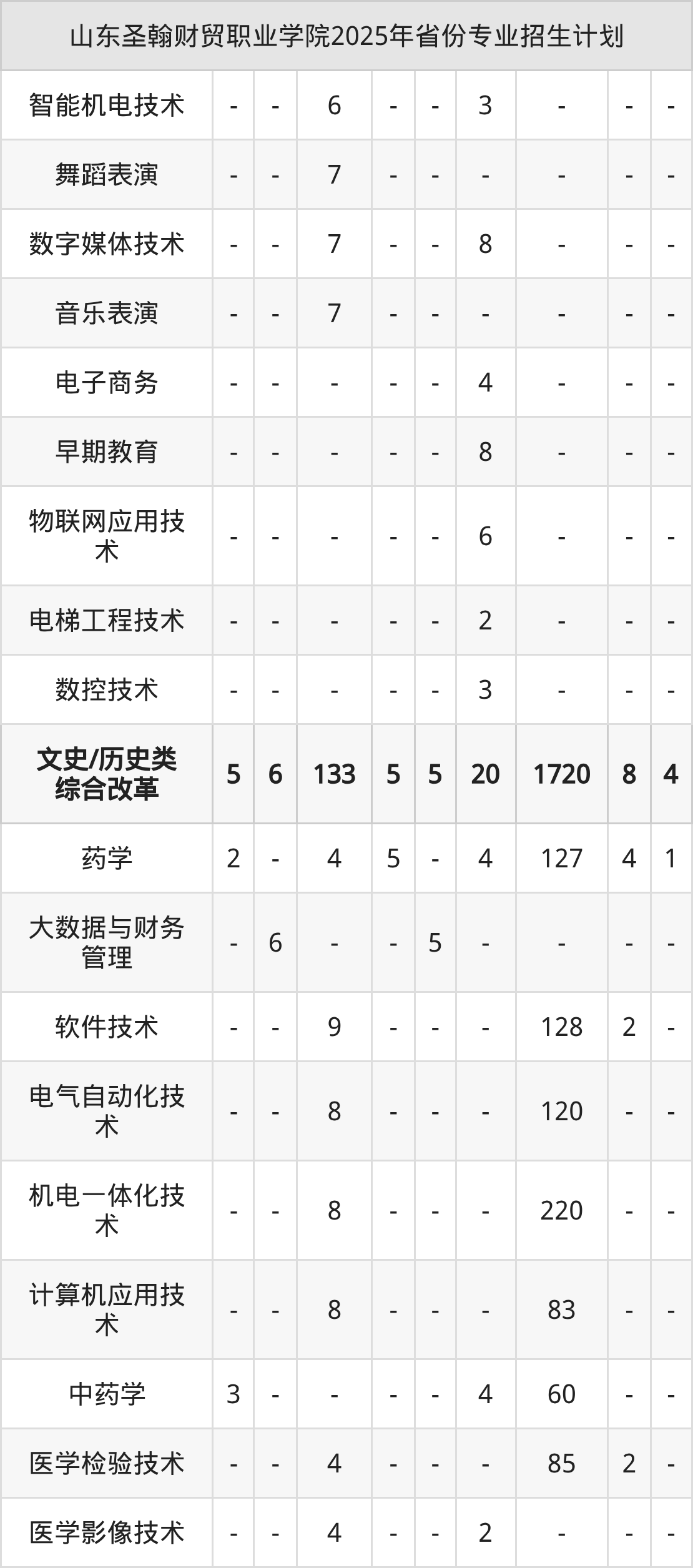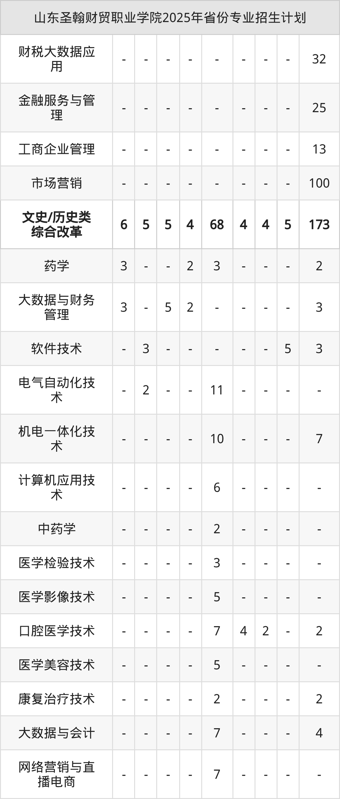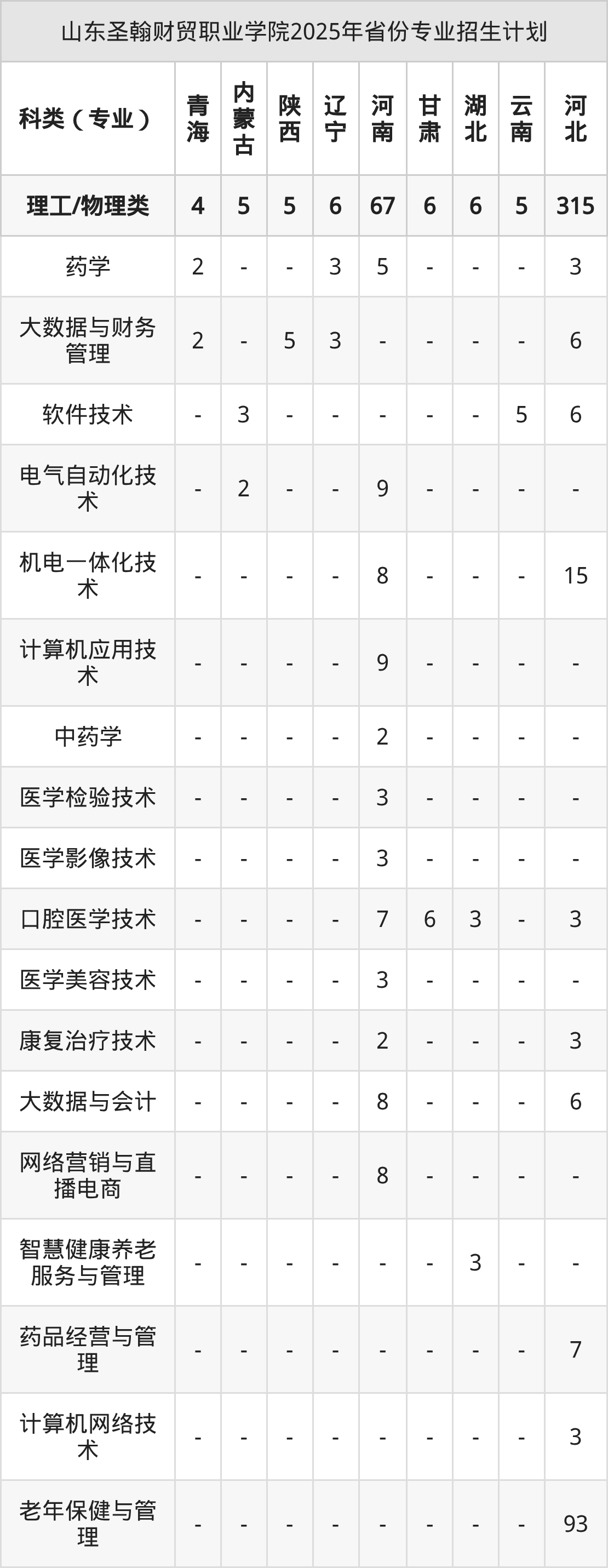2026年山东圣翰财贸职业学院专科招生计划待公布,下面附上2025年数据,暂供参考: