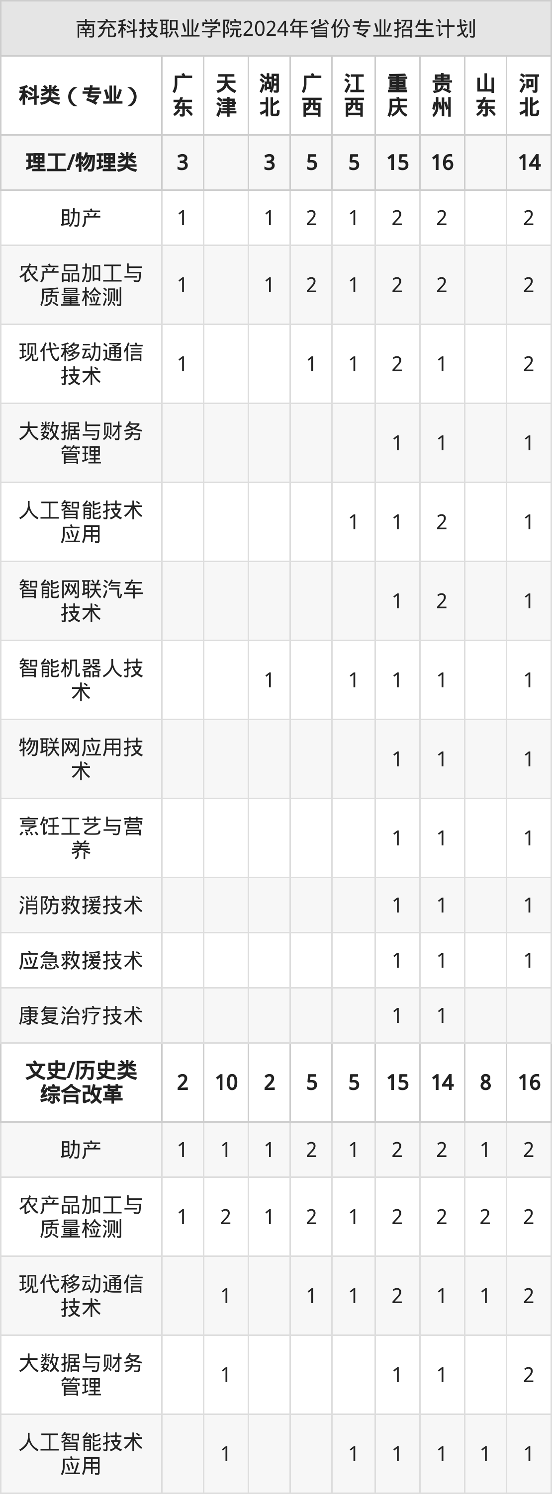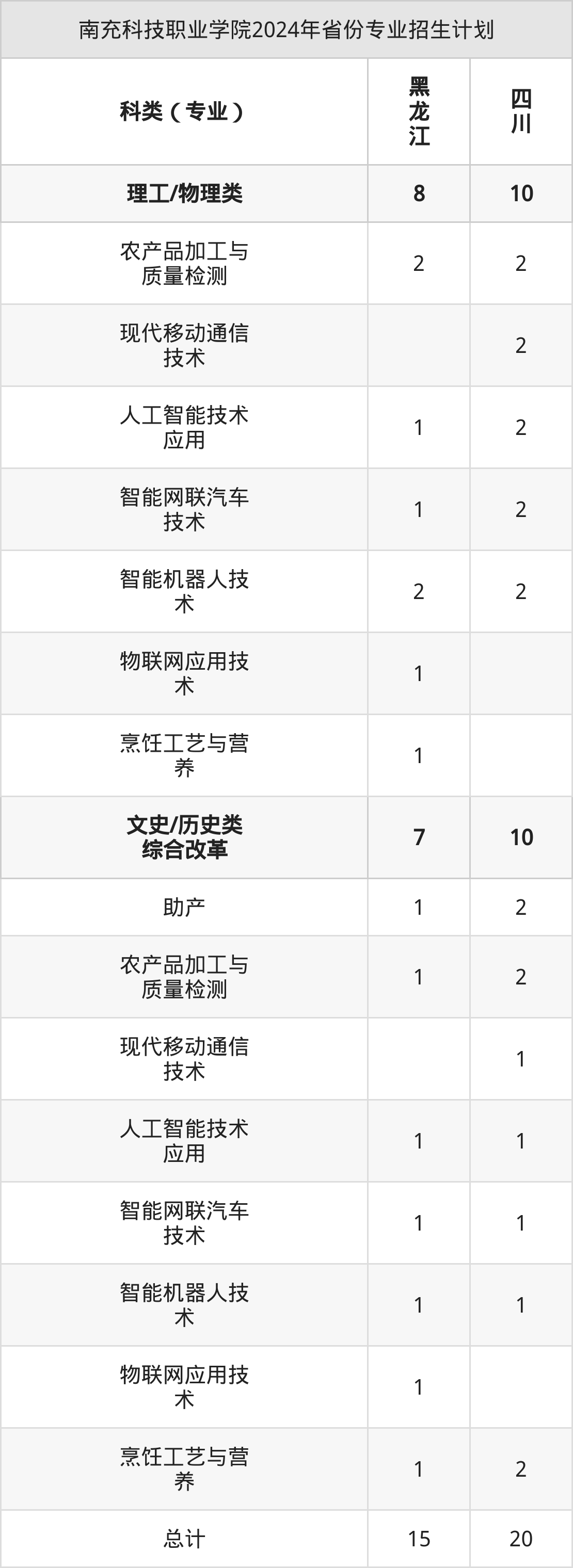 2025年南充科技职业学院专科招生计划待公布,下面附上2024年数据,暂供参考: