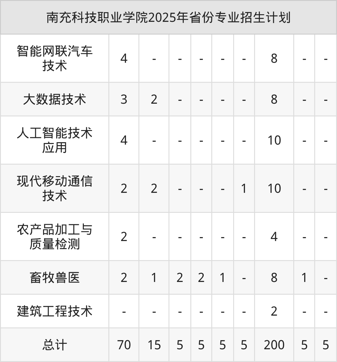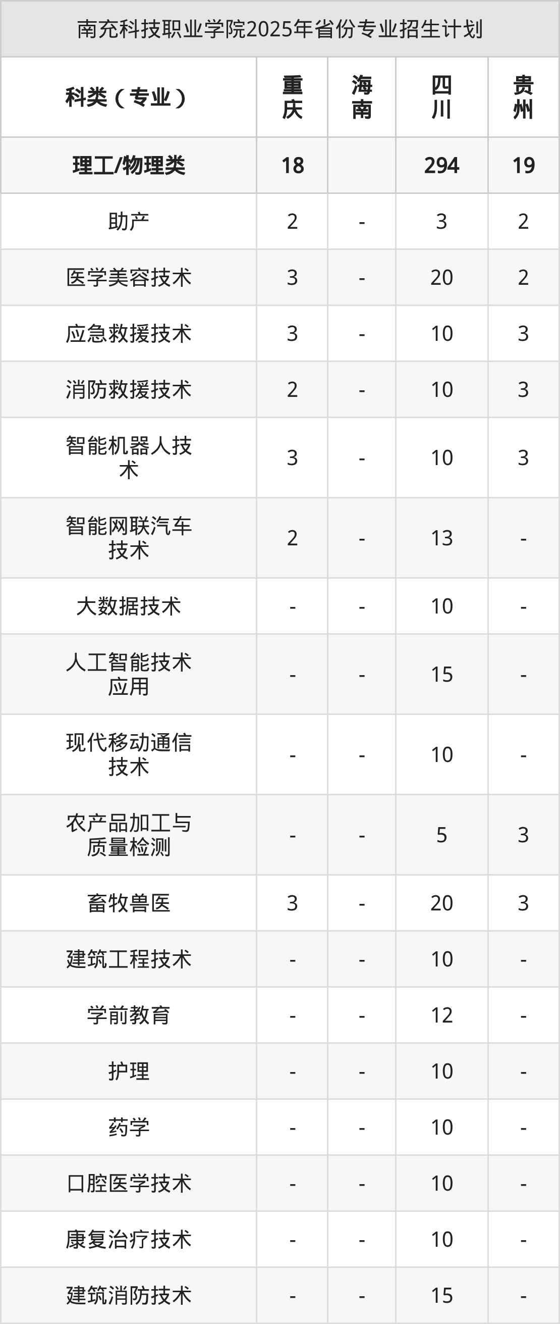 2026年南充科技职业学院专科招生计划待公布,下面附上2025年数据,暂供参考: