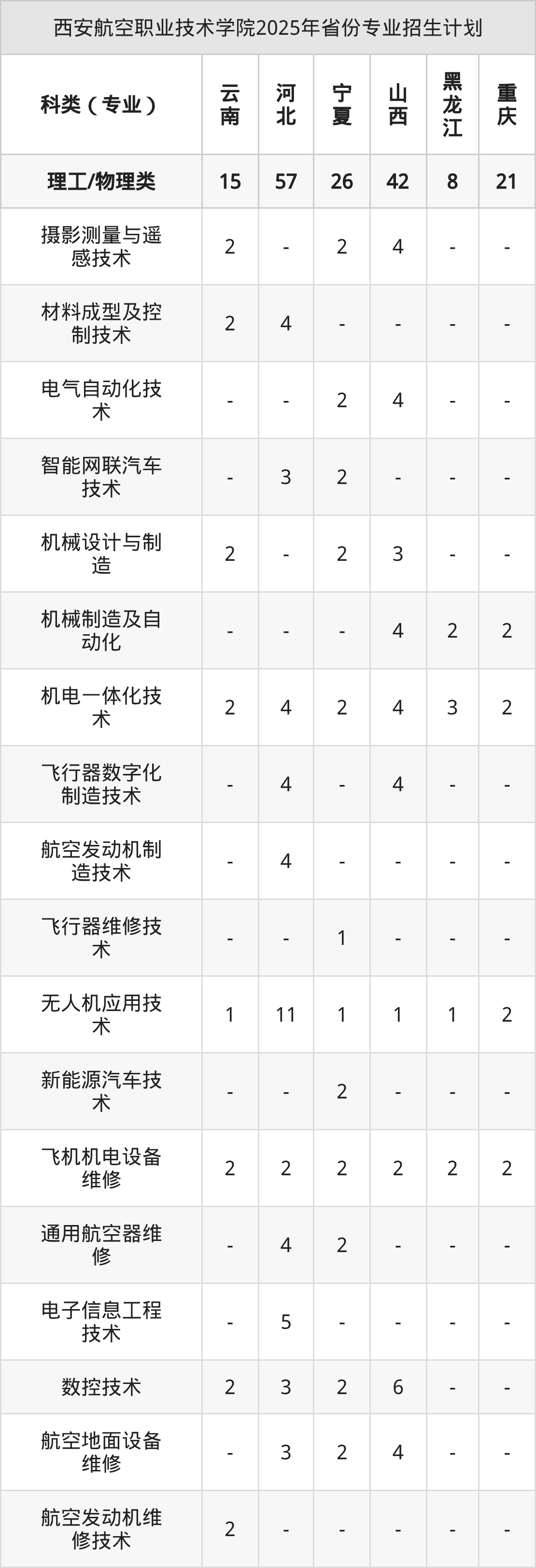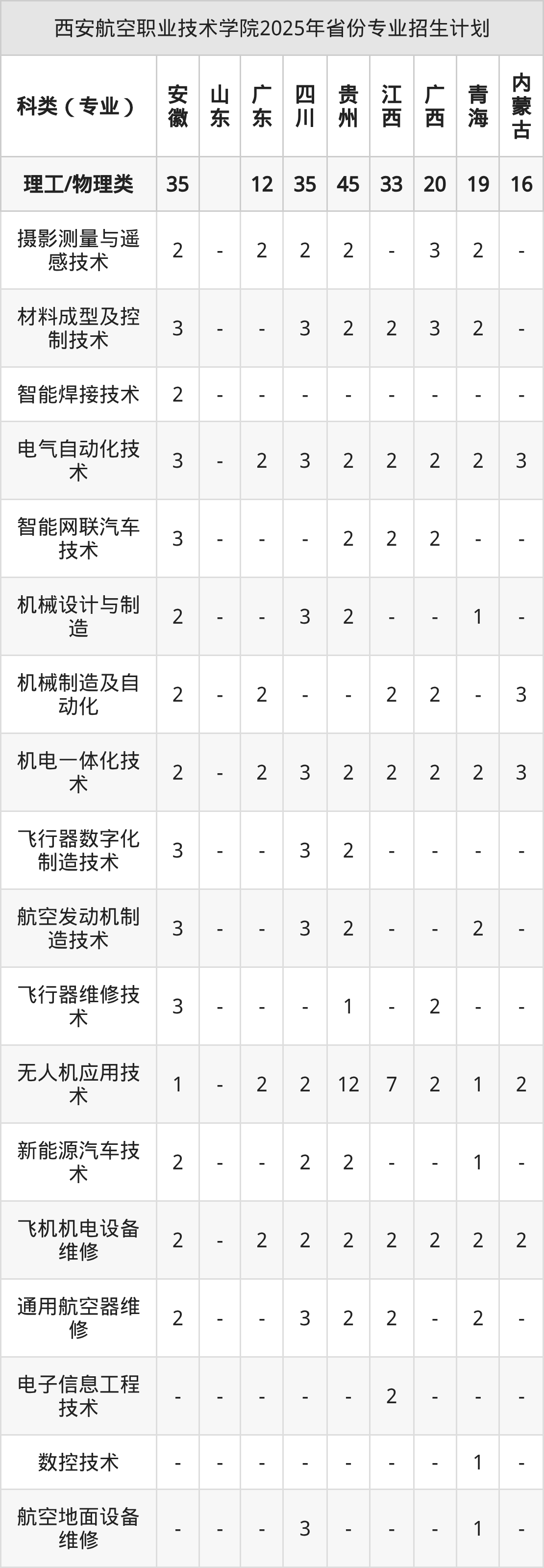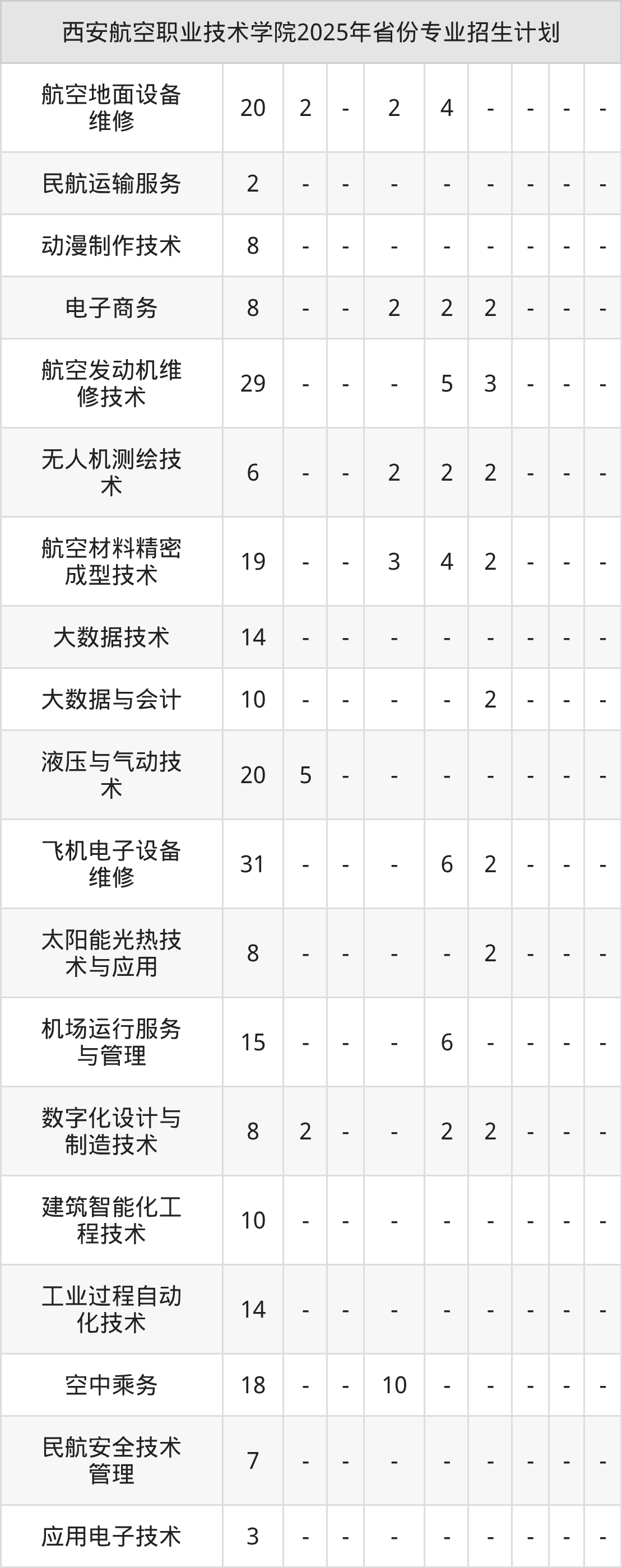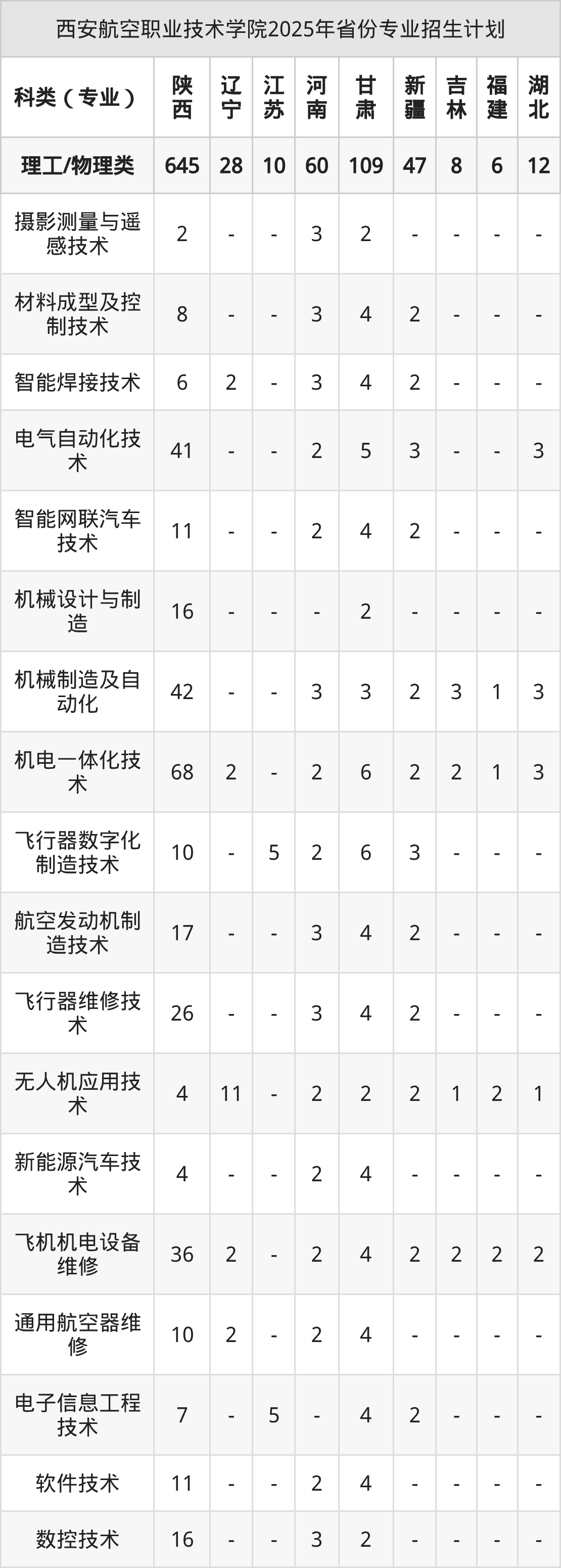 2026年西安航空职业技术学院专科招生计划待公布,下面附上2025年数据,暂供参考: