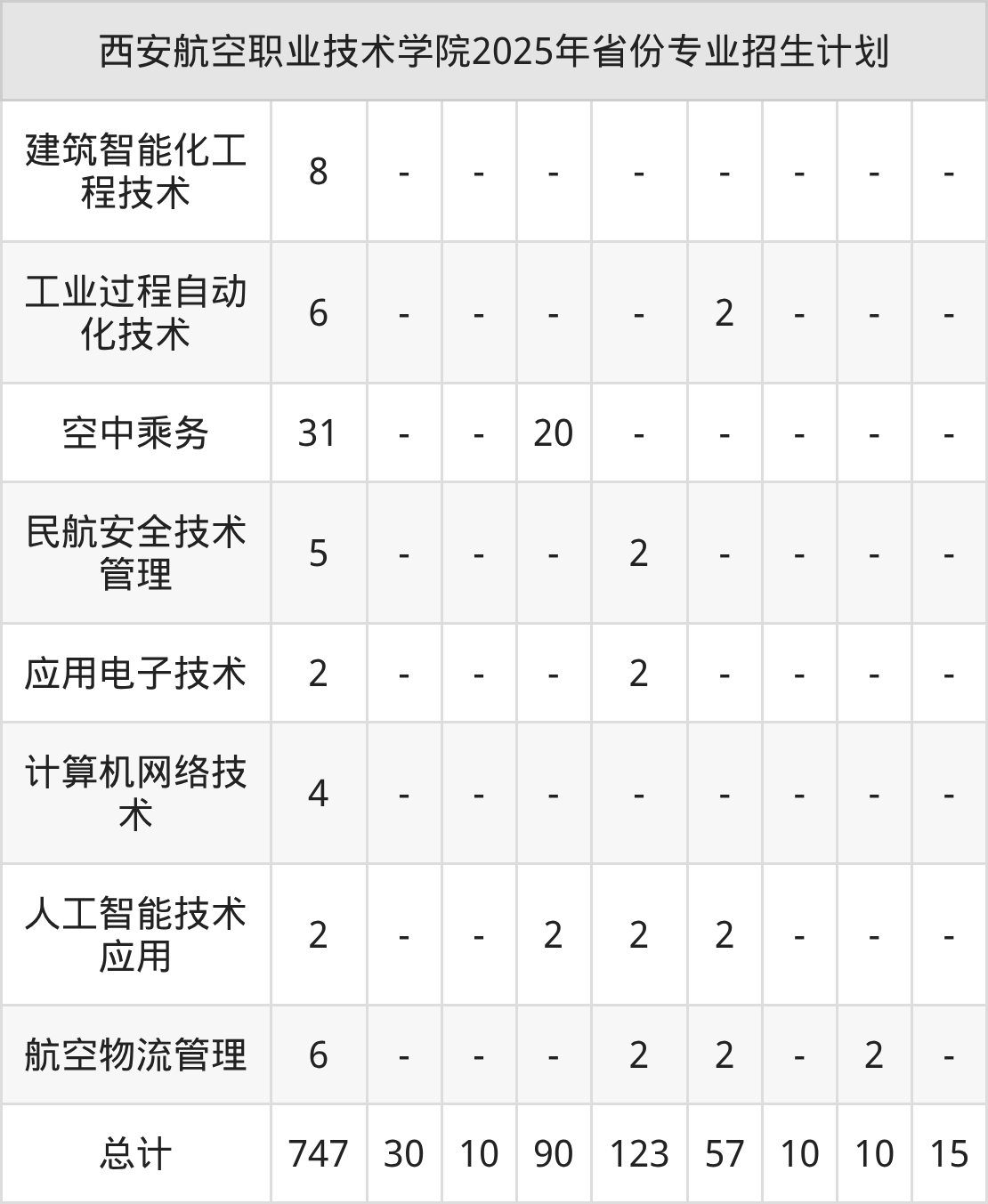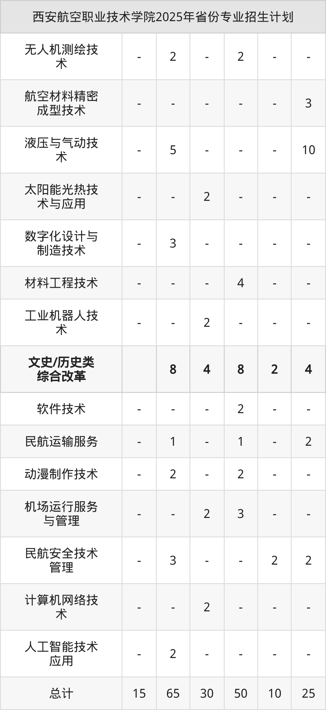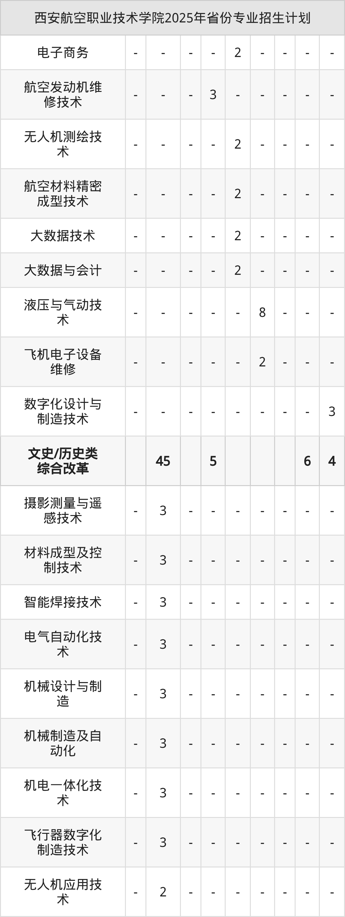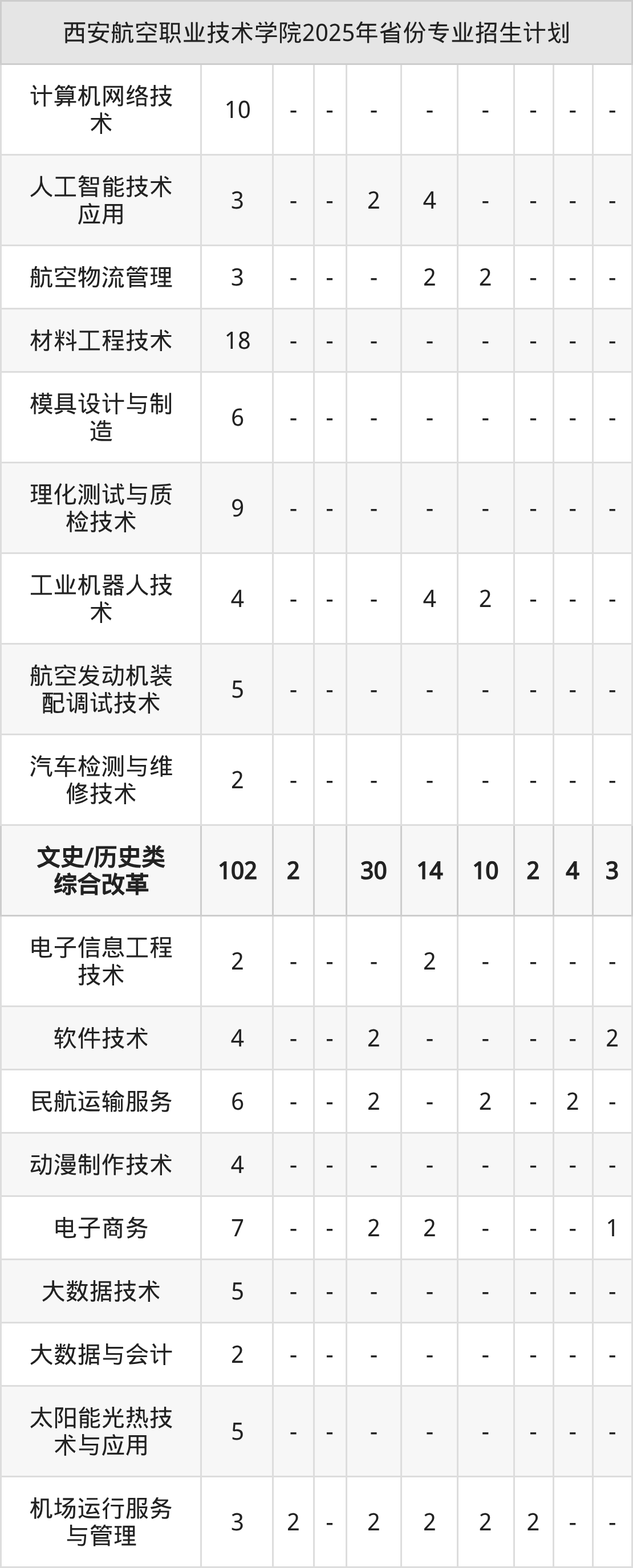 2026年西安航空职业技术学院专科招生计划待公布,下面附上2025年数据,暂供参考: