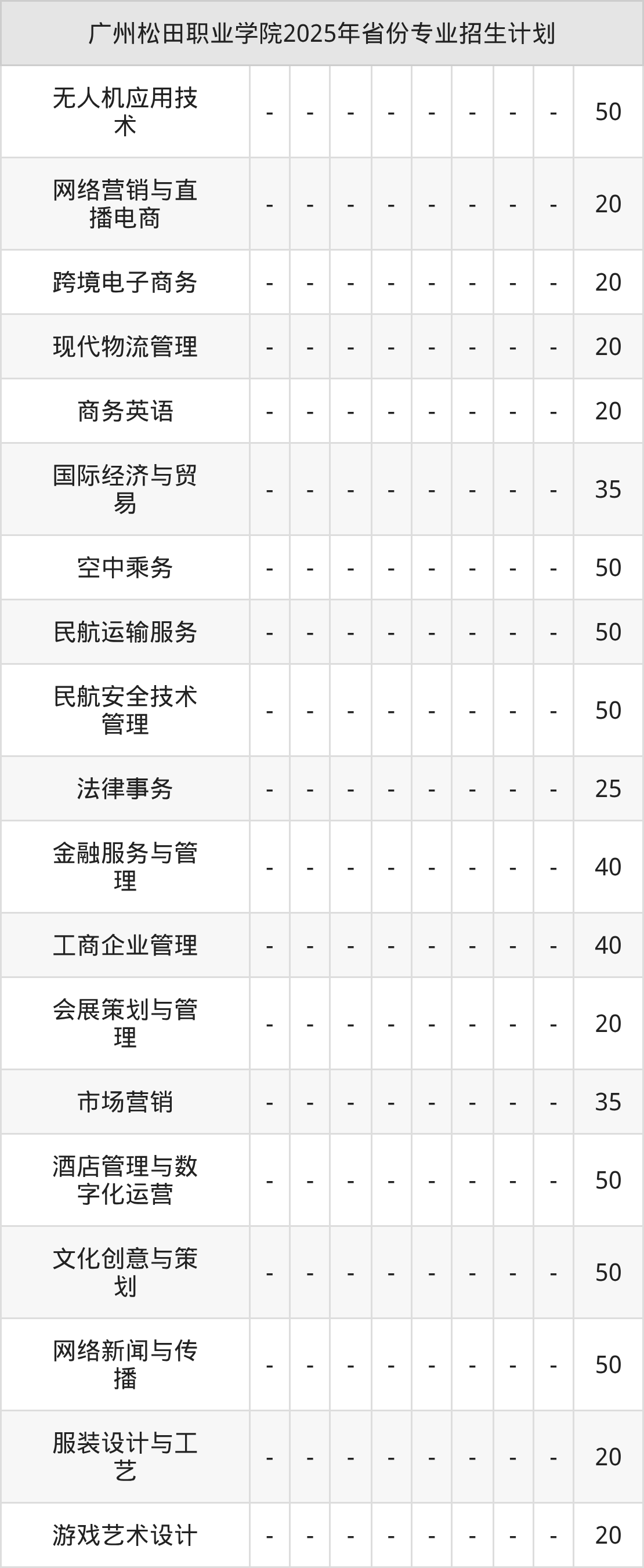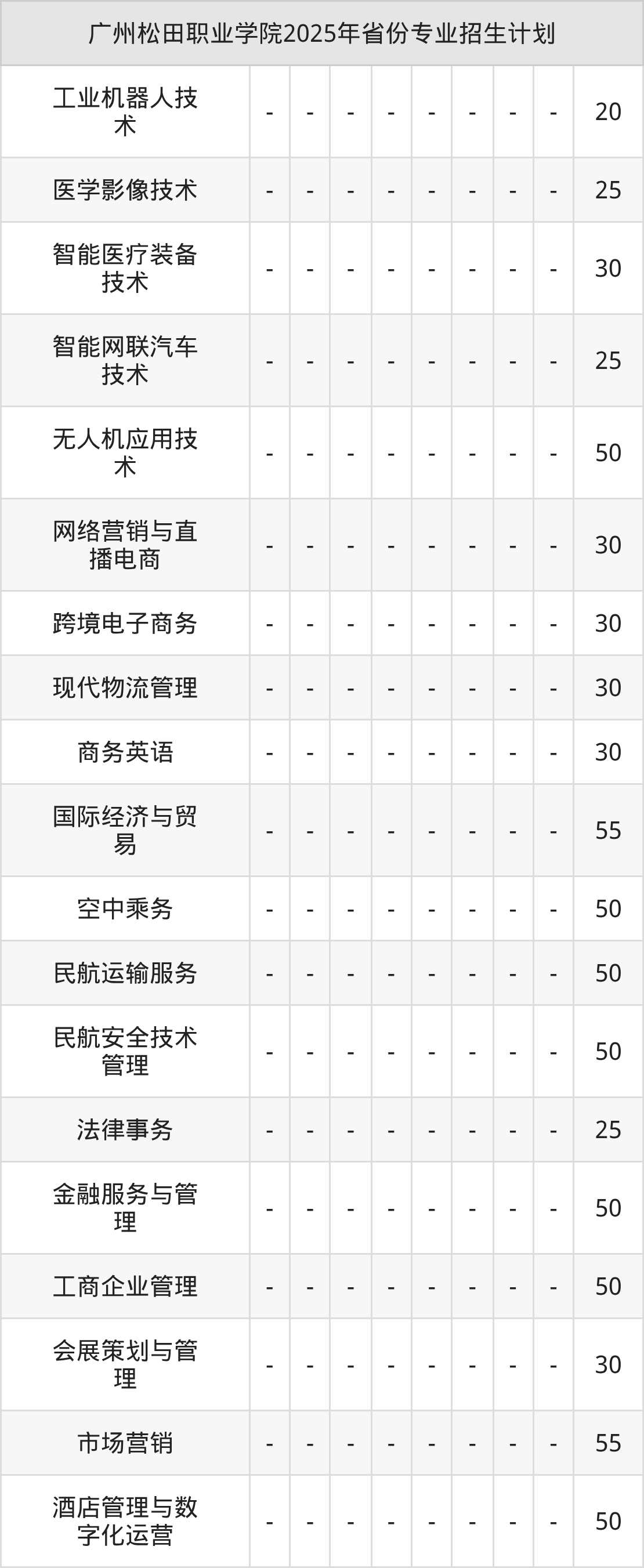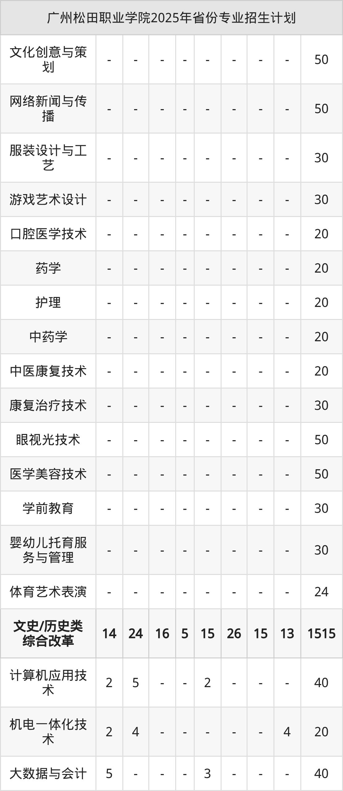 2026年广州松田职业学院专科招生计划待公布,下面附上2025年数据,暂供参考: