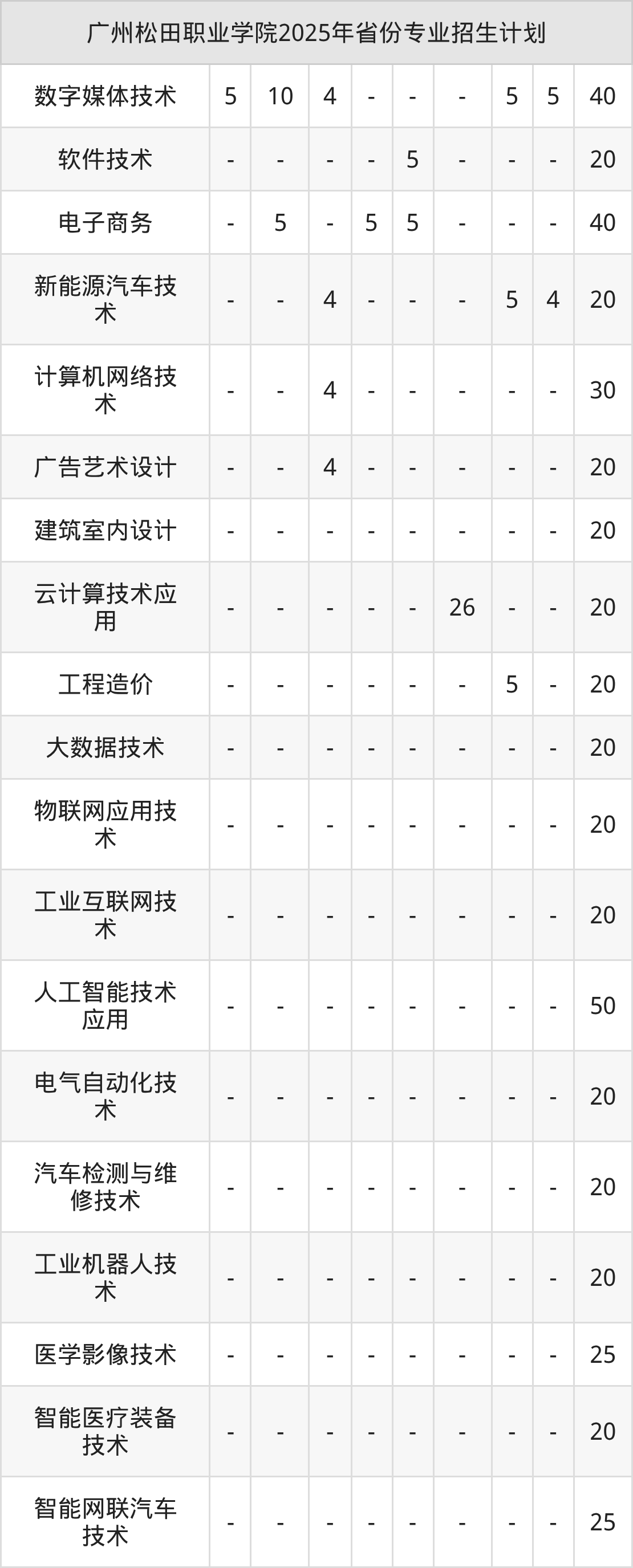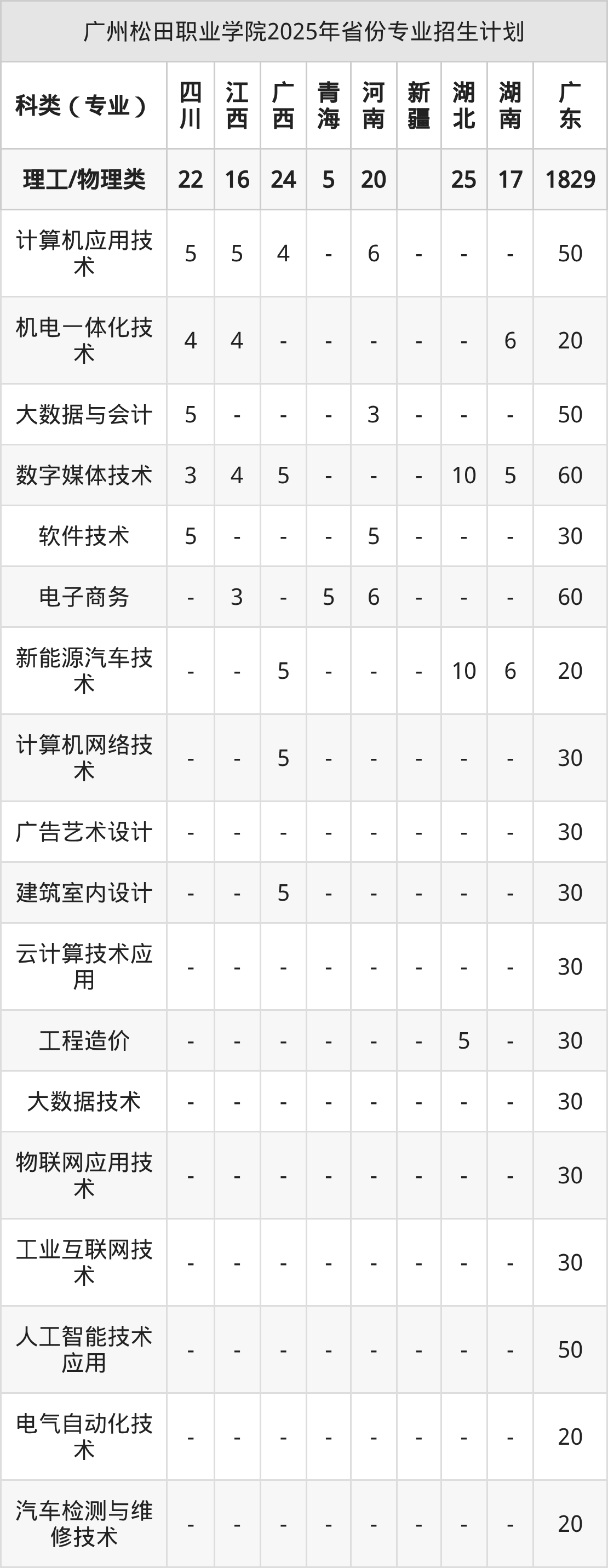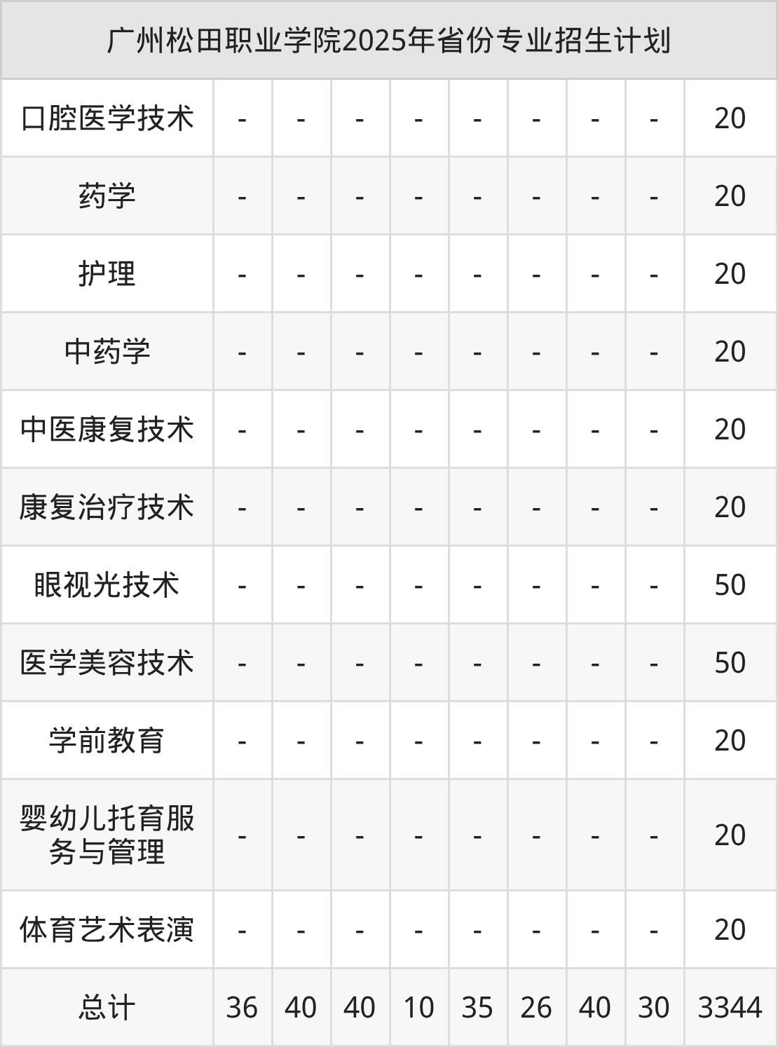 2026年广州松田职业学院专科招生计划待公布,下面附上2025年数据,暂供参考: