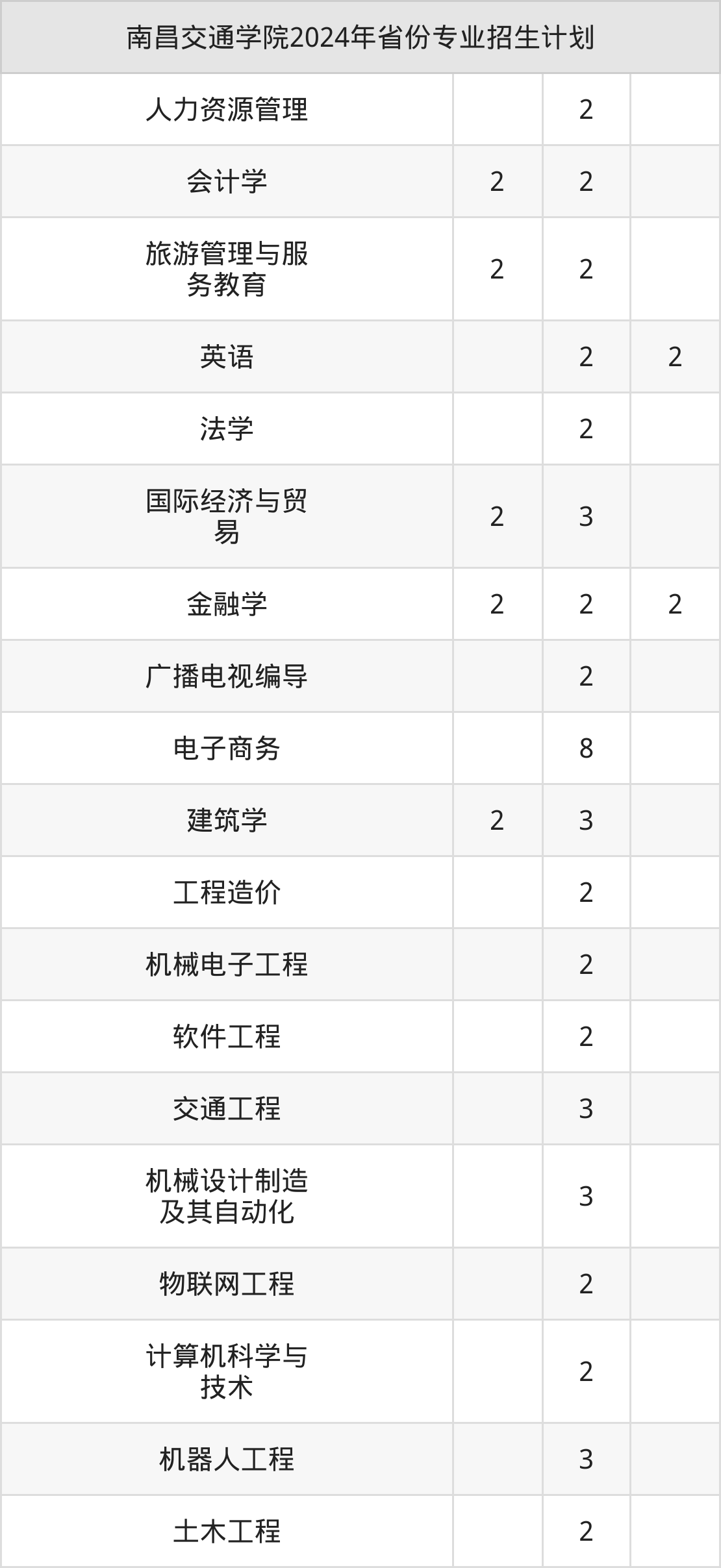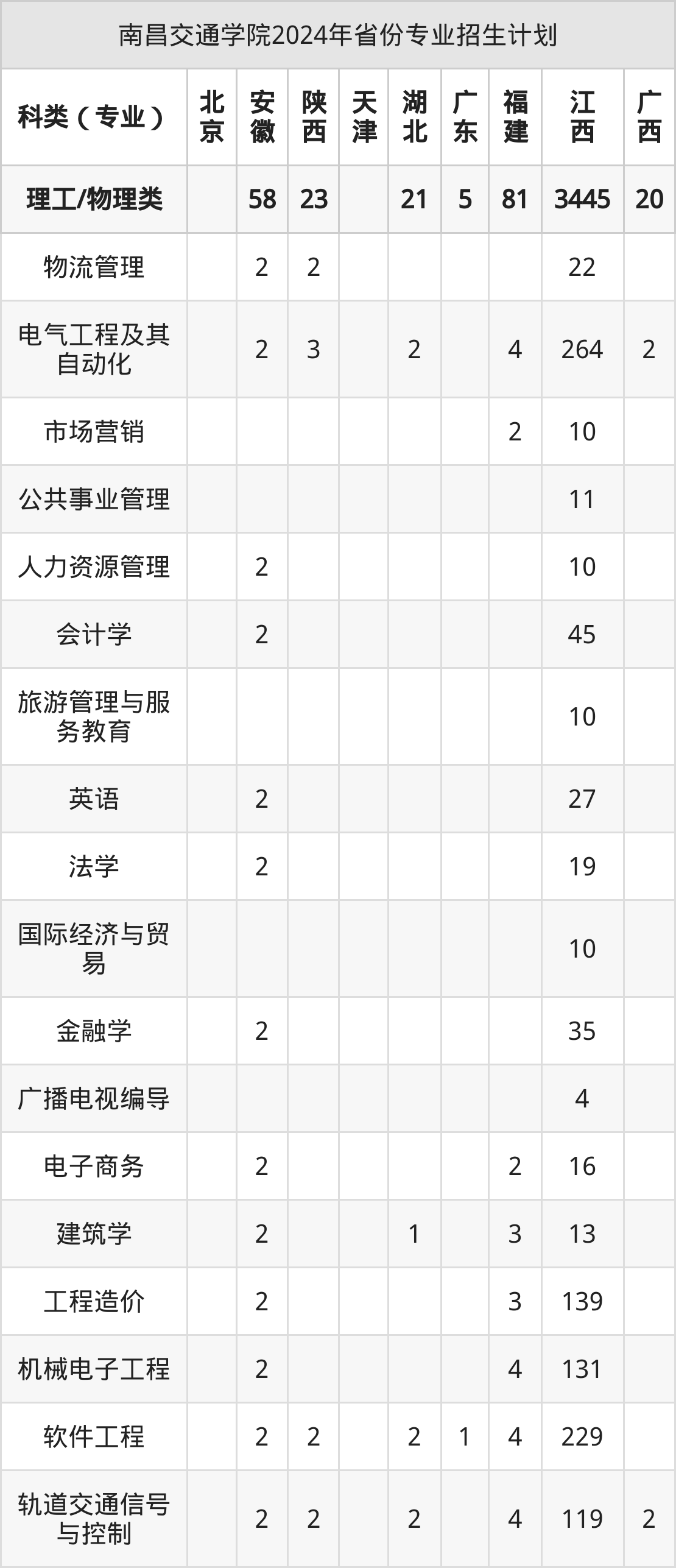 2025年南昌交通学院本科招生计划待公布,下面附上2024年数据,暂供参考: