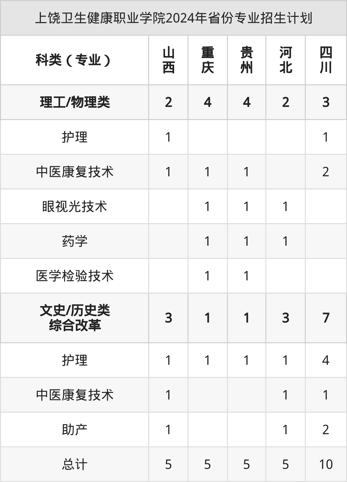2025年上饶卫生健康职业学院专科招生计划待公布,下面附上2024年数据,暂供参考: