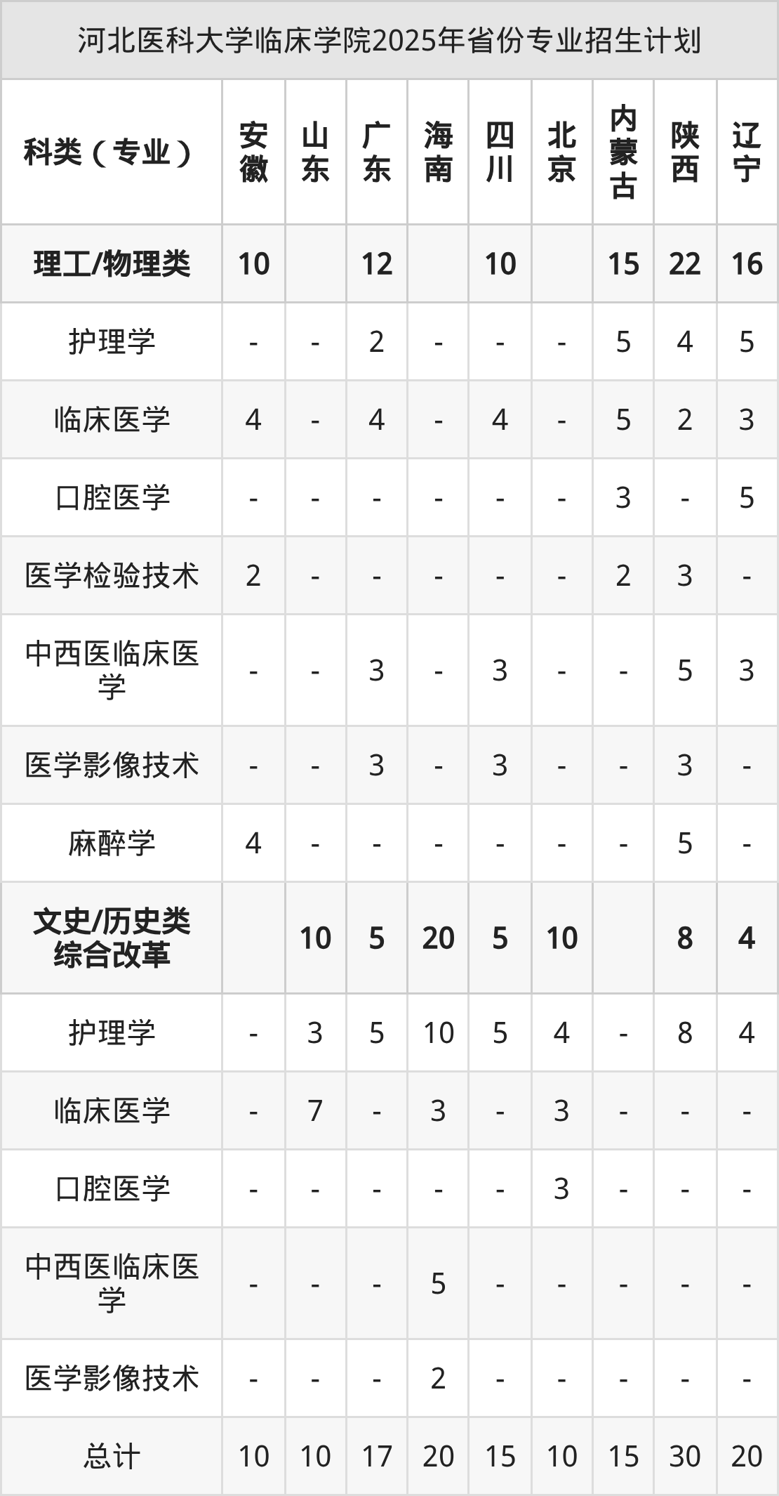 而各省份的招生计划数为重庆10人,北京10人,内蒙古15人,天津30人,浙江15人等。