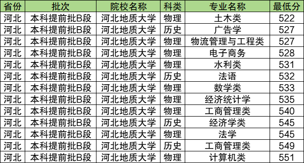7、河北地质大学:历史类最低527分;物理类最低522分